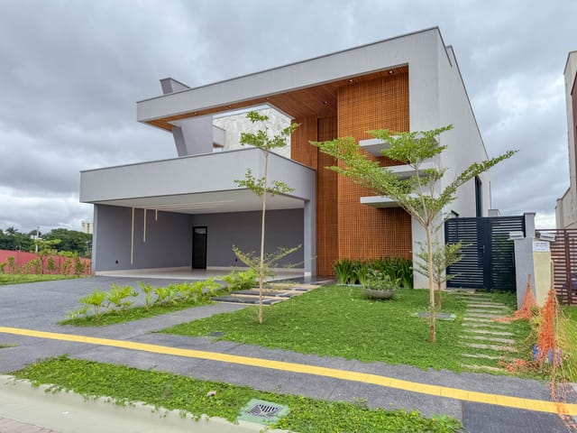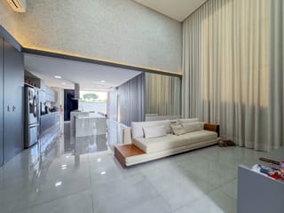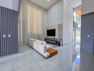 Sobrado no Jardins Valência com design funcional e confortável. 300 m² de construção. 389 m² de terreno. • Living com pé direito duplo. • Sala de TV reservada para maior privacidade. ...