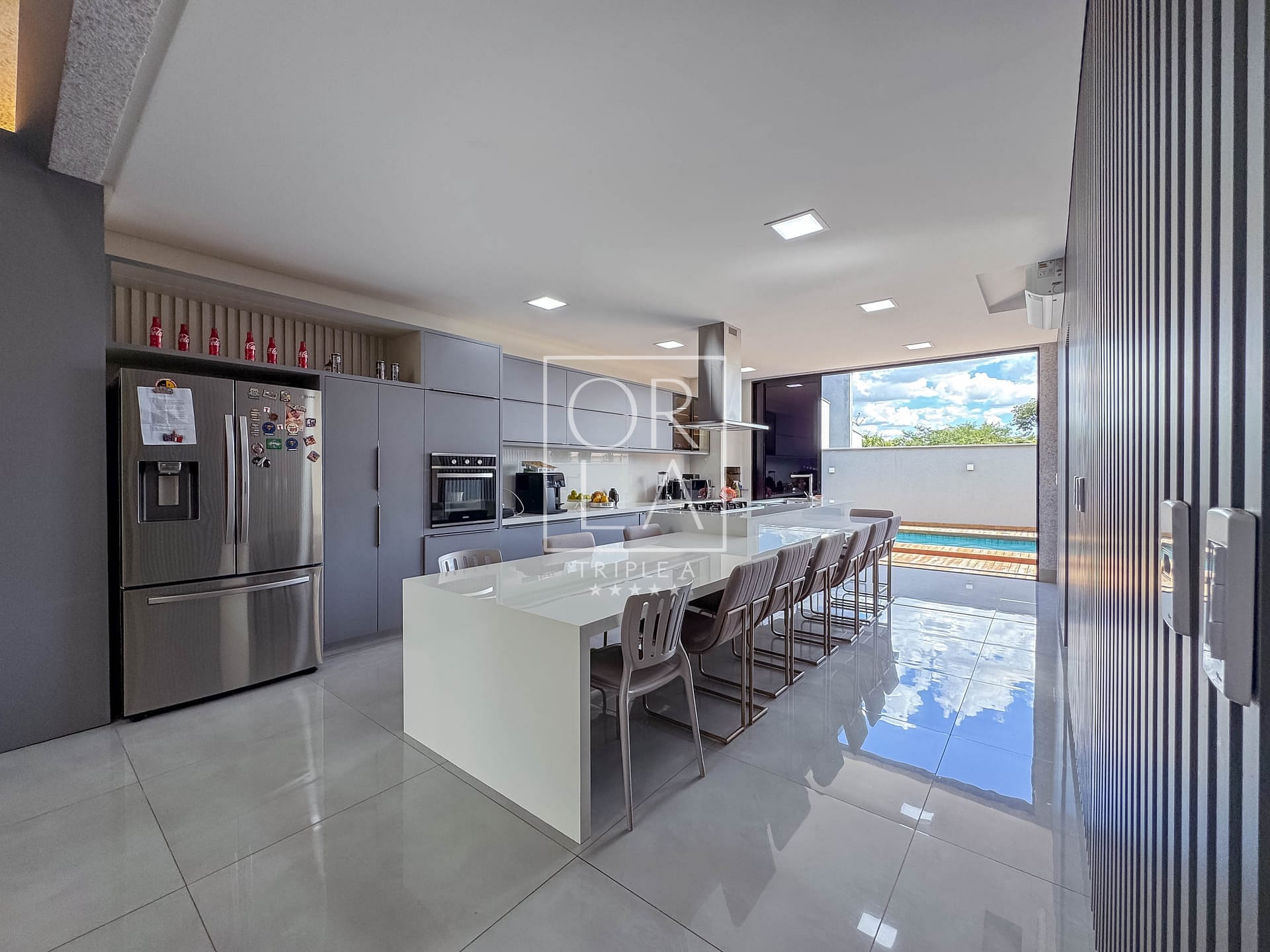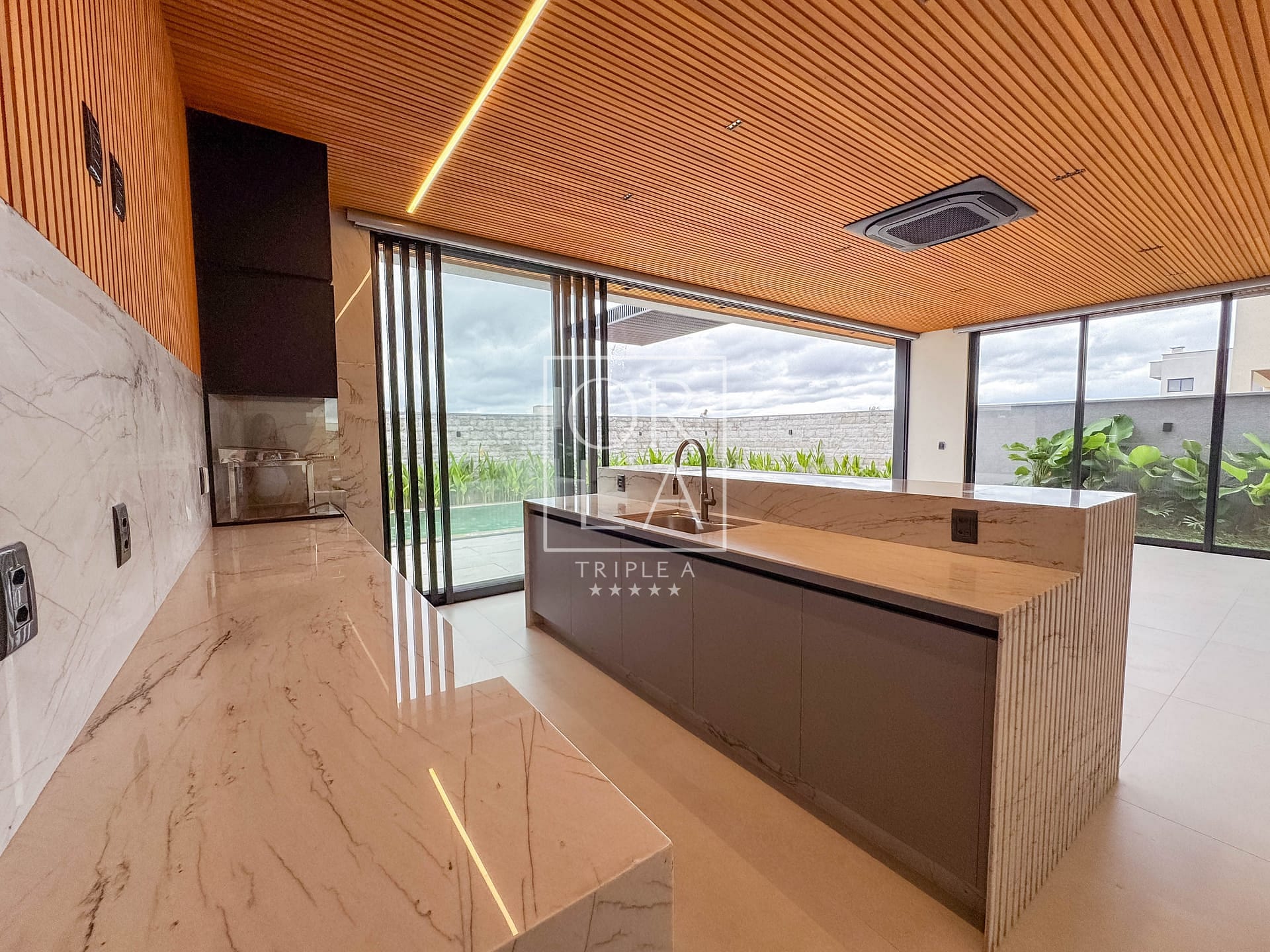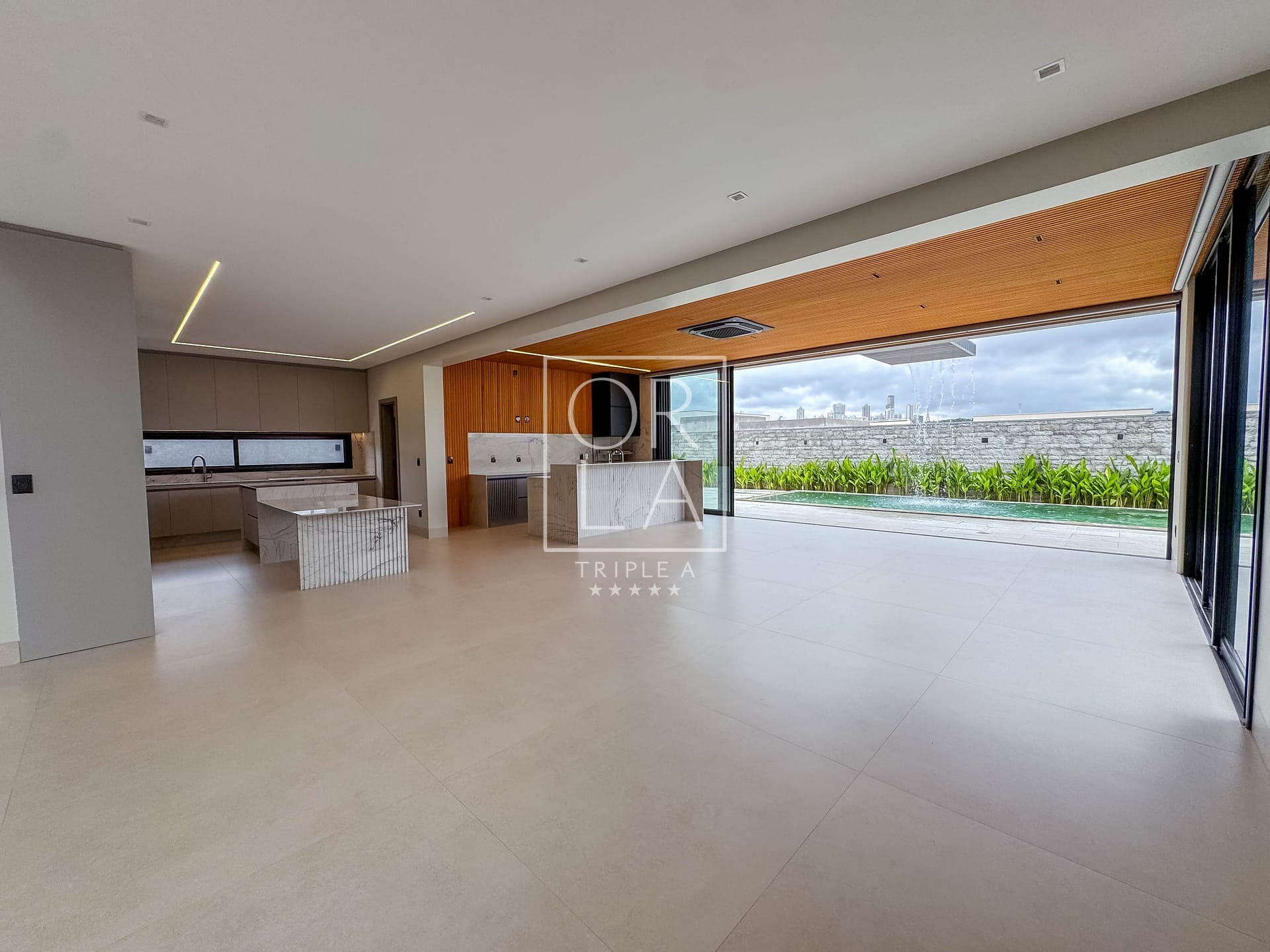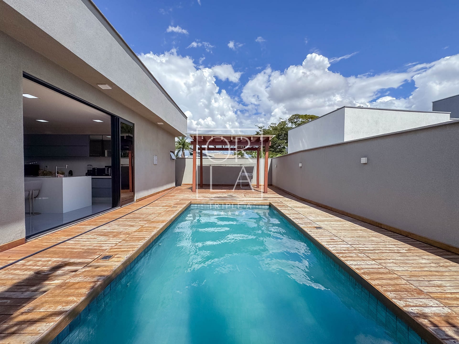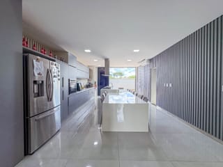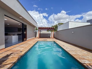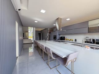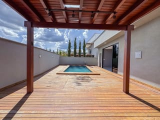 Casa térrea de 3 suítes plenas, rica em bancadas, cozinha com total integração a sala, área de serviços, lavabo e varanda gourmet com churrasqueira integrada a piscina com deck de madeira. A ca...
