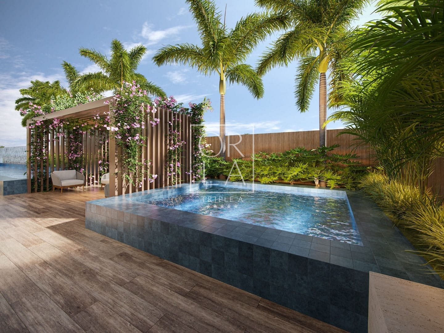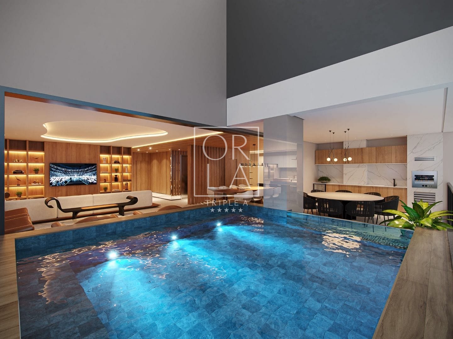 Varanda integrada e piscina privativa: Desfrute de momentos de relaxamento e lazer na sua própria piscina privativa, integrada à varanda do living.