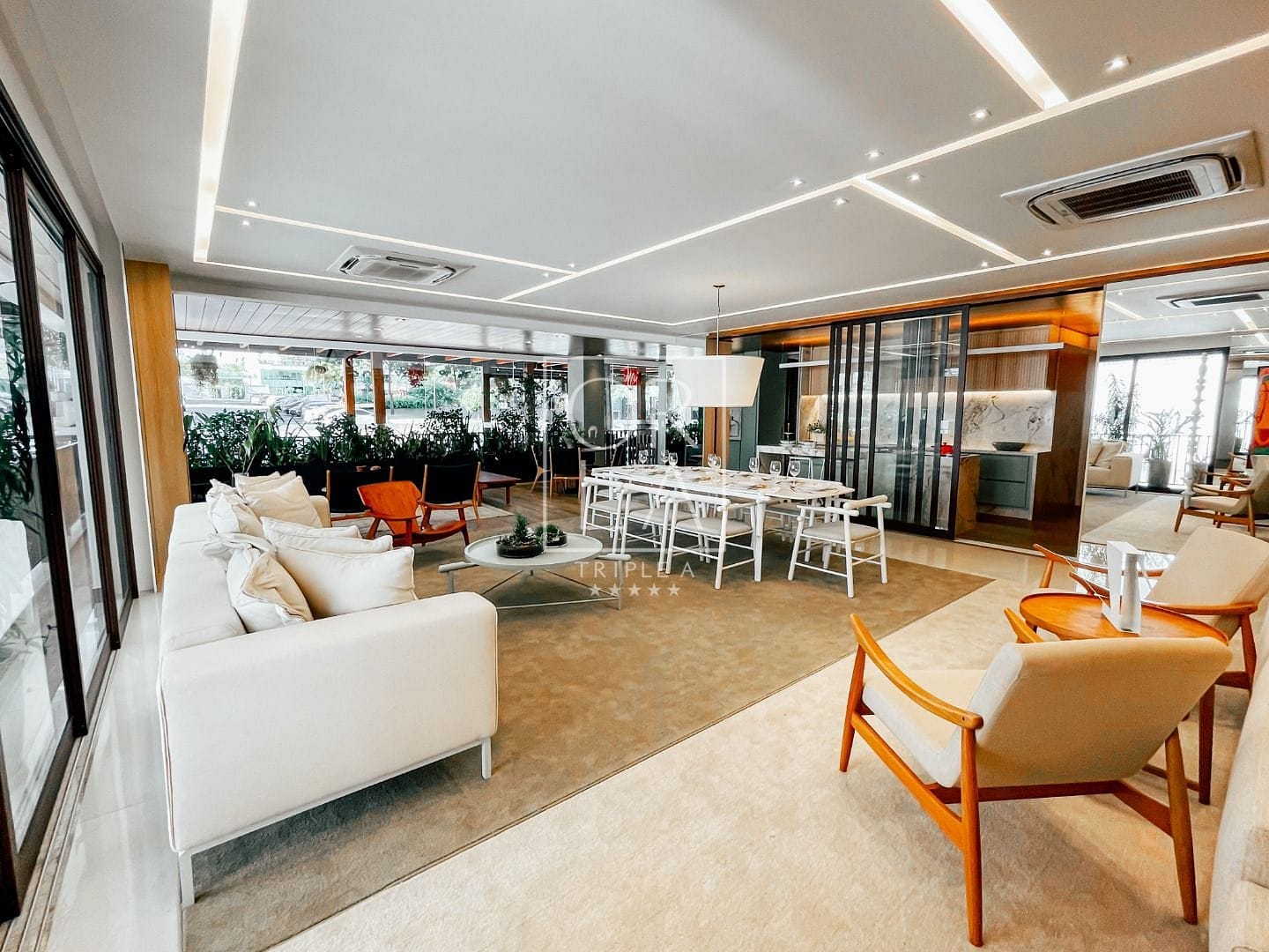 No apartamento, o conceito Open Living está presente, as salas se integram, criando um ambiente com bastante amplitude e visualmente agradável.