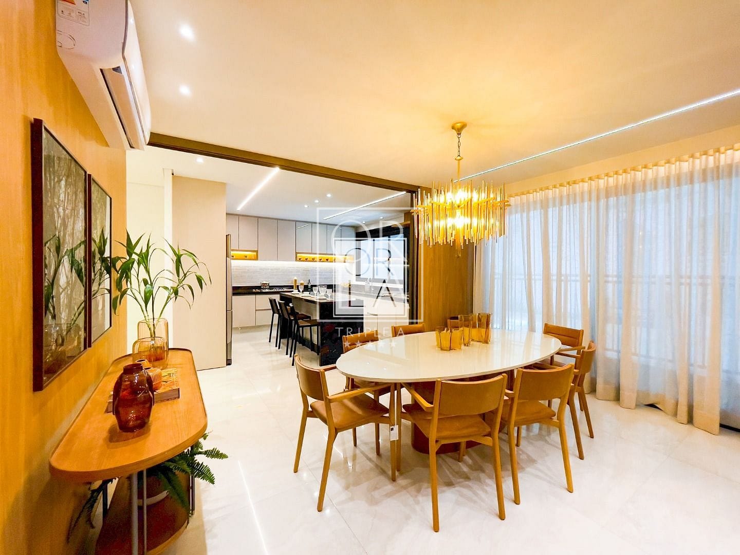 São opções de plantas com 217m, 3 ou 4 suítes, todas com espaços bem distribuídos. A sala de estar e jantar se integram com a cozinha, criando um ambiente amplo sem pilastras.