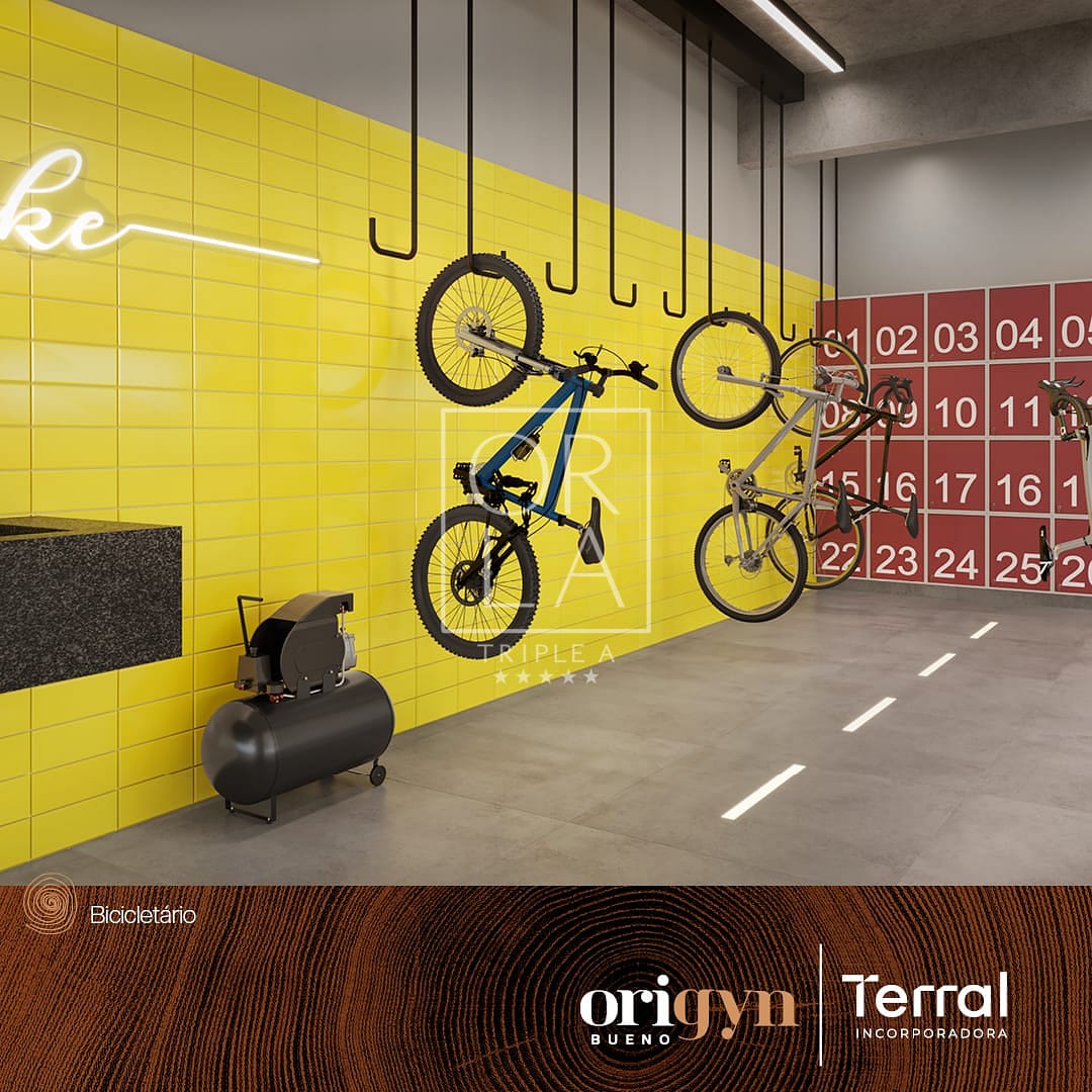 Bicicletário: Com lockers e compressor.