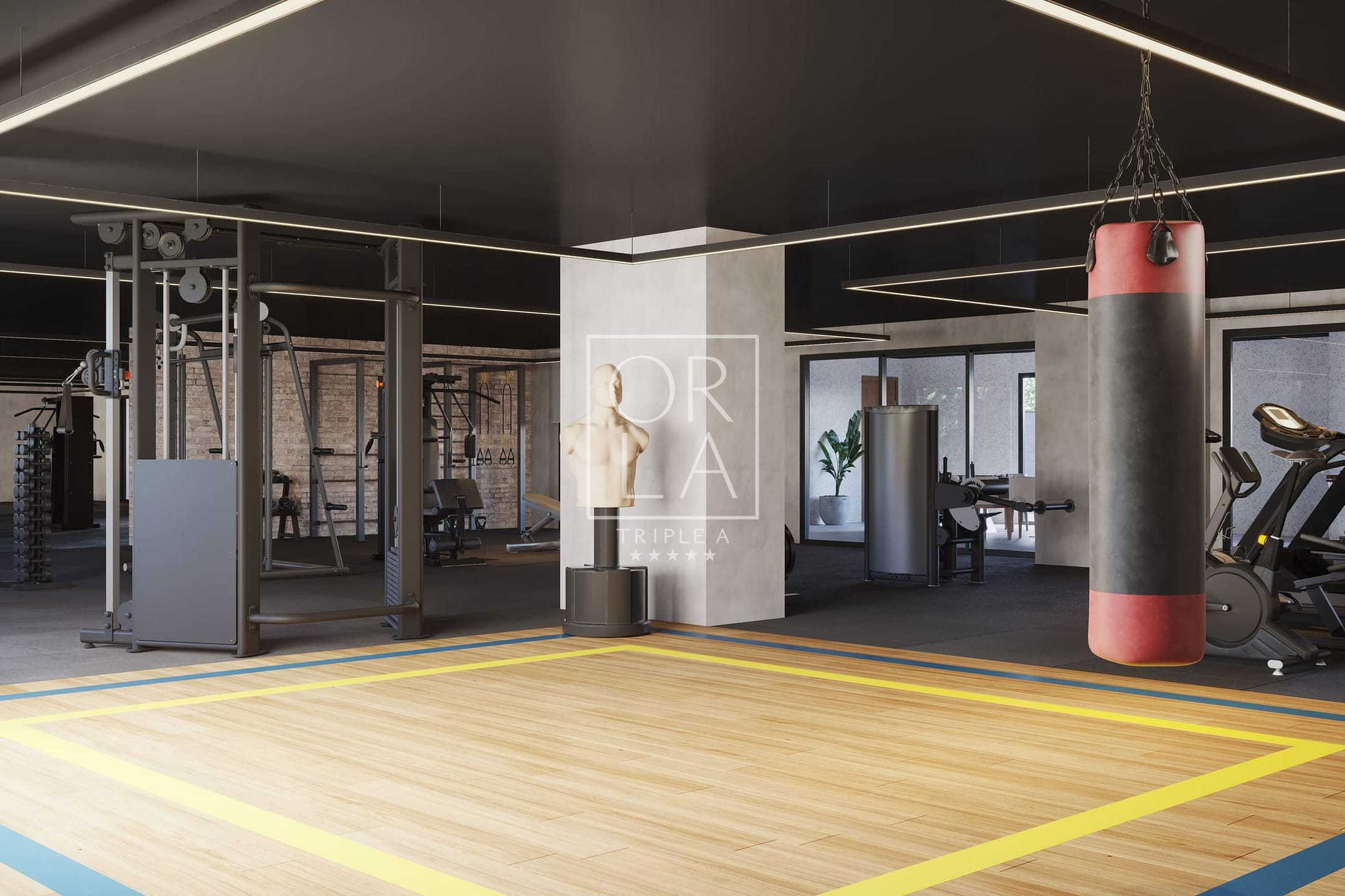 Academia com sistema de som ambiente;