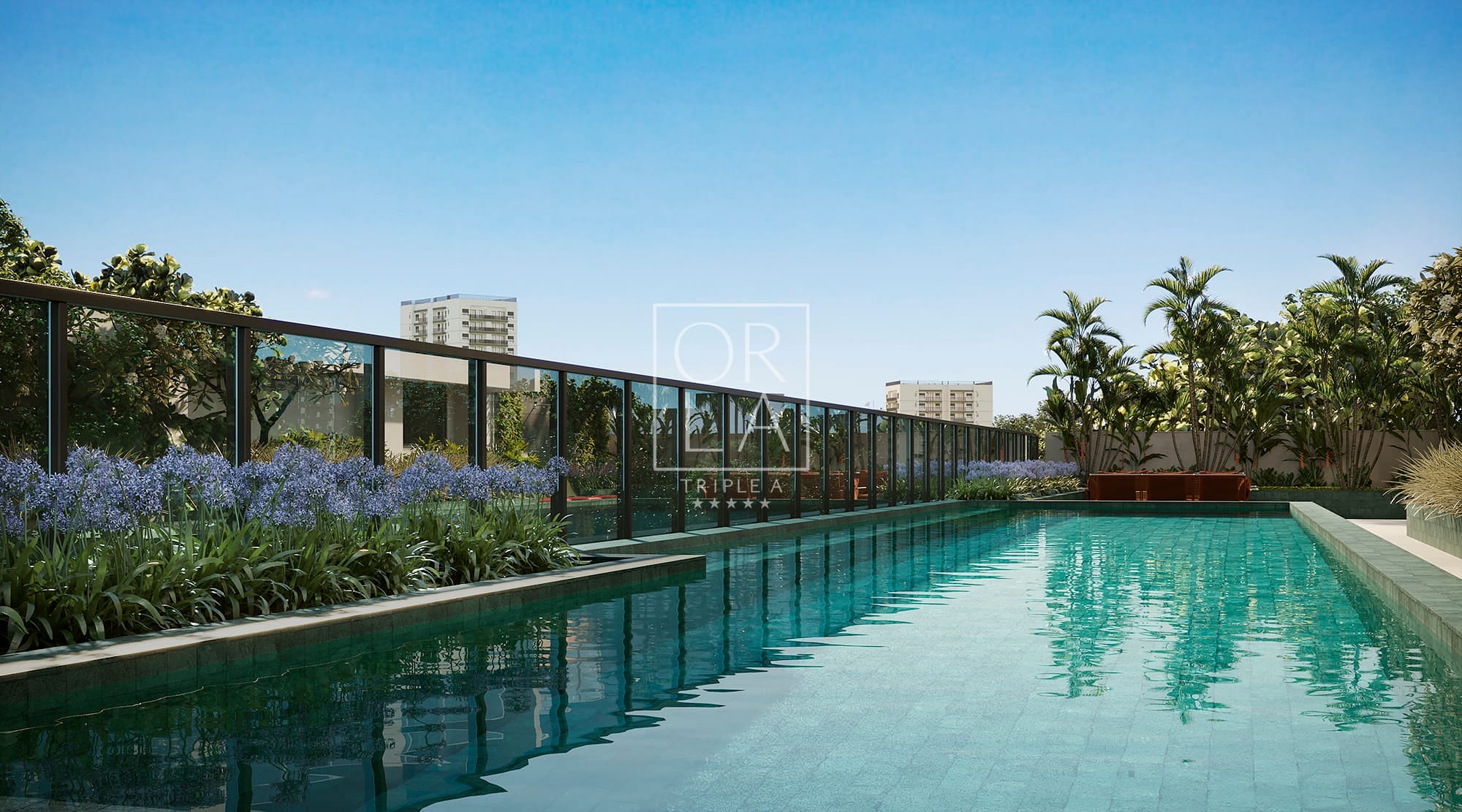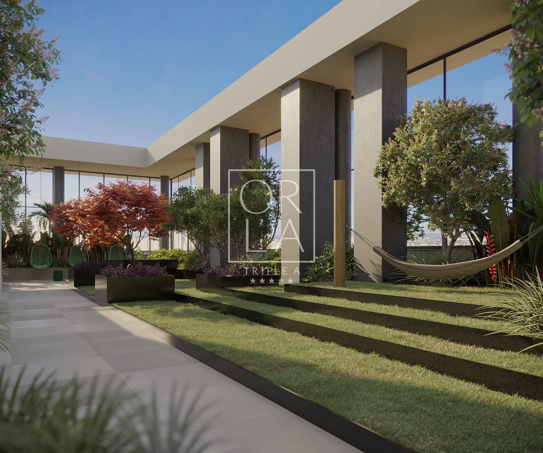 Um ambiente único, com paisagismo exclusivo e um ar de contemplação, respiro e descanso, cercado por uma vista deslumbrante da cidade.
