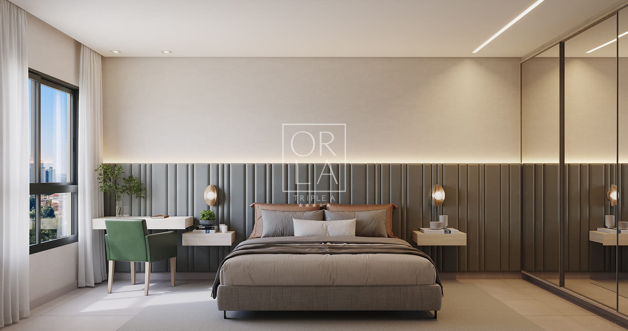 janelas com persiana integrada nas suítes.