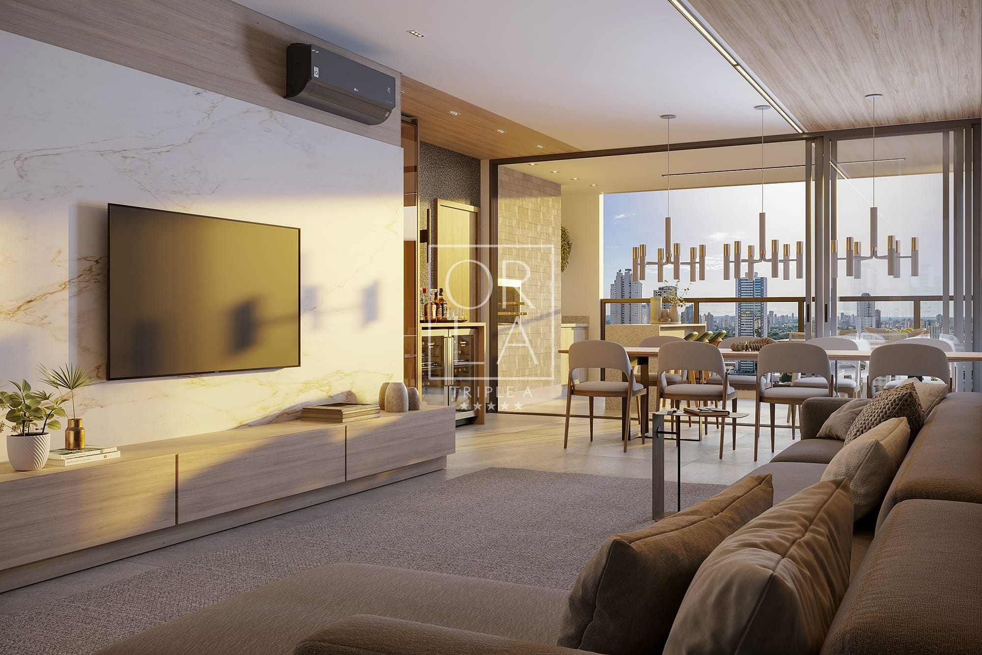 previsão de instalação de ar-condicionado modo inverter na sala de estar e suítes.