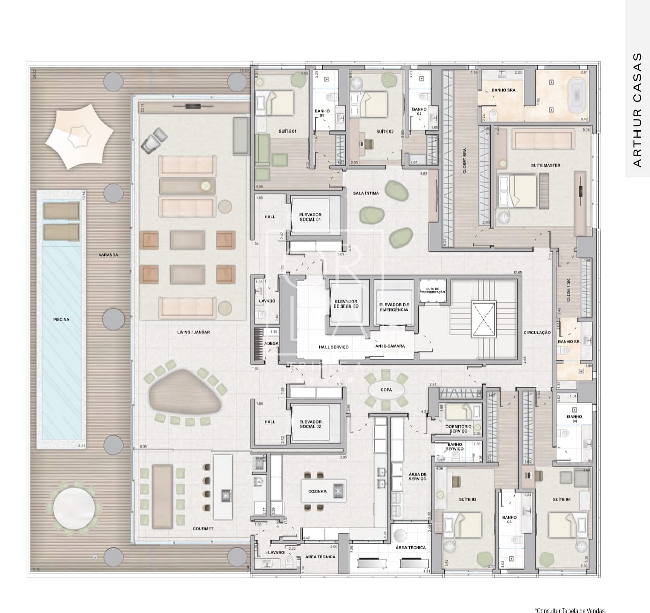 Essa revenda exclusiva do Epic City Home apresenta uma planta Pool Penthouse com uma extensão impressionante de 740,94m², representando uma verdadeira joia luxuosa no mercado imobiliário. Com 5 suítes espaçosas, cada uma com piscina na sacada e sala para adega, este apartamento é um verdadeiro espetáculo de conforto e sofisticação.