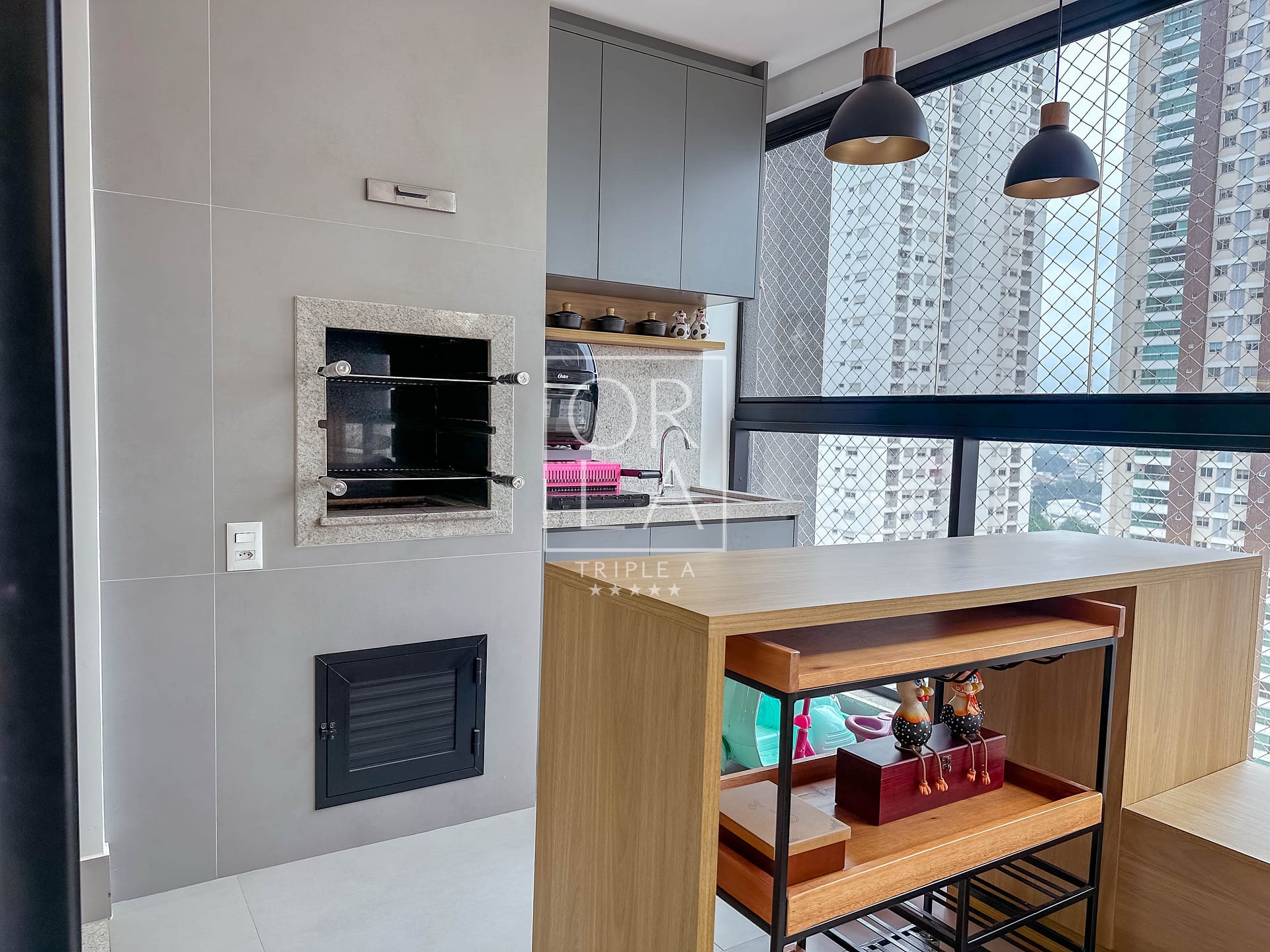 * Varanda com churrasqueira à carvão;