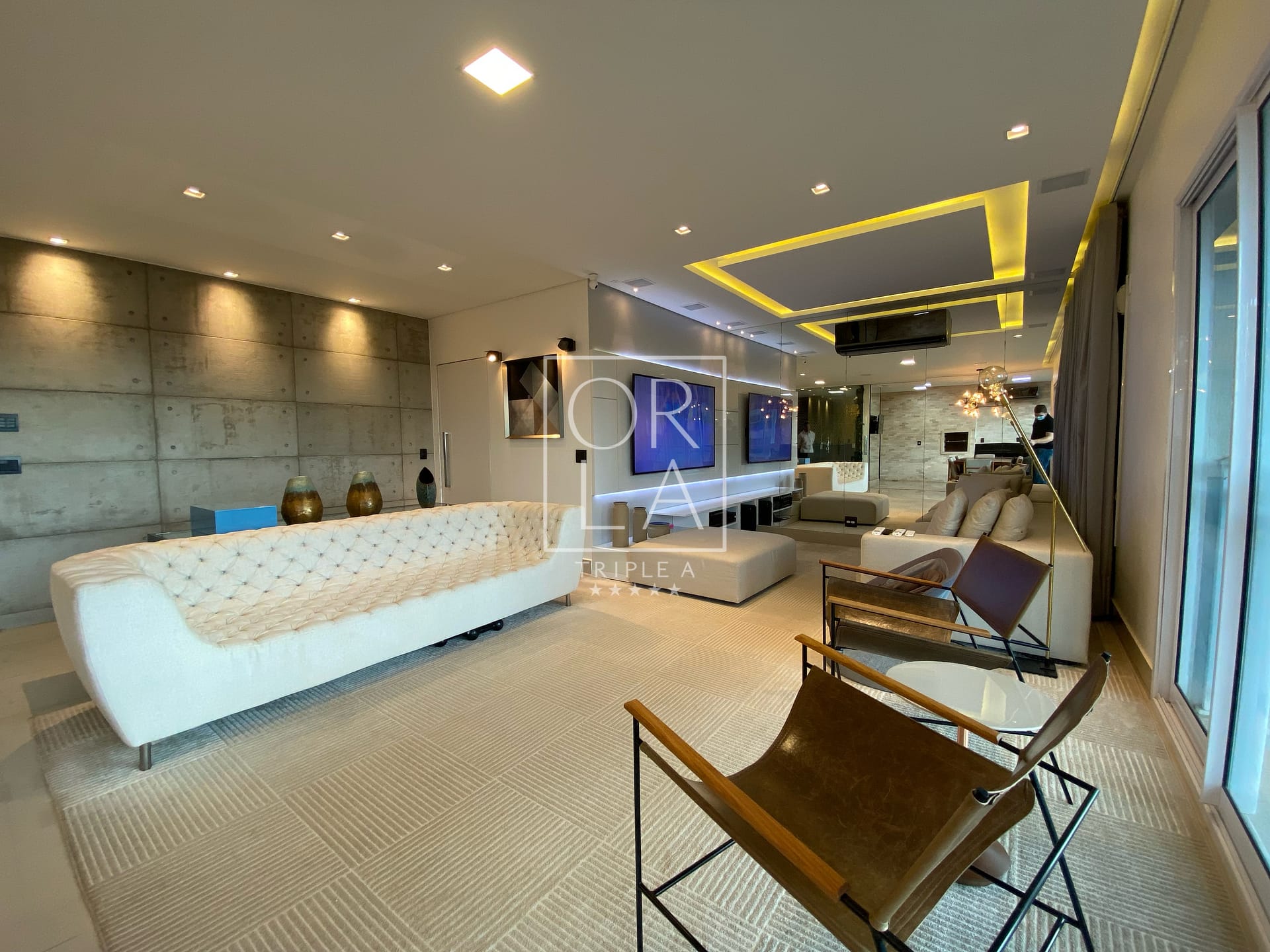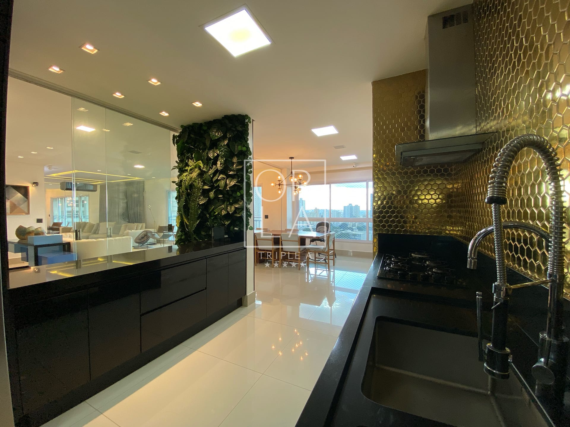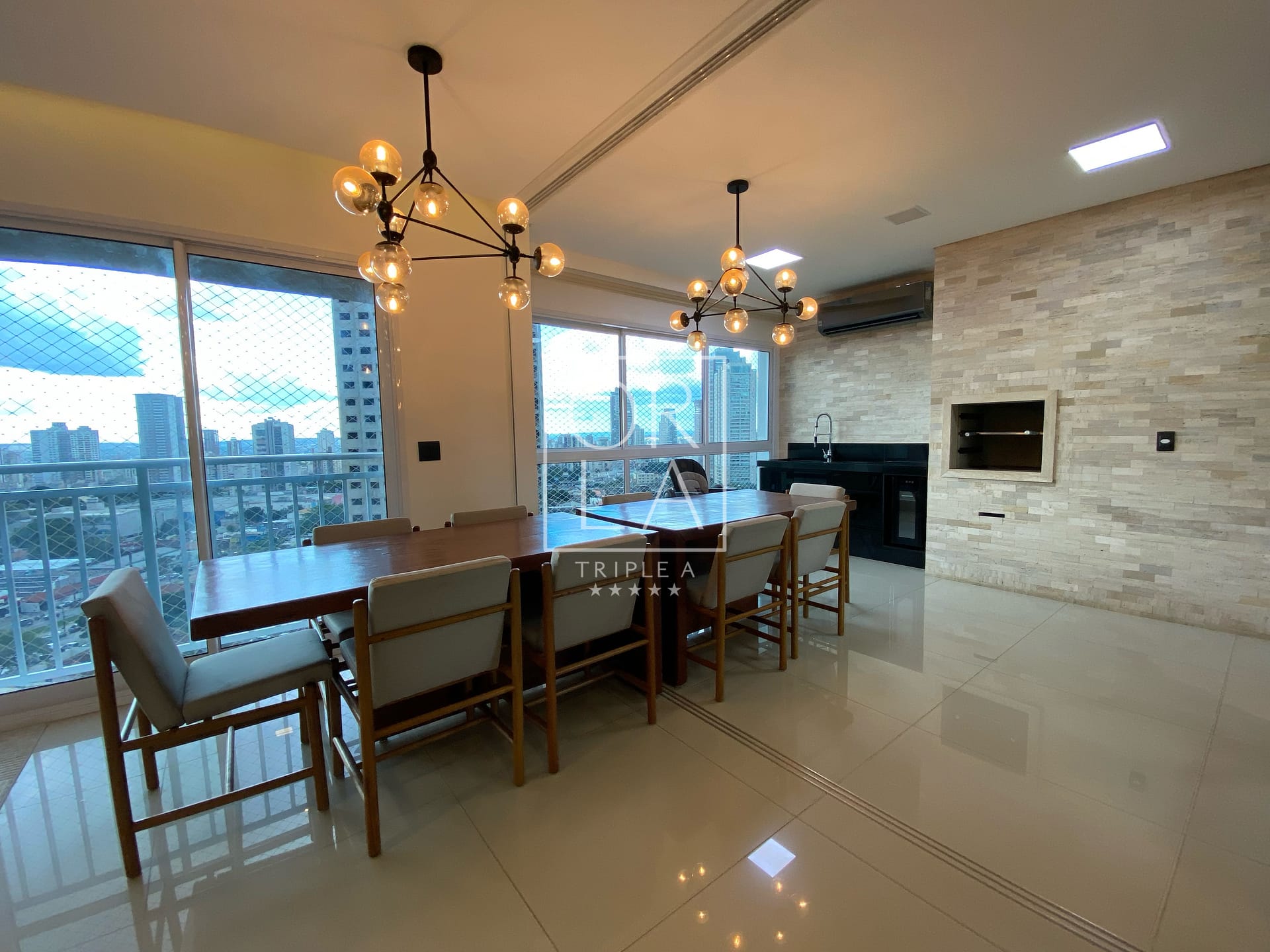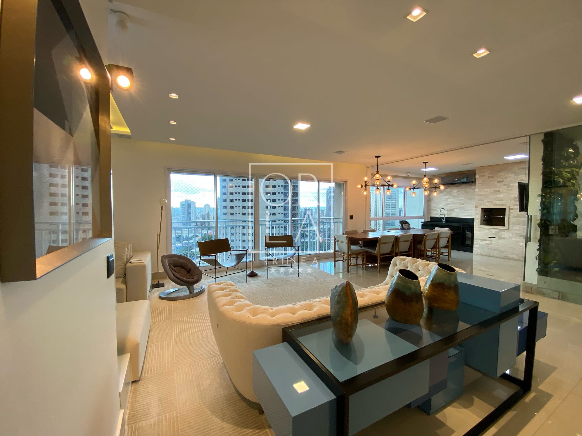 Com 3 suítes plenas, 175 metros privativos, ampla sala com 3 ambientes, projeto de som, iluminação e automação, linda cascata na sala, churrasqueira a carvão, completamente mobiliado e decorado, duas vagas de garagem paralelas .
