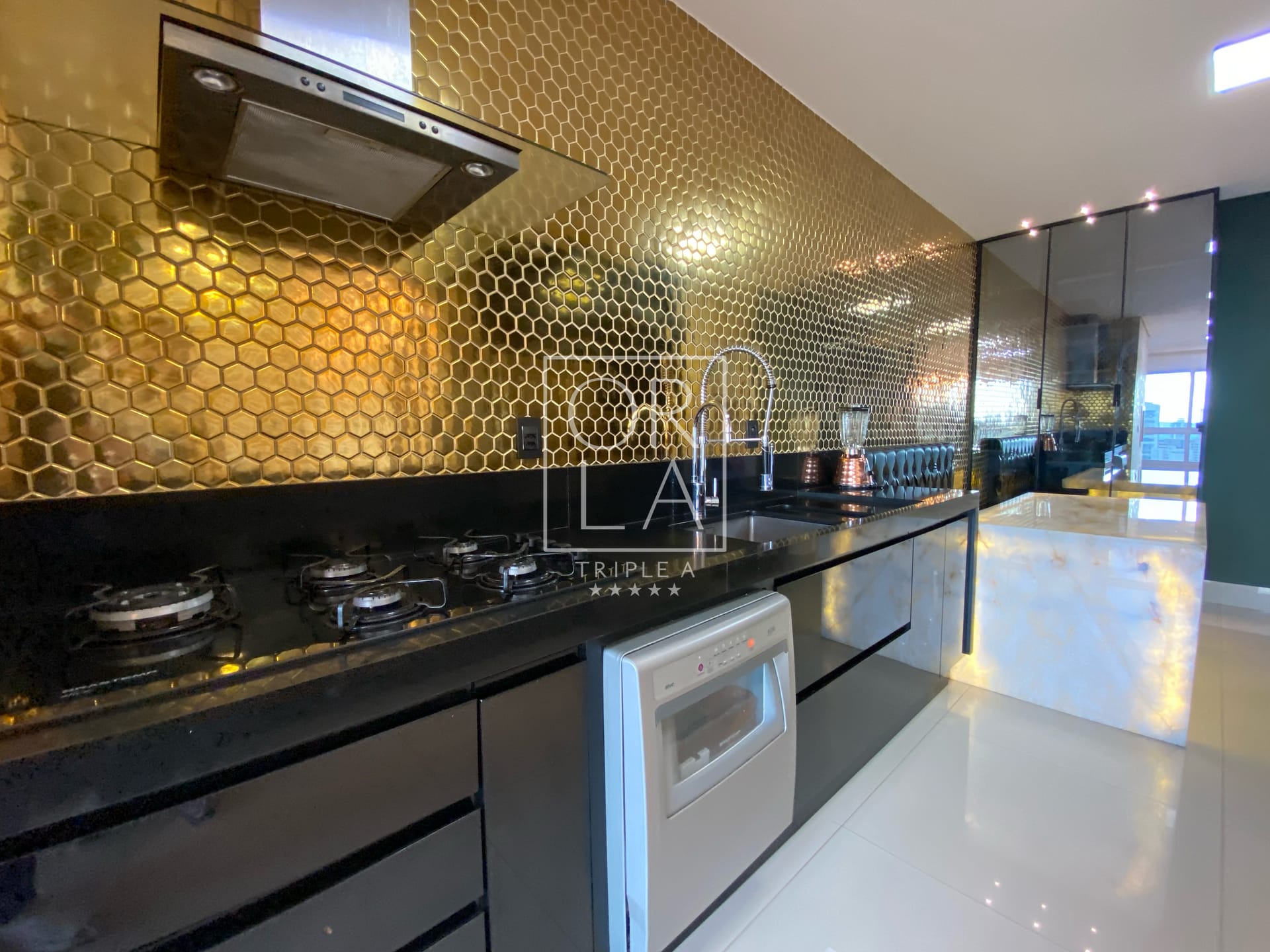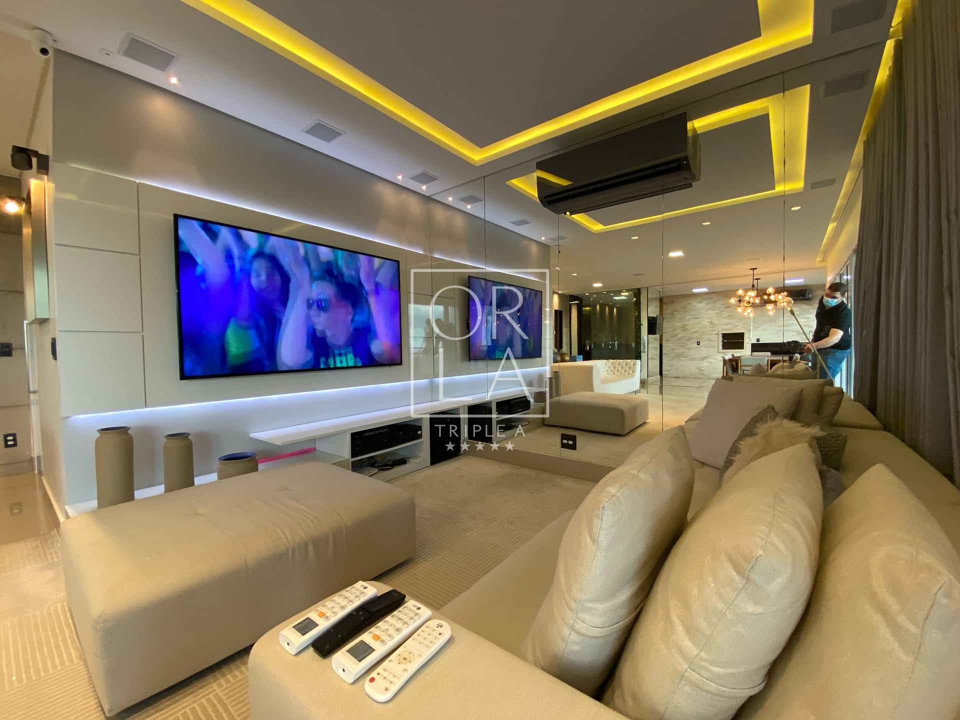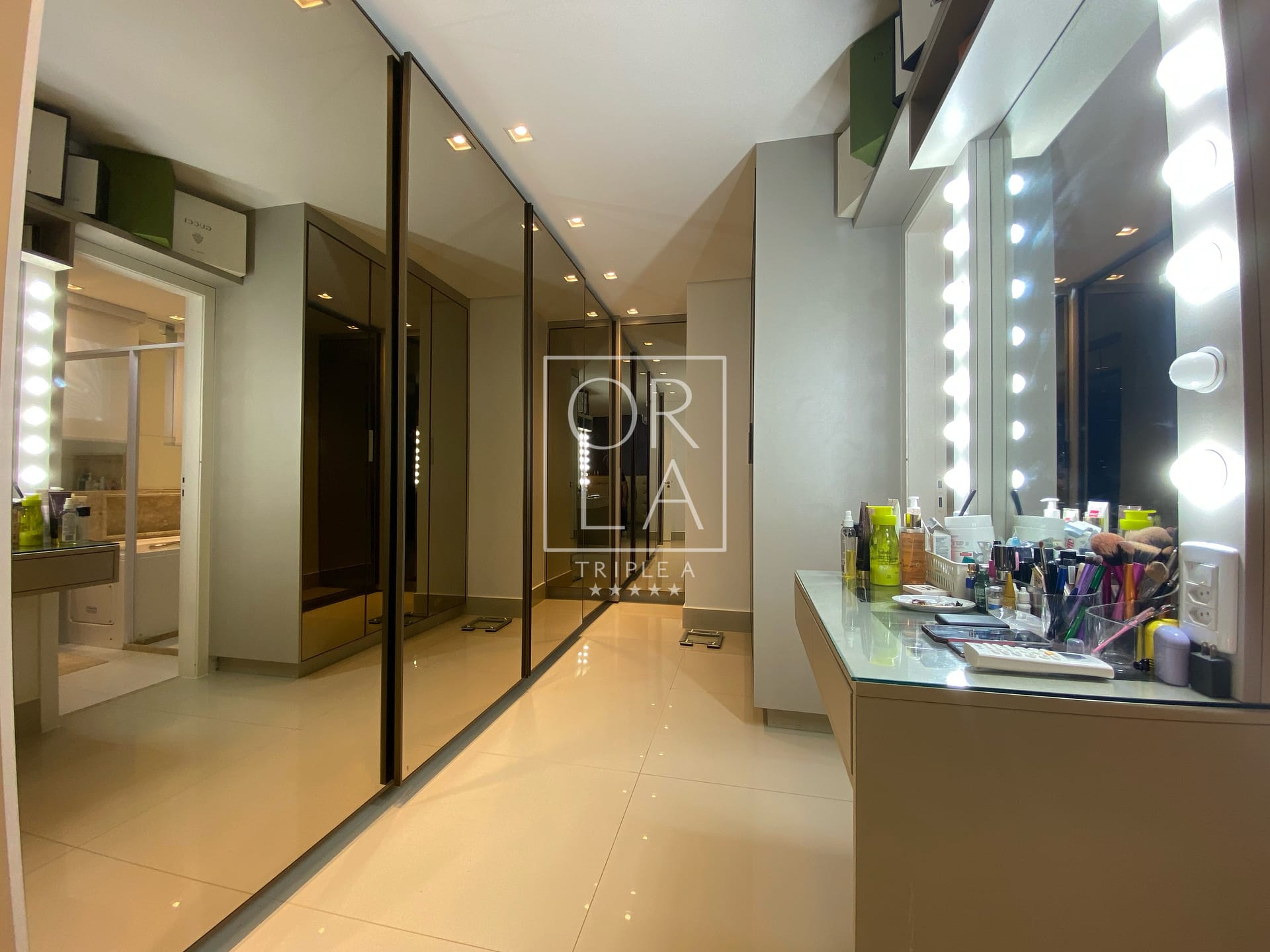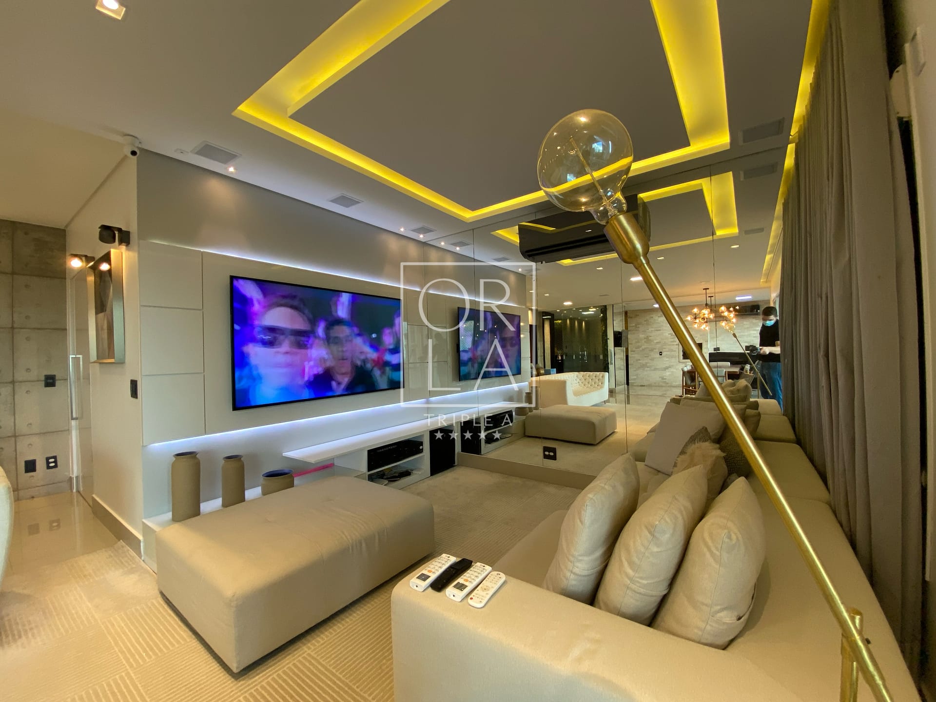 Com 3 suítes plenas, 175 metros privativos, ampla sala com 3 ambientes, projeto de som, iluminação e automação, linda cascata na sala, churrasqueira a carvão, completamente mobiliado e decorado, duas vagas de garagem paralelas .