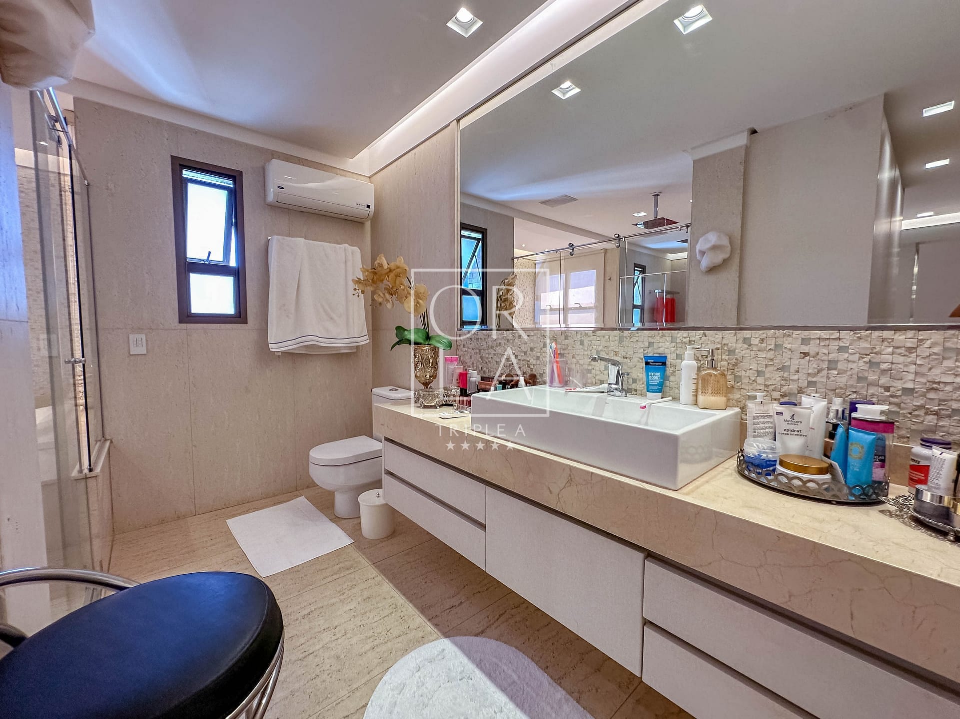 Com 379m² bem distribuídos, esta unidade nascente oferece 4 suítes plenas, acabamento sofisticado e um projeto que privilegia o conforto e a integração dos ambientes. A ampla varanda gourmet com churrasqueira a carvão é perfeita para receber, com uma vista deslumbrante e permanente para o verde do parque.
