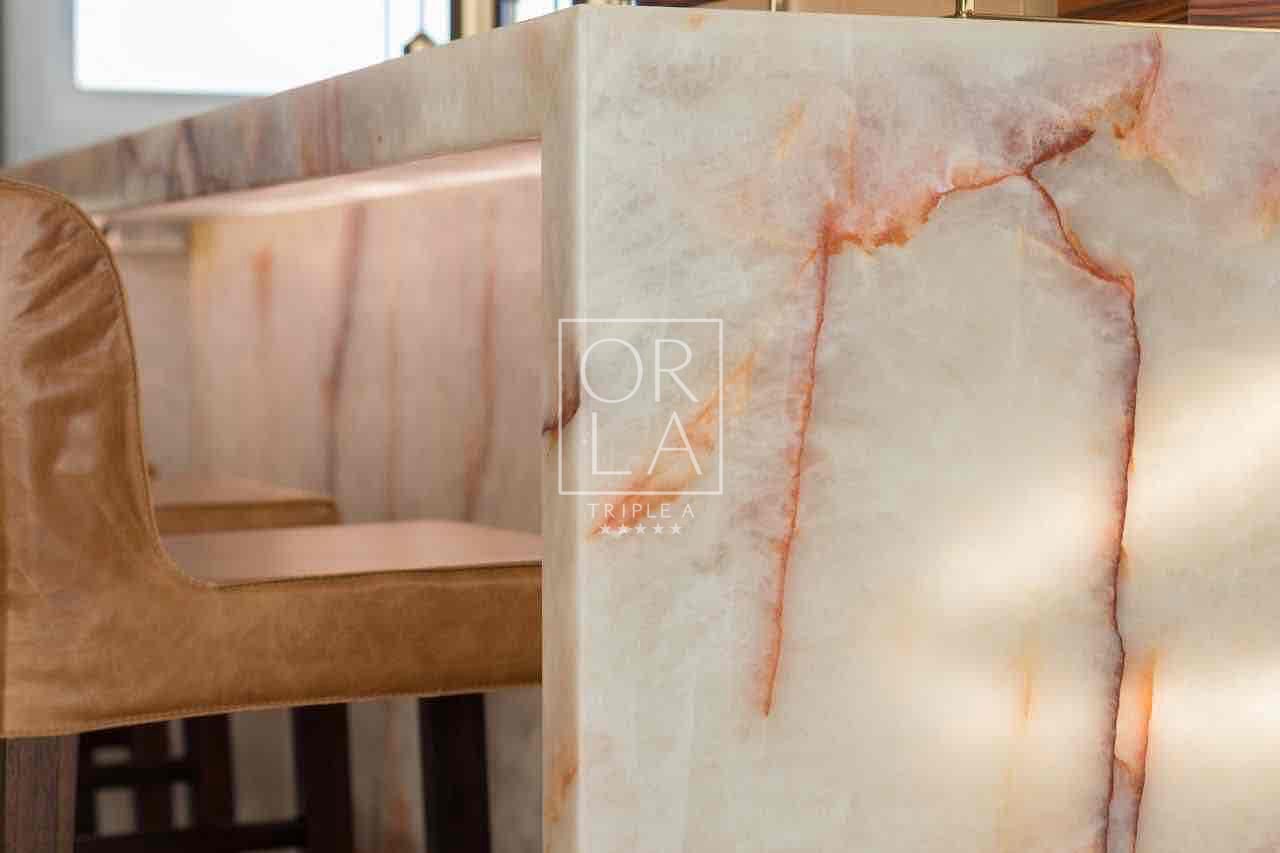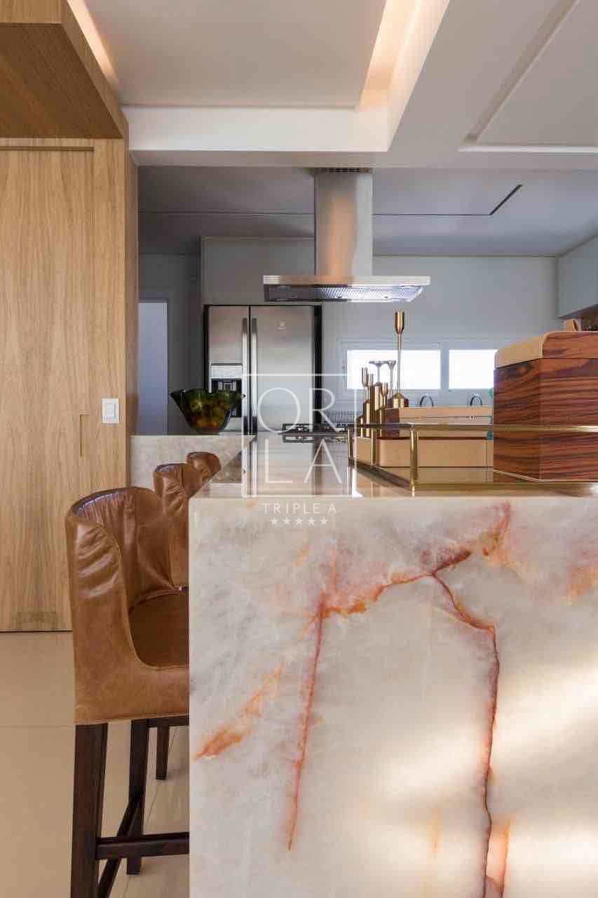 Com 200m² de puro equilíbrio entre elegância e conforto, cada ambiente foi pensado para receber e viver com prazer. Iluminação indireta e LED criando cenas acolhedoras. Ripados que desenham a sala. Cozinha com bancadas em ônix iluminado, ao lado de uma churrasqueira a carvão para encontros memoráveis.