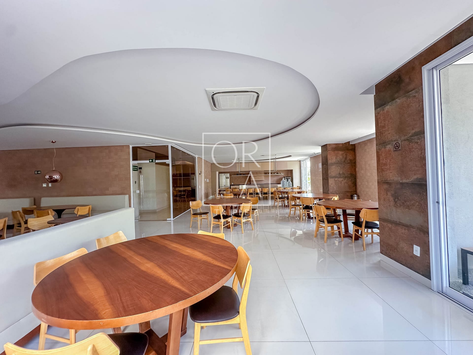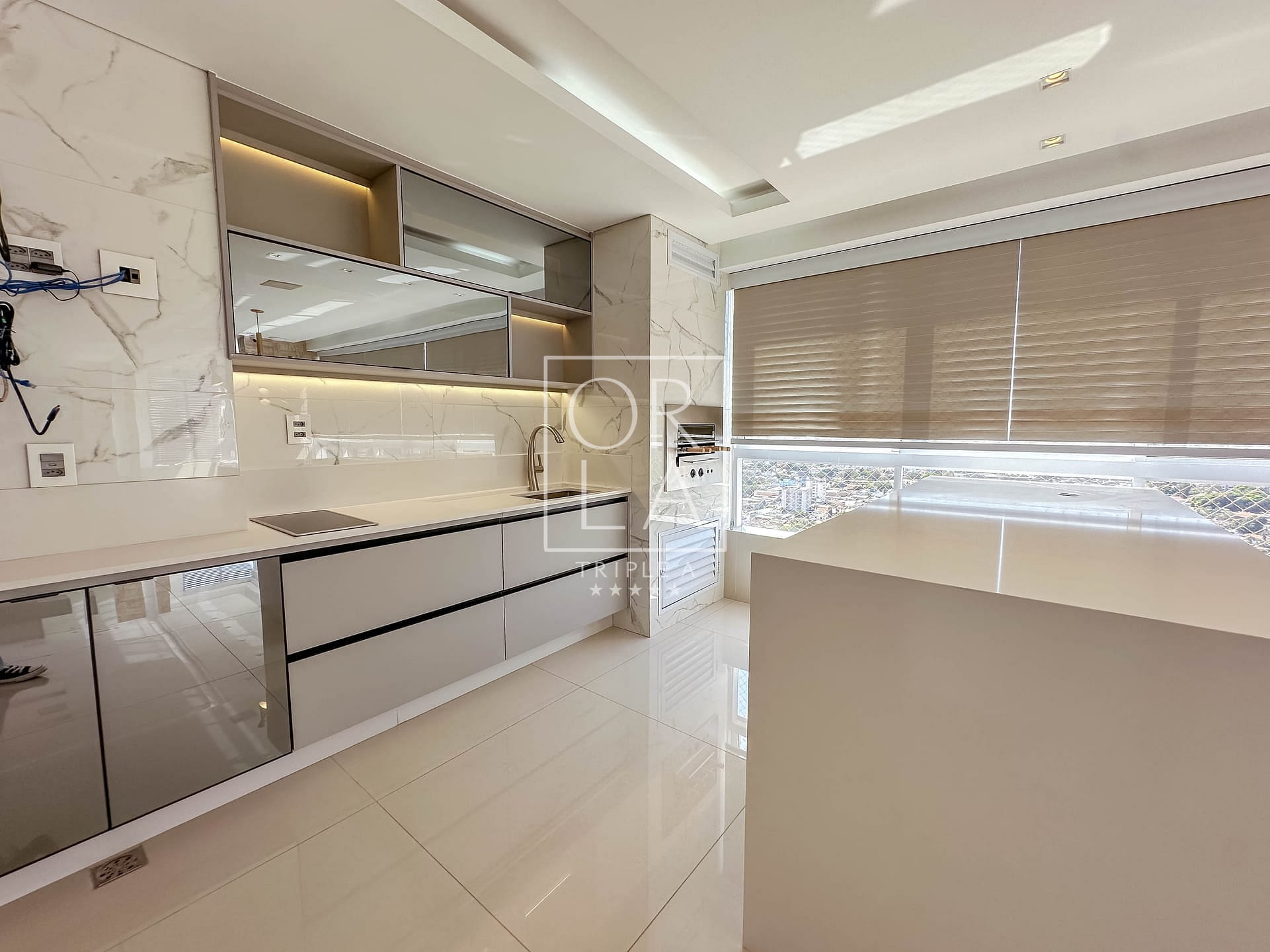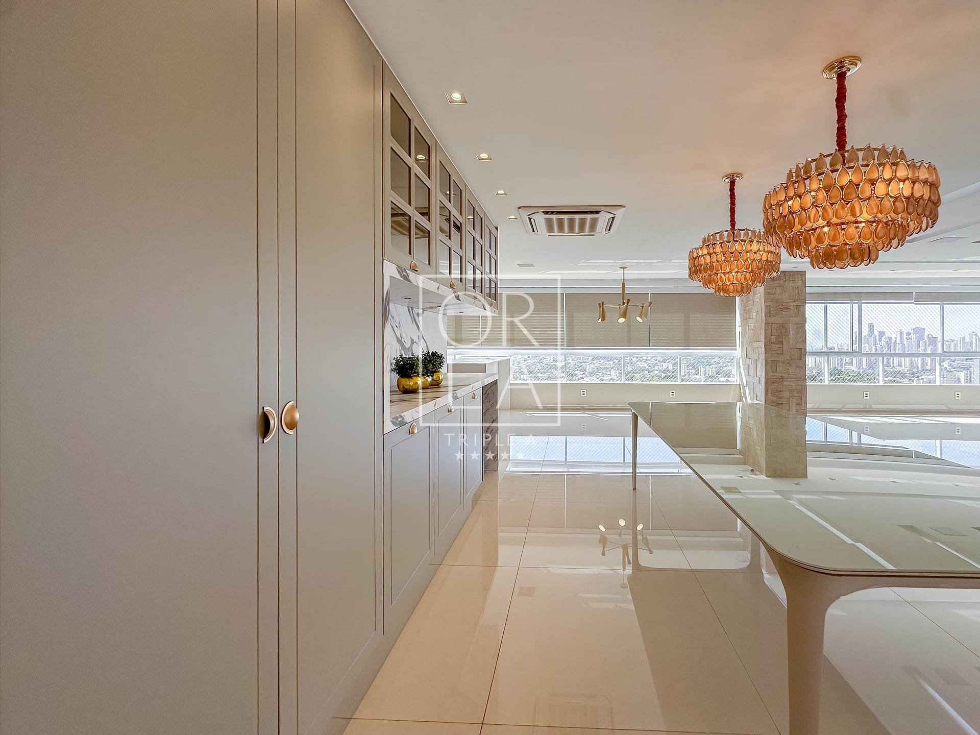 O projeto arquitetônico exclusivo, conta com marcenaria de alto padrão da Bontempo. A área social é ampla e integrada. A varanda gourmet é completa, com armários planejados, ilha de apoio à churrasqueira a gás e espaço para cervejeira. Cozinha sofisticada, rica em armários, com espaço para duas geladeiras, ilha central com mesa integrada, além de fogão cooktop, coifa, forno elétrico, máquina de lavar louça e despensa planejada.