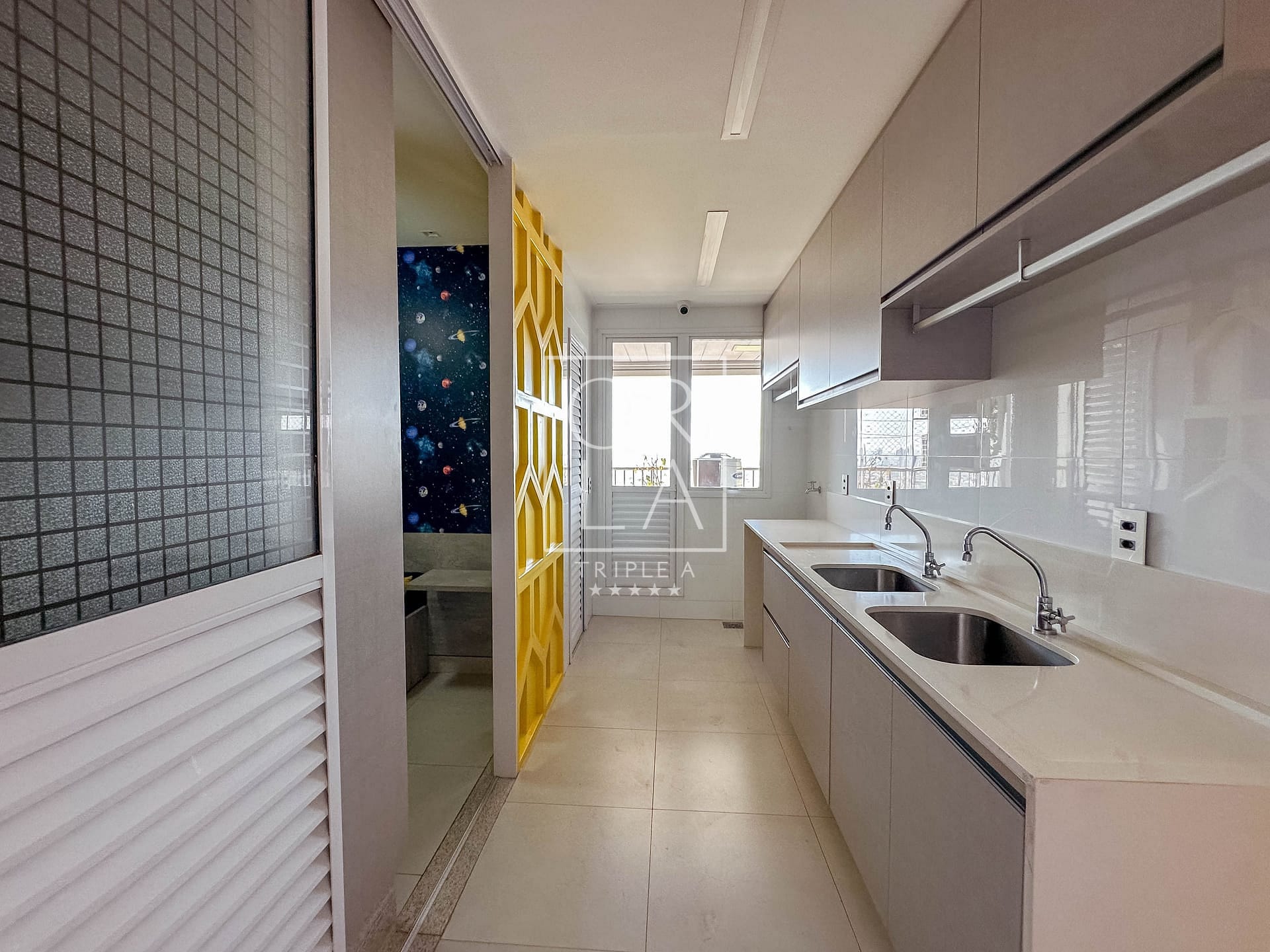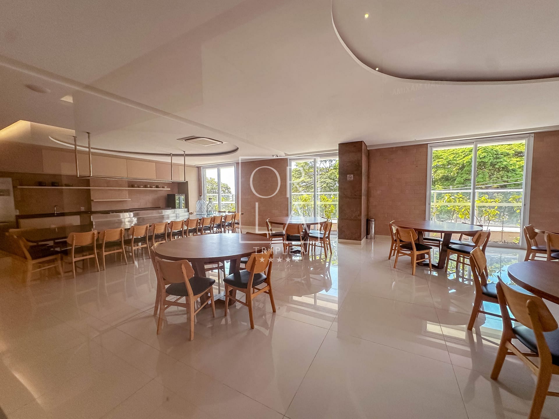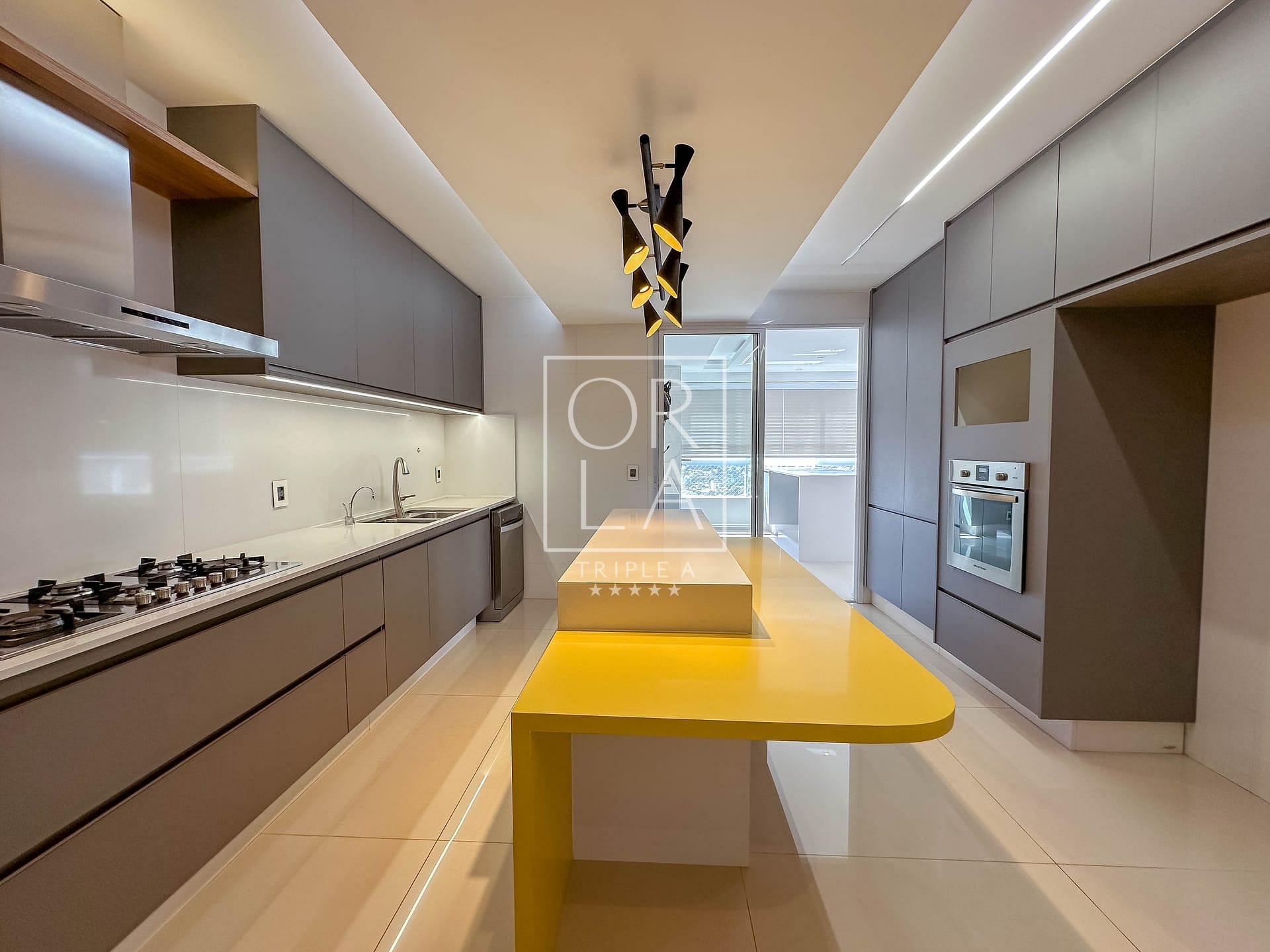 O projeto arquitetônico exclusivo, conta com marcenaria de alto padrão da Bontempo. A área social é ampla e integrada. A varanda gourmet é completa, com armários planejados, ilha de apoio à churrasqueira a gás e espaço para cervejeira. Cozinha sofisticada, rica em armários, com espaço para duas geladeiras, ilha central com mesa integrada, além de fogão cooktop, coifa, forno elétrico, máquina de lavar louça e despensa planejada.
