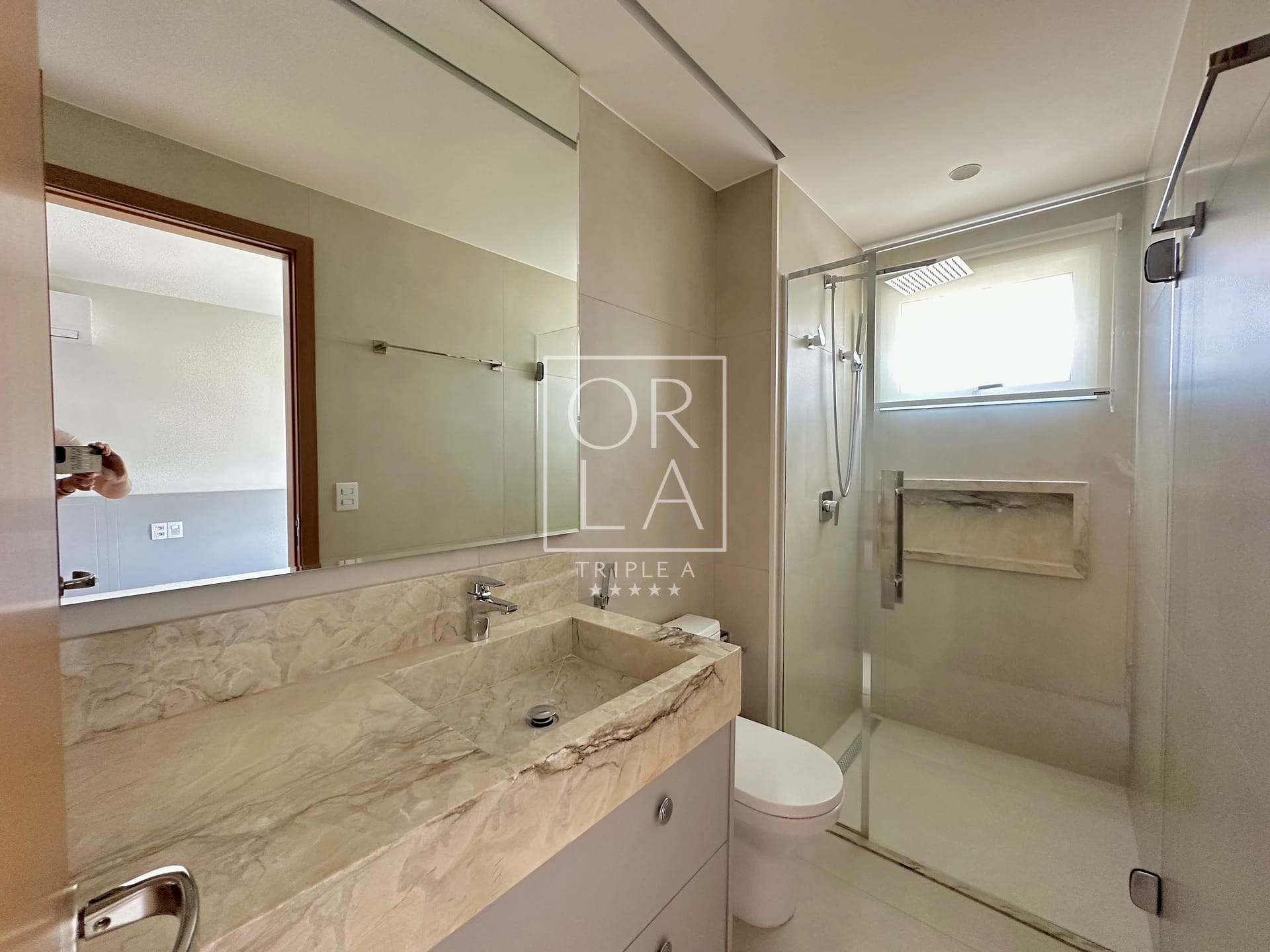 • Planta inteligente: 3 suítes plenas muito amplas — suíte master com closet, bancada em quartzo branco prime, janelas generosas e persiana automatizada.