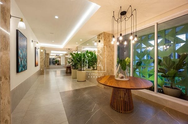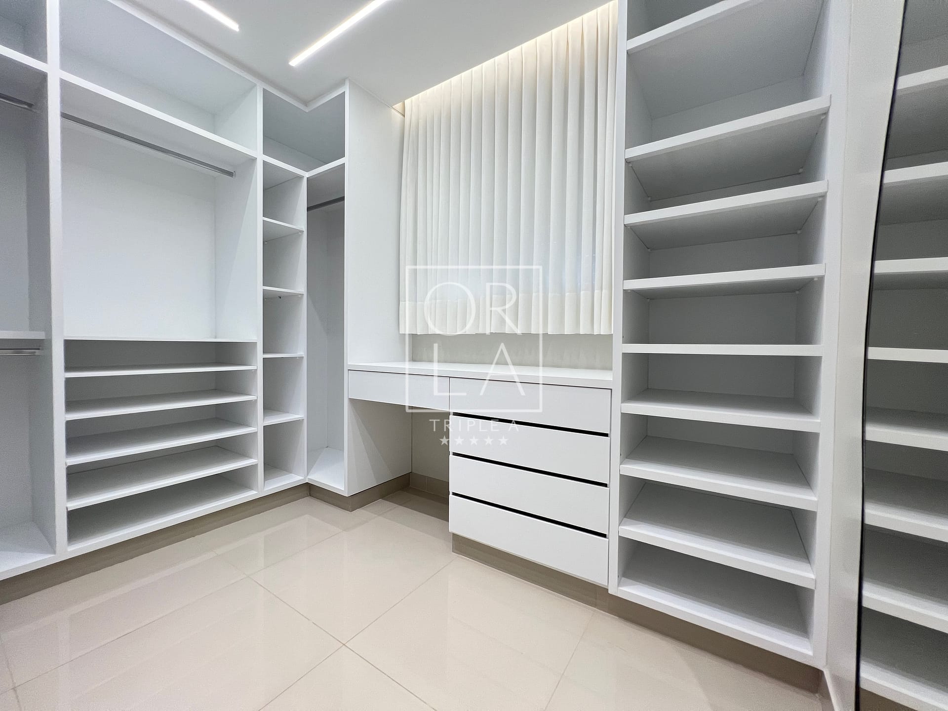 Todo o apartamento é revestido em porcelanato, conta com ar-condicionado em todos os quartos e na sala de TV, além de porta de entrada com fechadura eletrônica, trazendo mais segurança e praticidade.