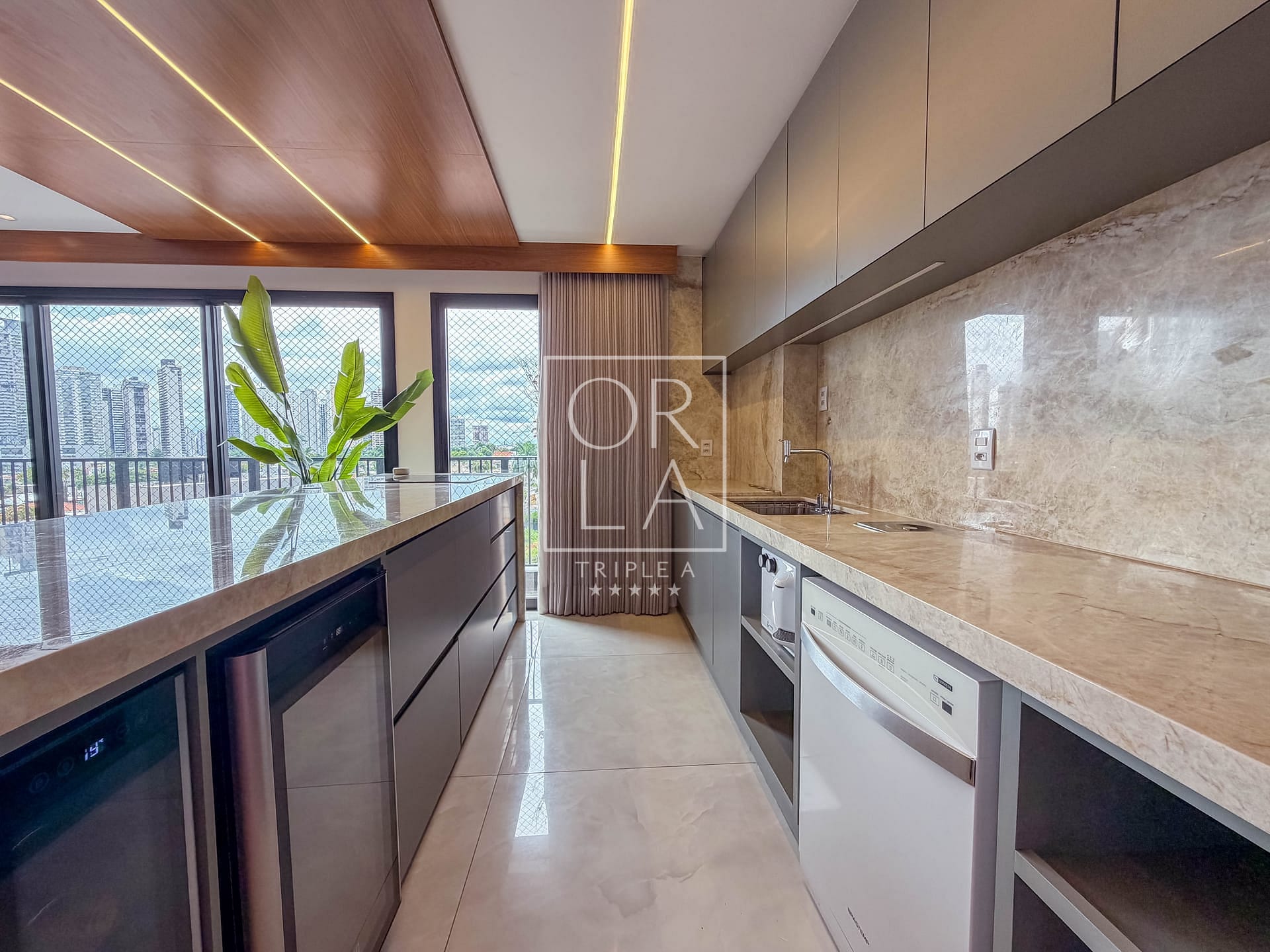 A cozinha gourmet em conceito aberto é um verdadeiro destaque, equipada com eletrodomésticos premium, marcenaria de altíssima qualidade e bancadas em mármore. Um espaço funcional e ao mesmo tempo acolhedor, perfeito tanto para o dia a dia quanto para receber.