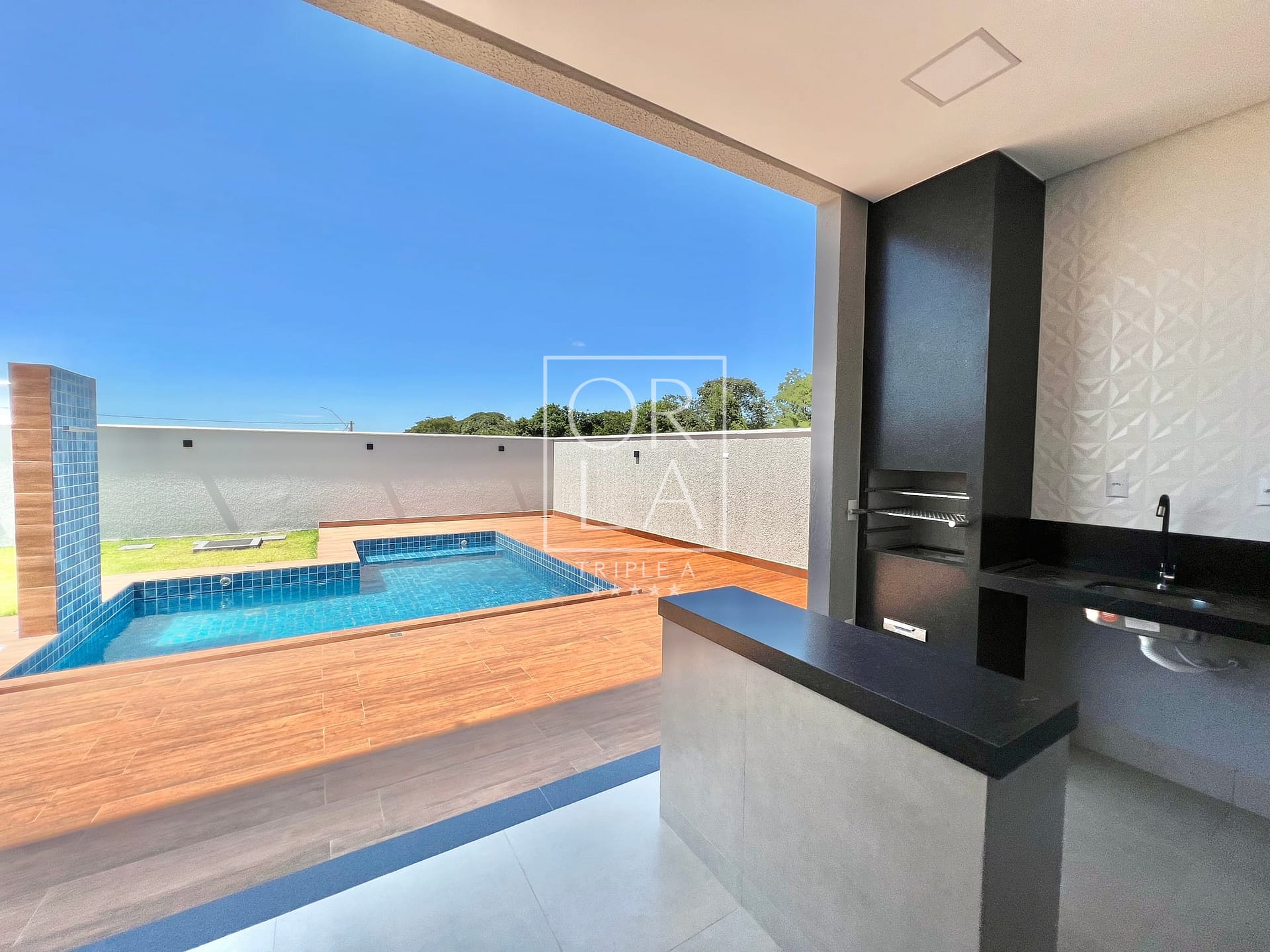 Varanda com churrasqueira, piscina aquecida, com iluminação, hidromassagem, ducha