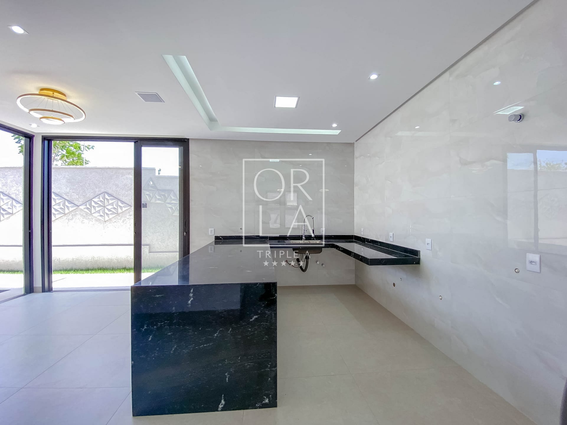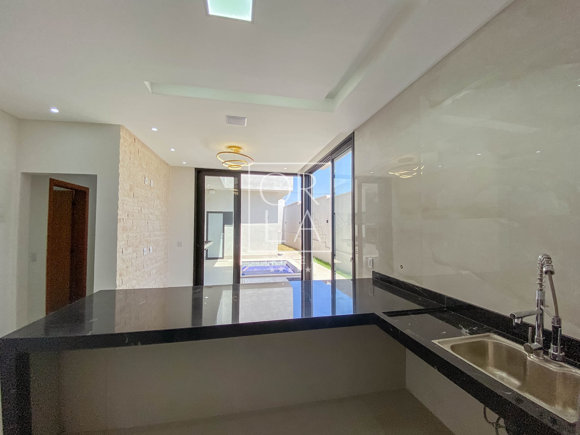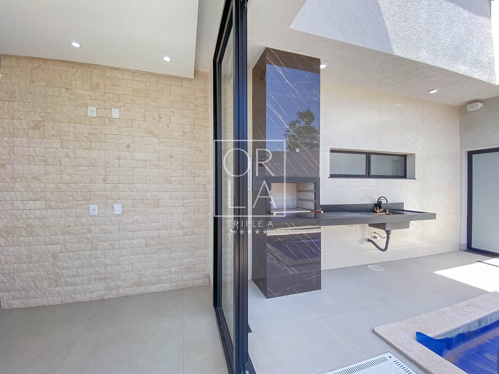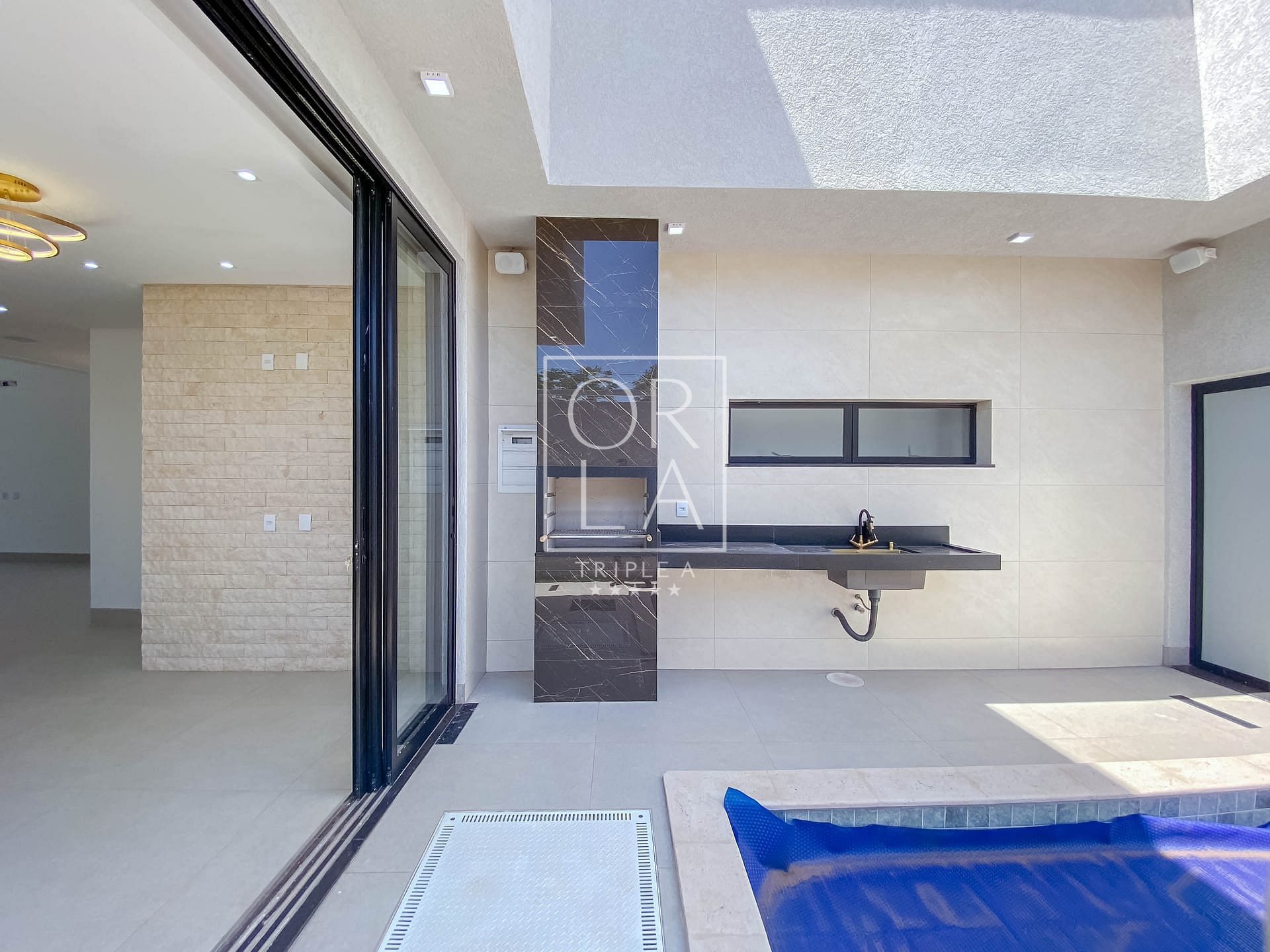 A residência oferece uma piscina aquecida com iluminação, complementada por toda a iluminação entregue, incluindo fitas de LED nas sancas, muros e balizadores. O piso em porcelanato Porto Bello e os revestimentos de 1,20 nas paredes do banheiro conferem um toque de sofisticação.