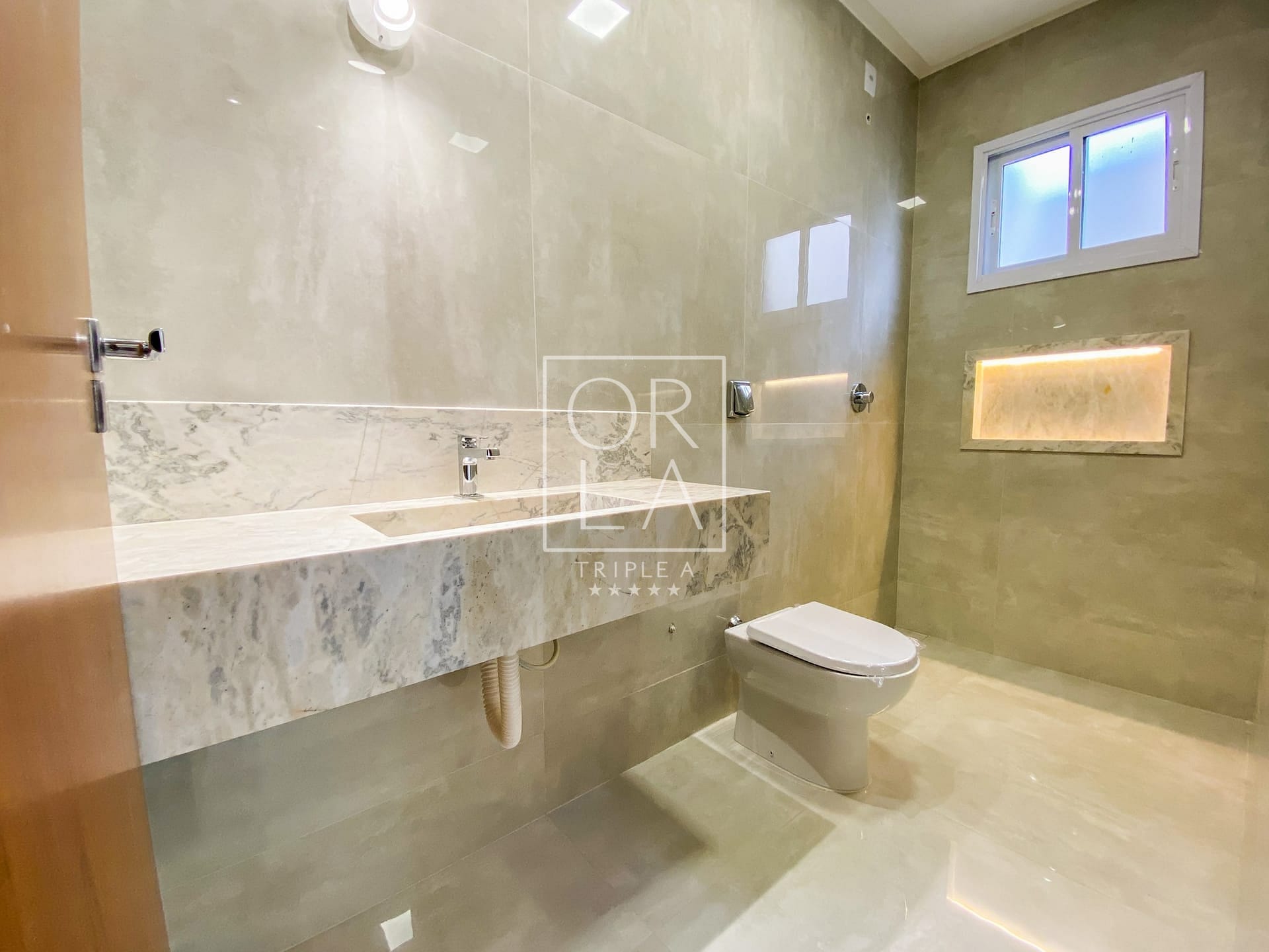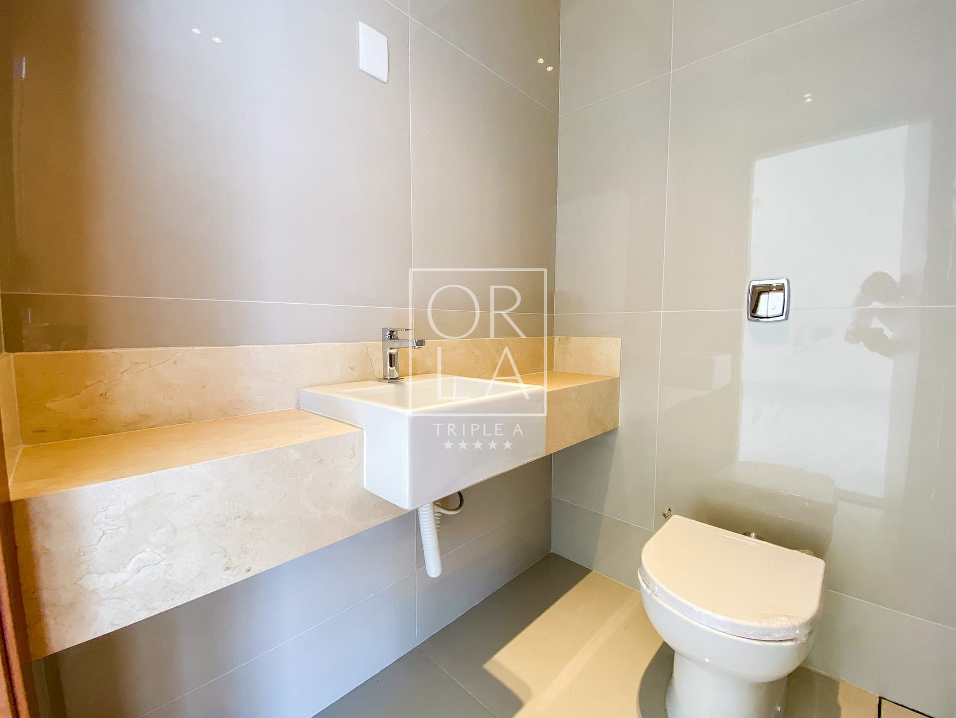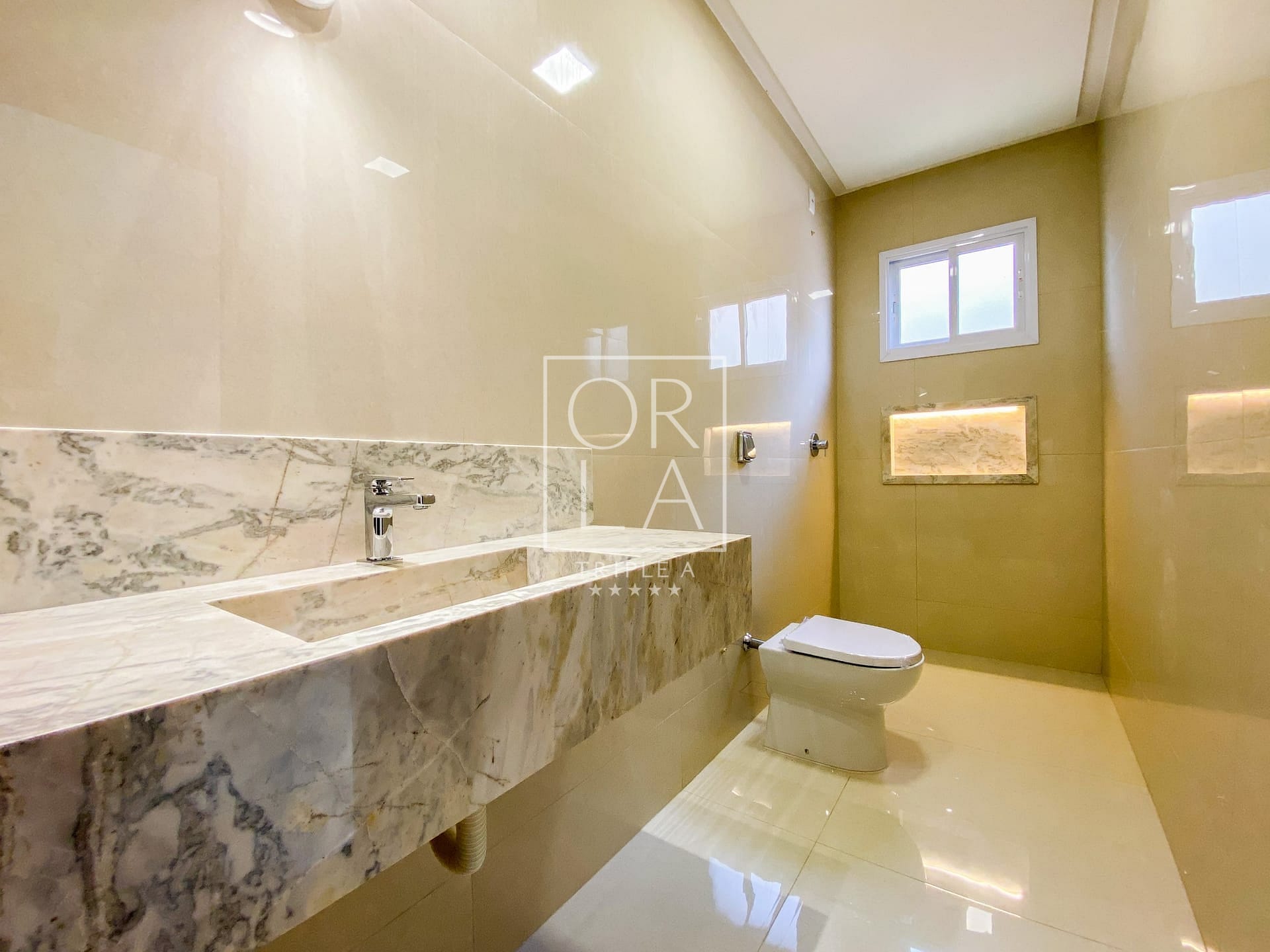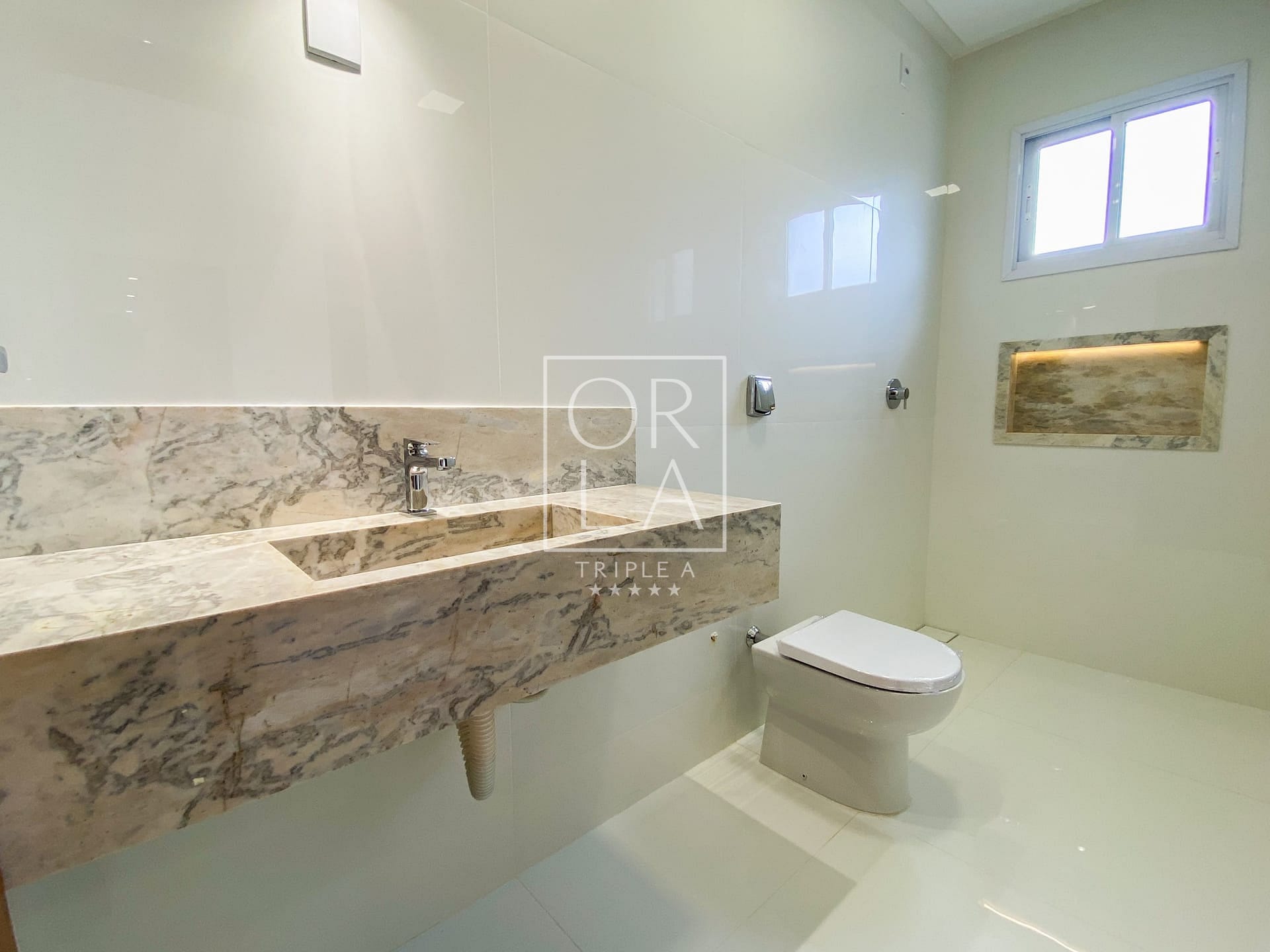 Banheiros Montados com Lavatórios Esculpidos e Nichos em Granitos Especiais: Cada banheiro é uma obra-prima de design e funcionalidade, proporcionando um toque de luxo ao seu dia a dia.