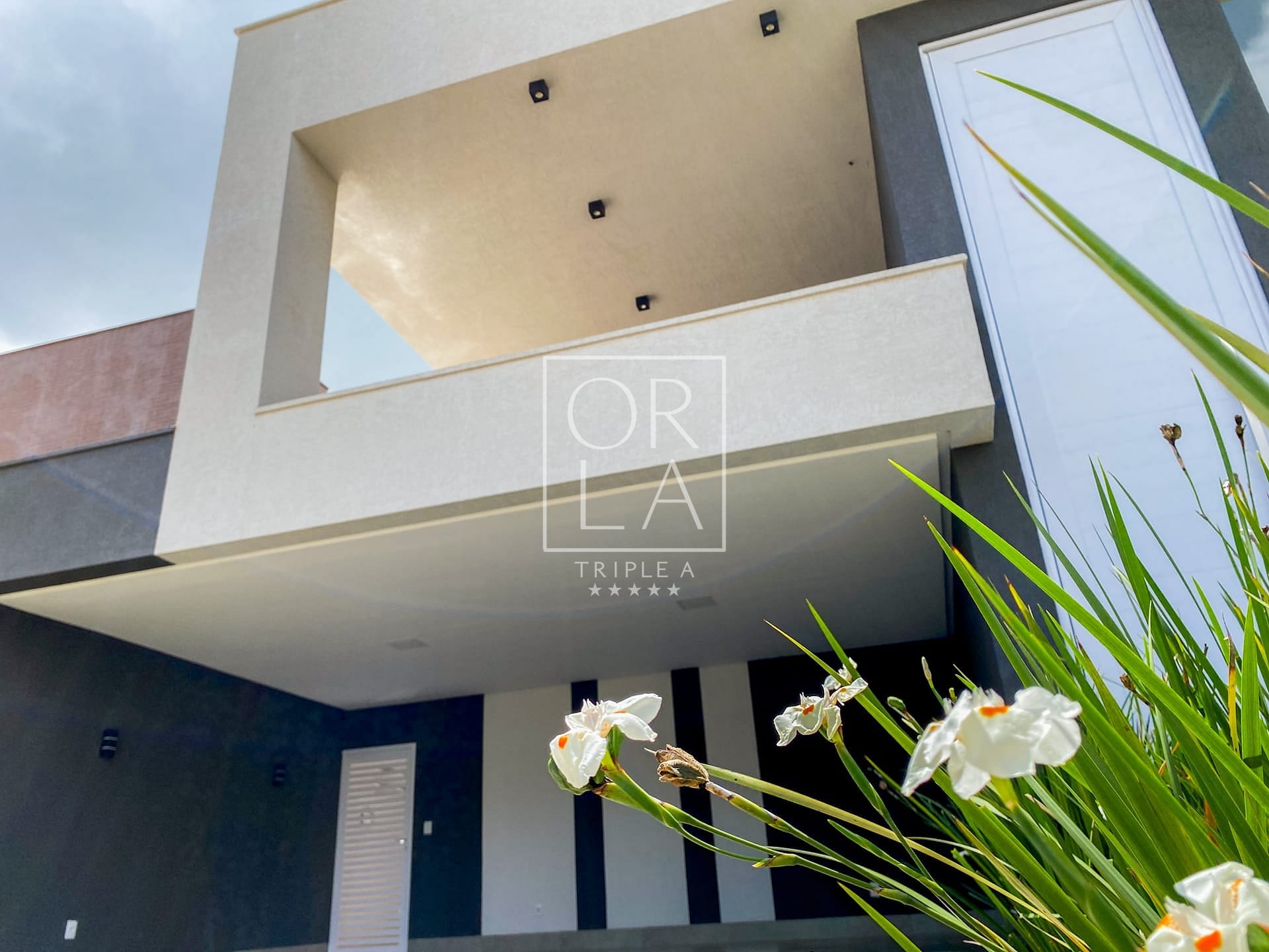 Esquadrias em Alumínio Cor Branca: Detalhes que evidenciam a modernidade e a elegância da arquitetura, complementando a estética impecável da casa.