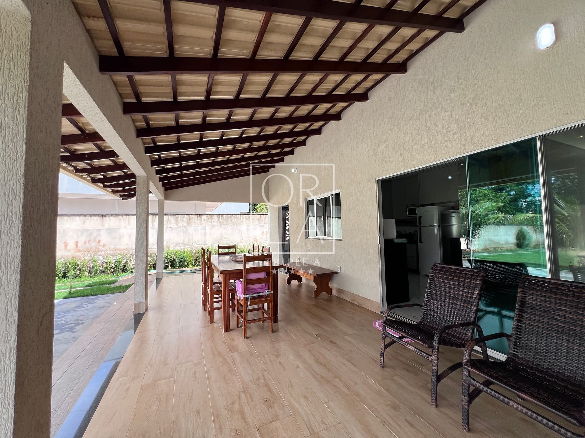 Chácara térrea de 4 quartos, sendo 2 suítes, Banheiro Social, Sala de estar espaçosa com pé direito duplo, Sala de jantar integrada á cozinha, Cozinha ampla completa em armários, com coifa, fogão cooktop e forno embutido, Espaço gourmet, Banheiro que atende área externa, Área de serviços, Garagem para 04 carros, Quintal amplo e contemplativo com muito verde.