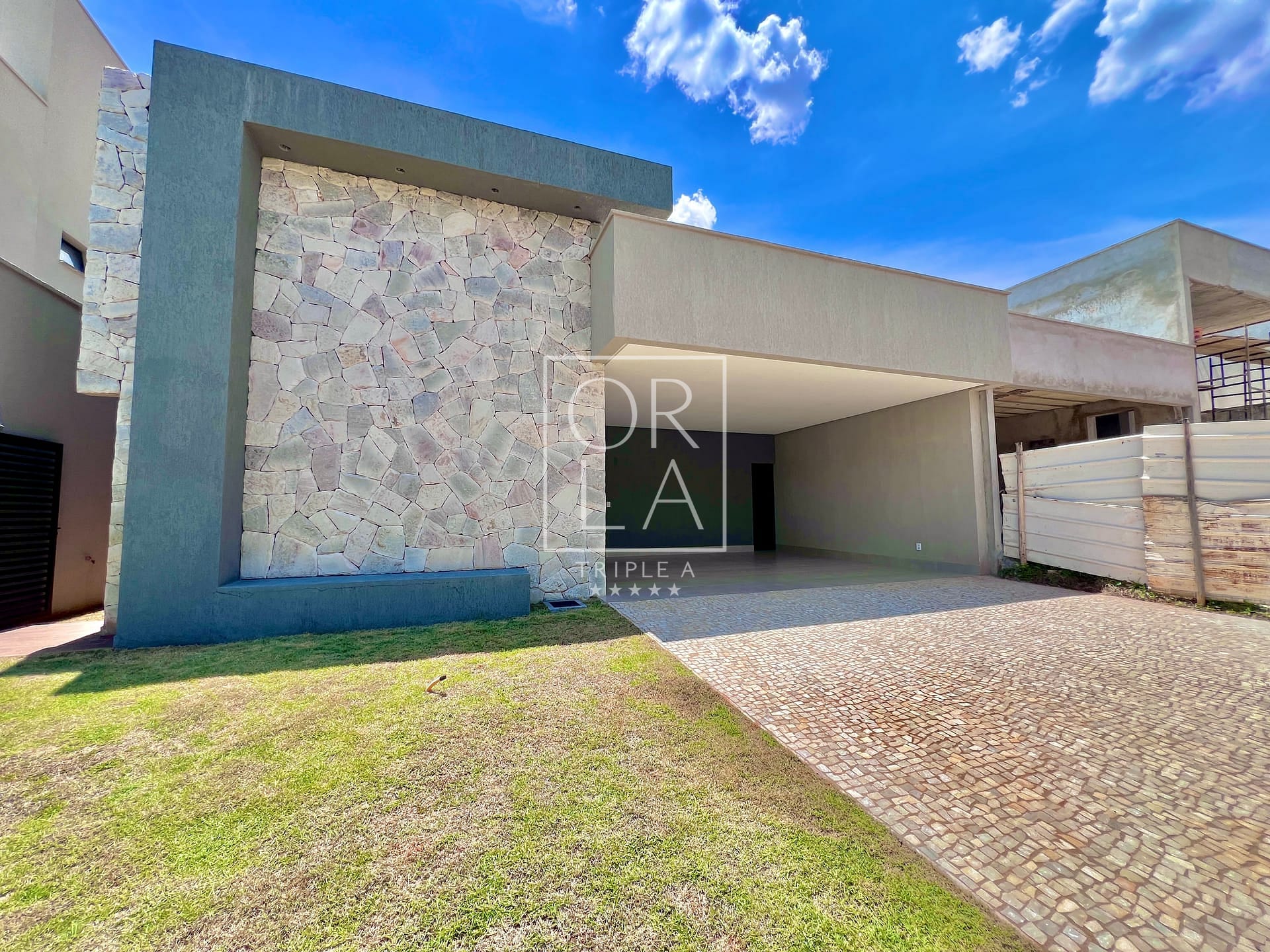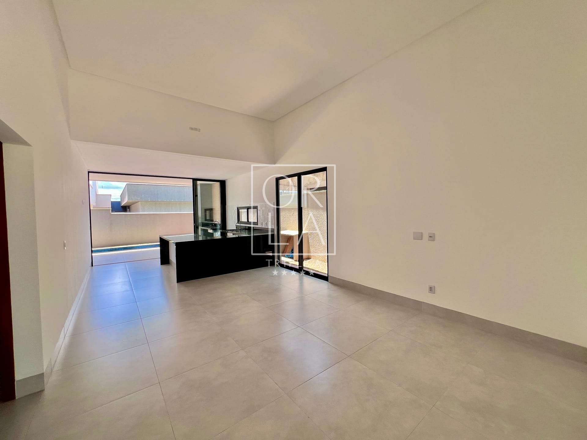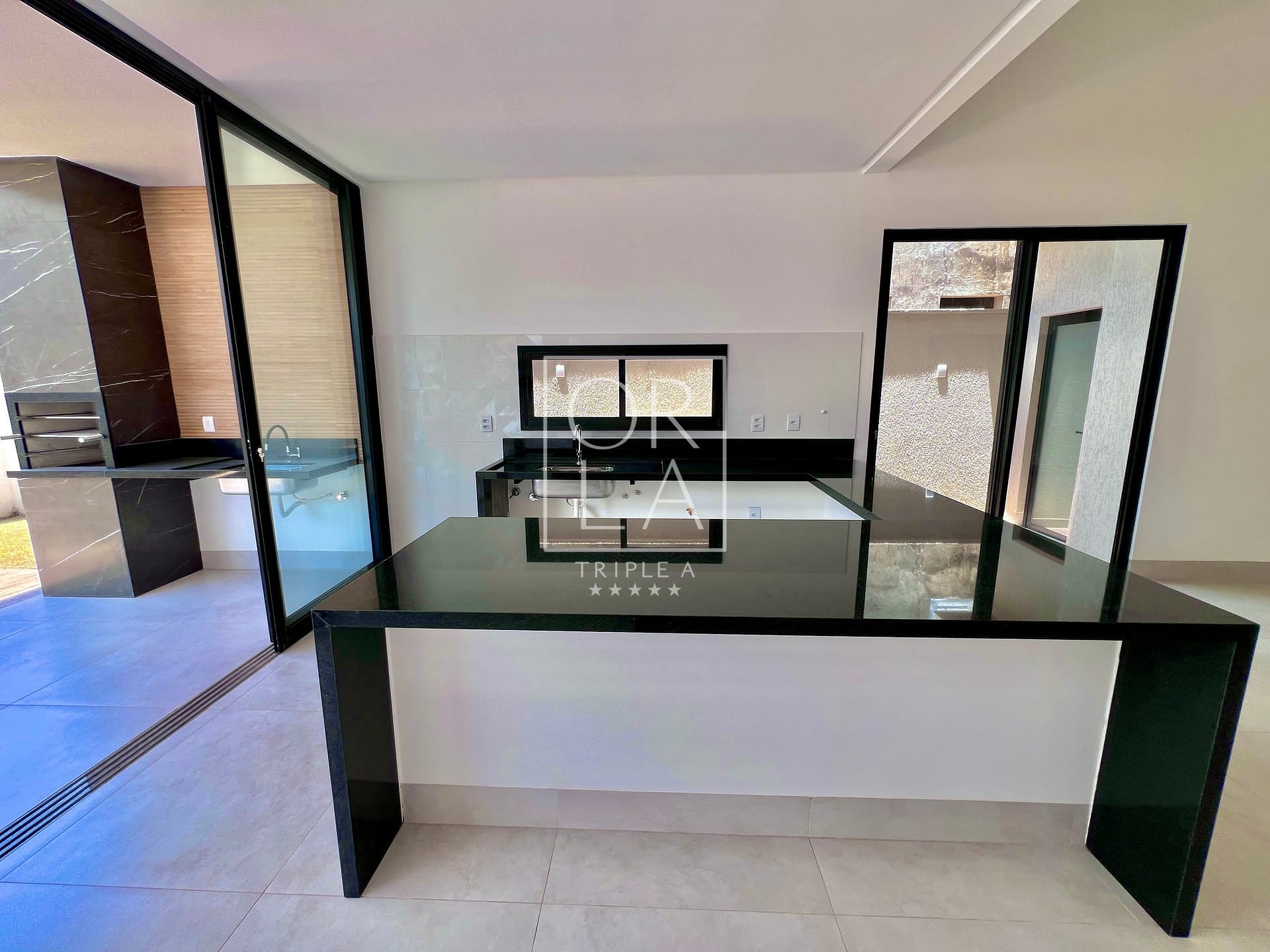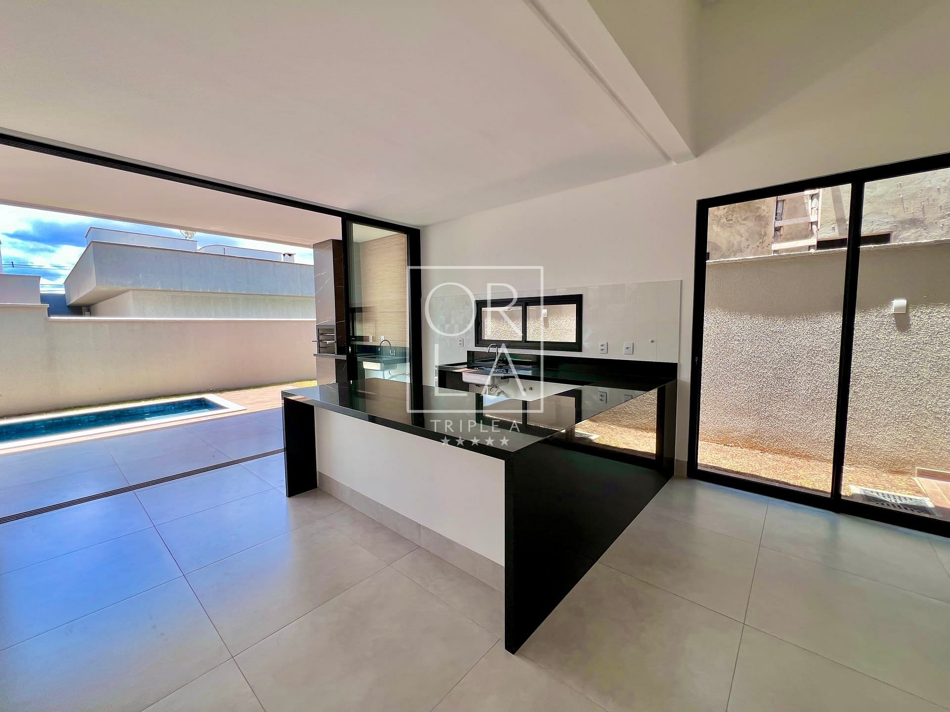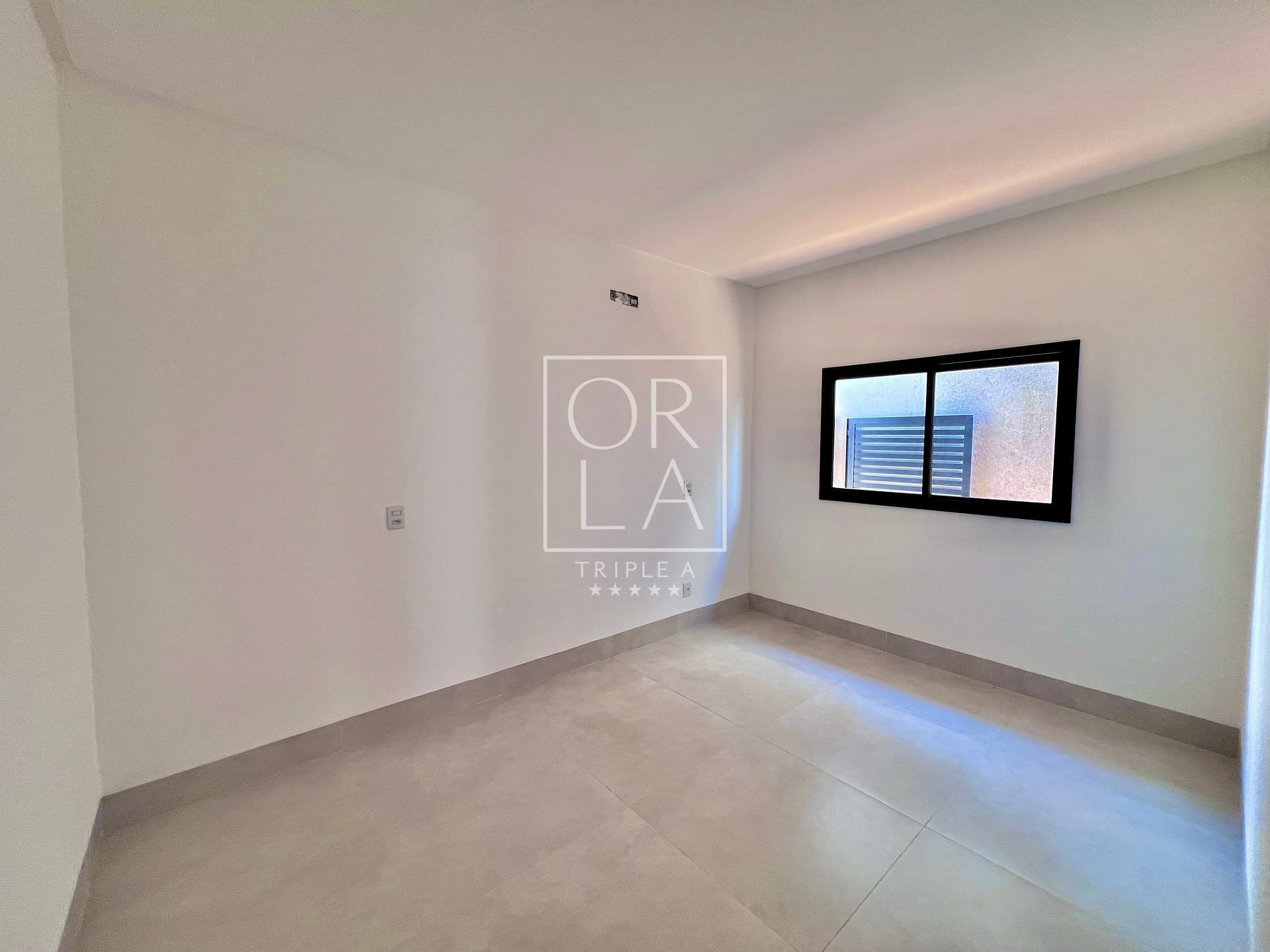 Casa térrea de 3 quartos sendo 1 suíte, 1 banheiro social, 1 lavabo, Cozinha repleta de bancadas integrada a sala, sala com pé direito duplo, área de serviços, Varanda área gourmet completa com banheiro social, piscina, churrasqueira e bancada com pia.