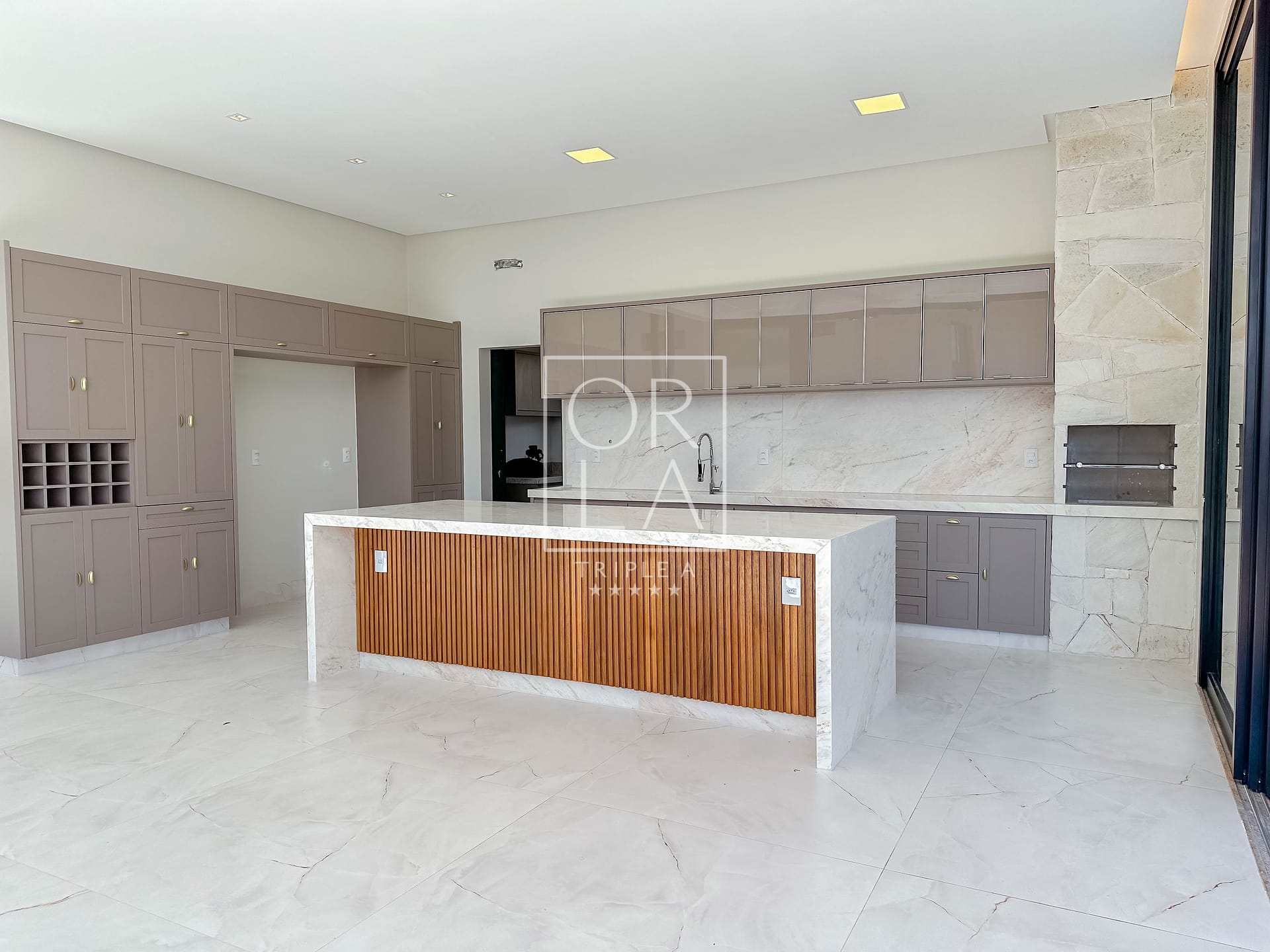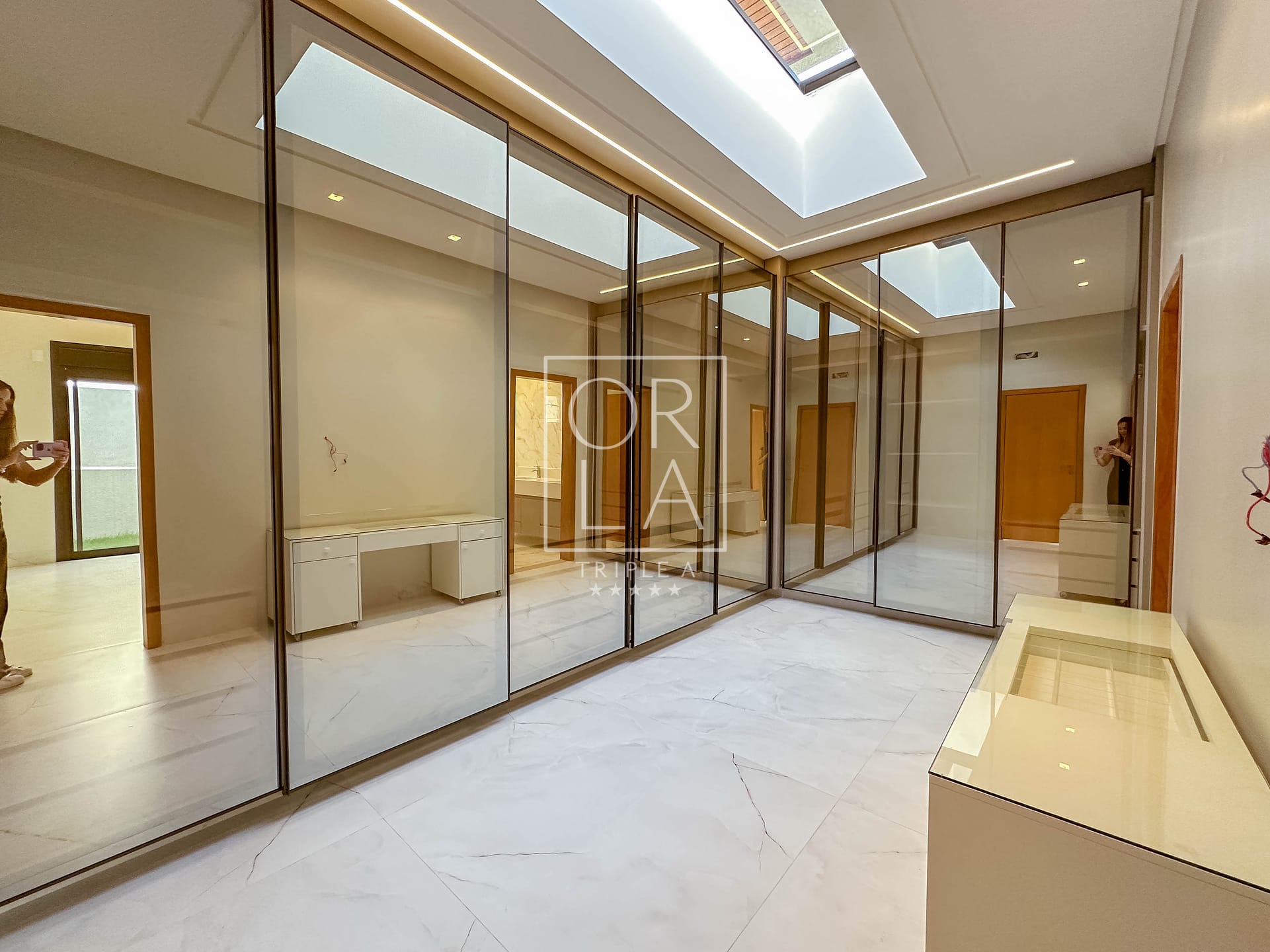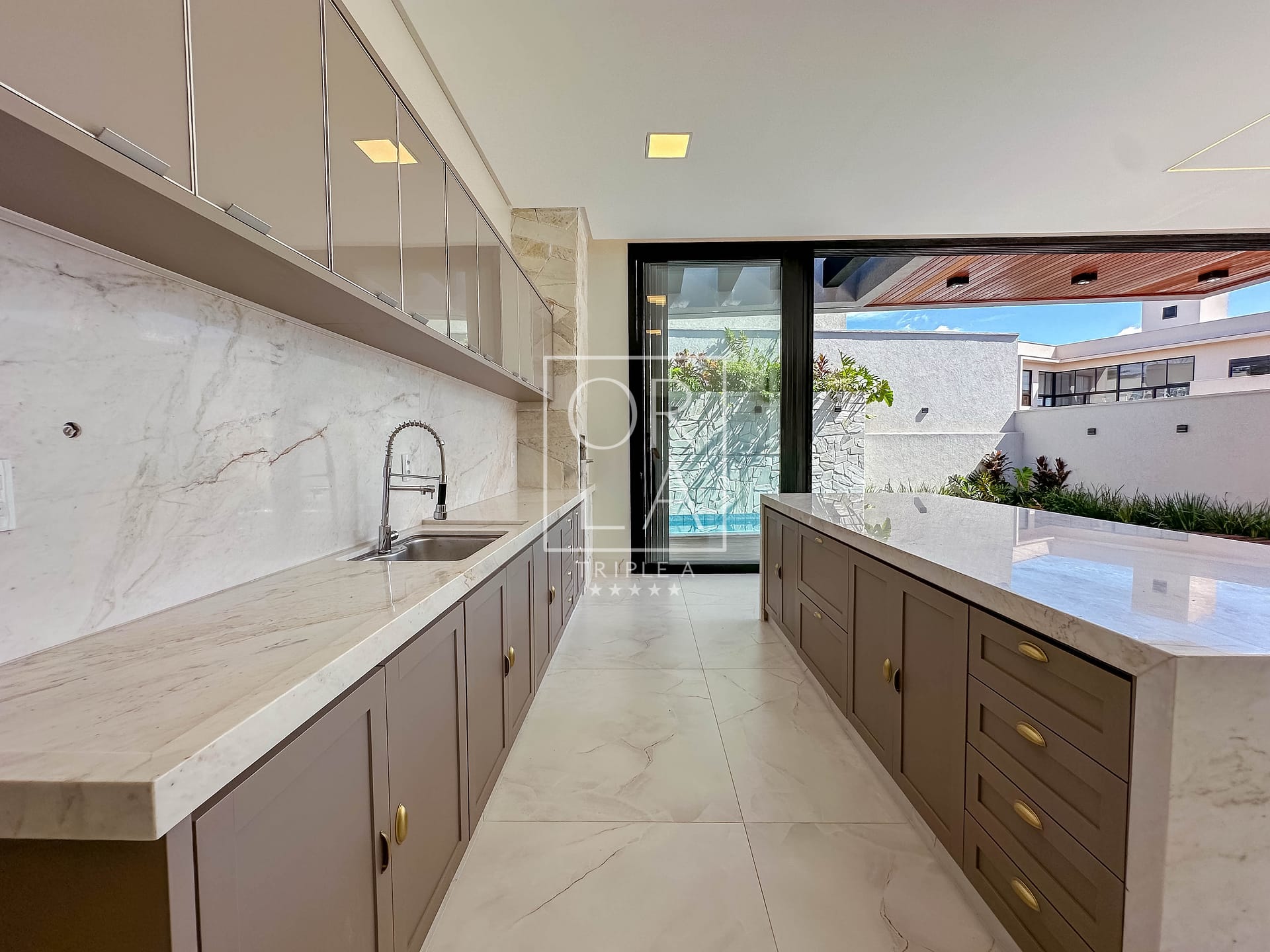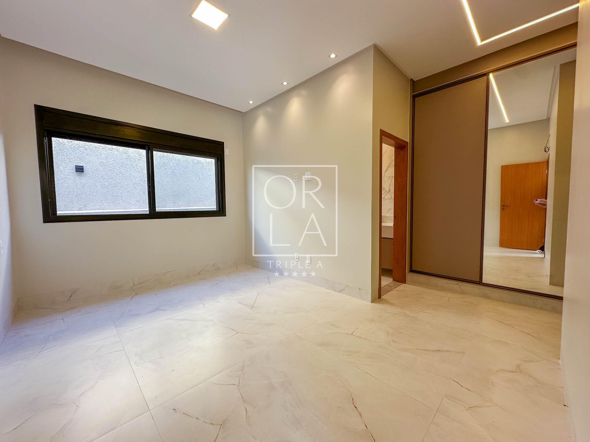 • Esquadrias automatizadas, porcelanato 1,20×1,20, pé direito duplo;