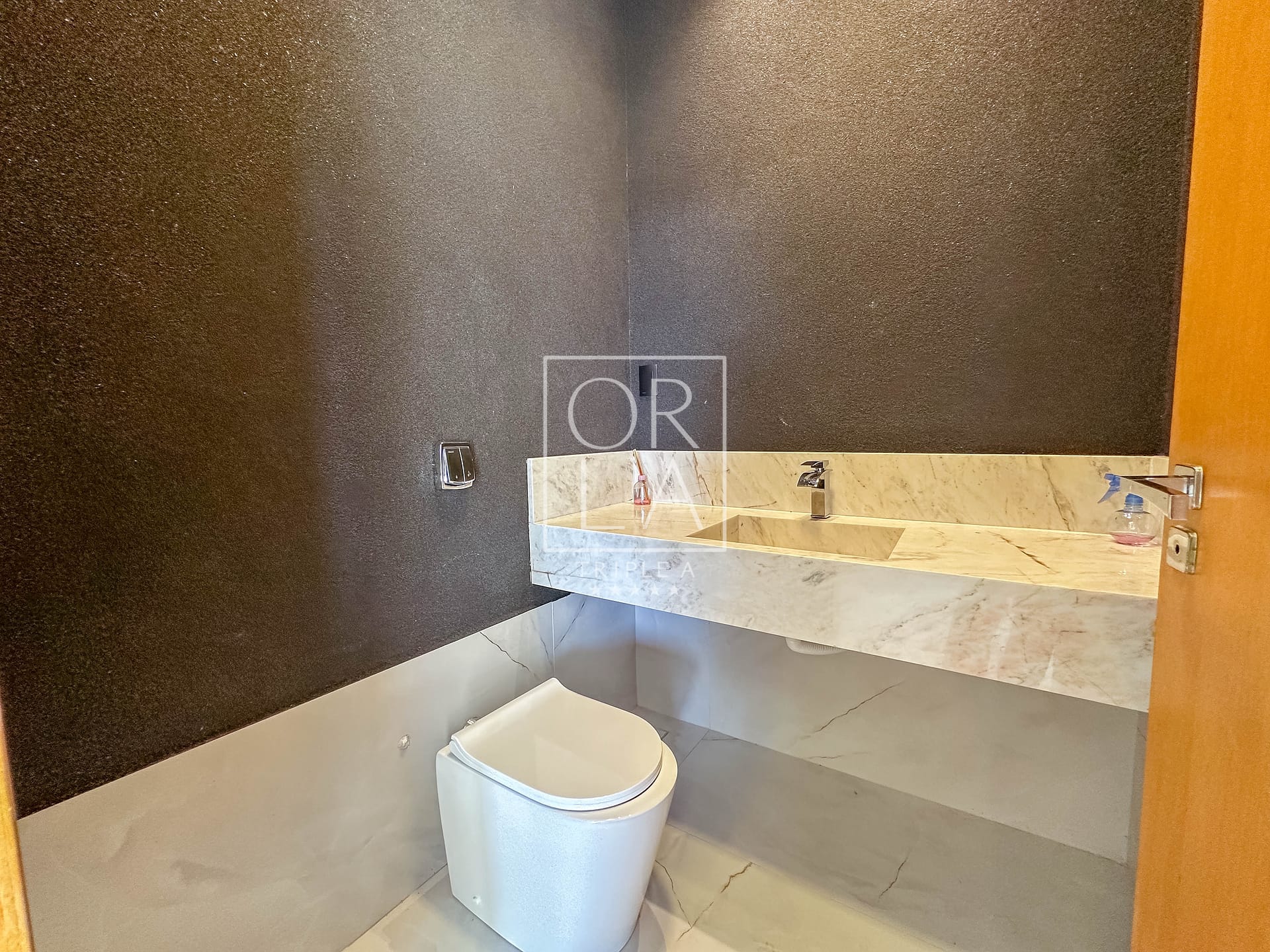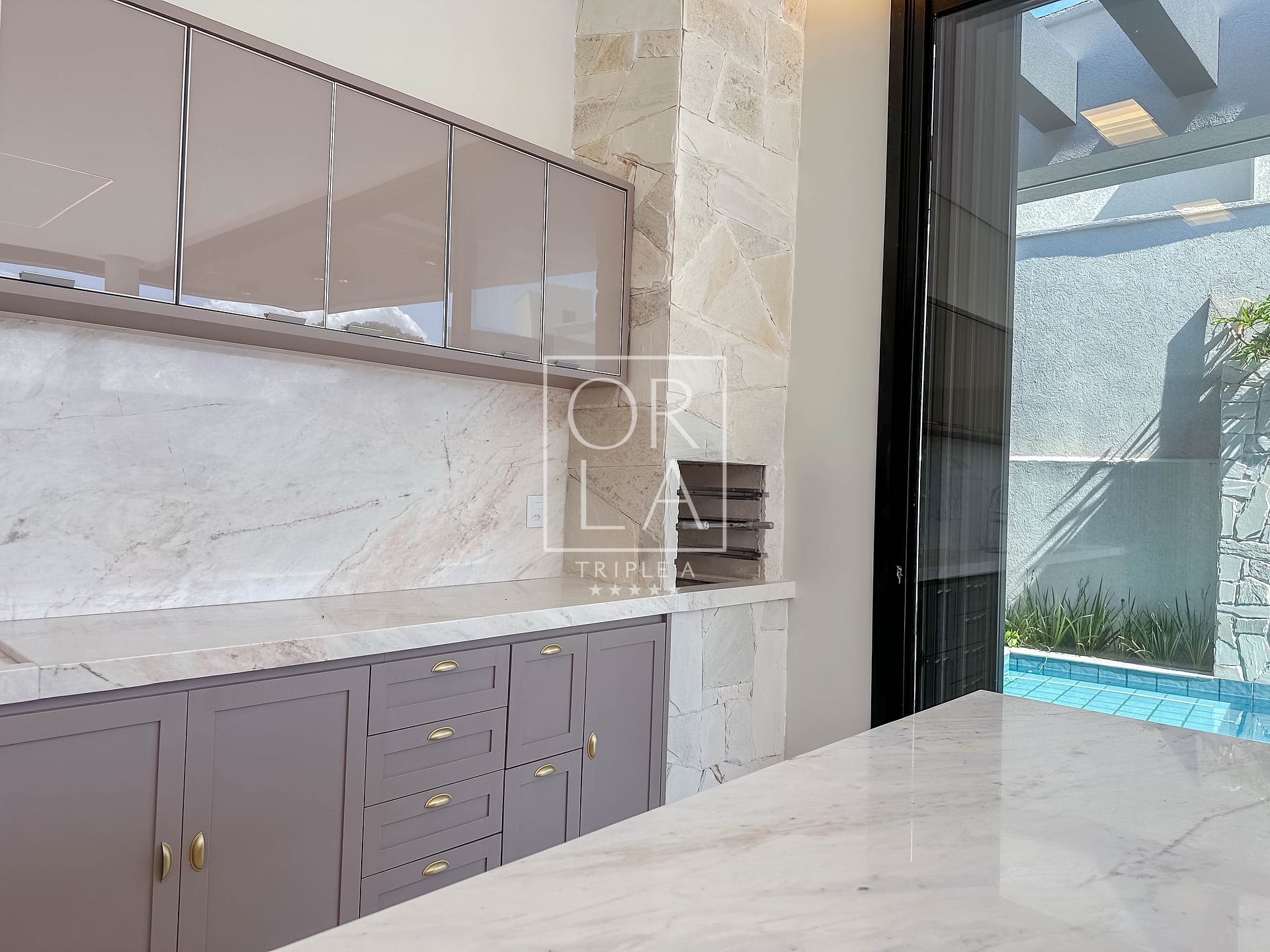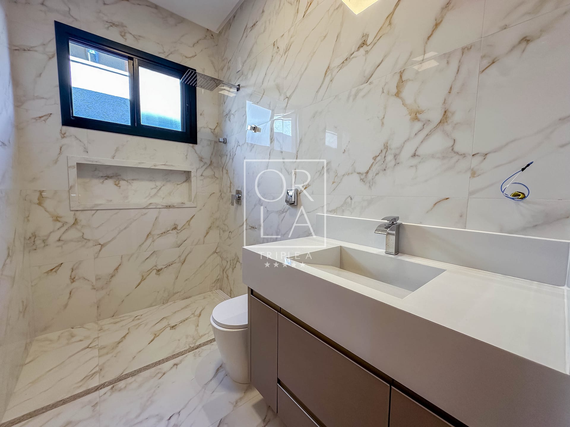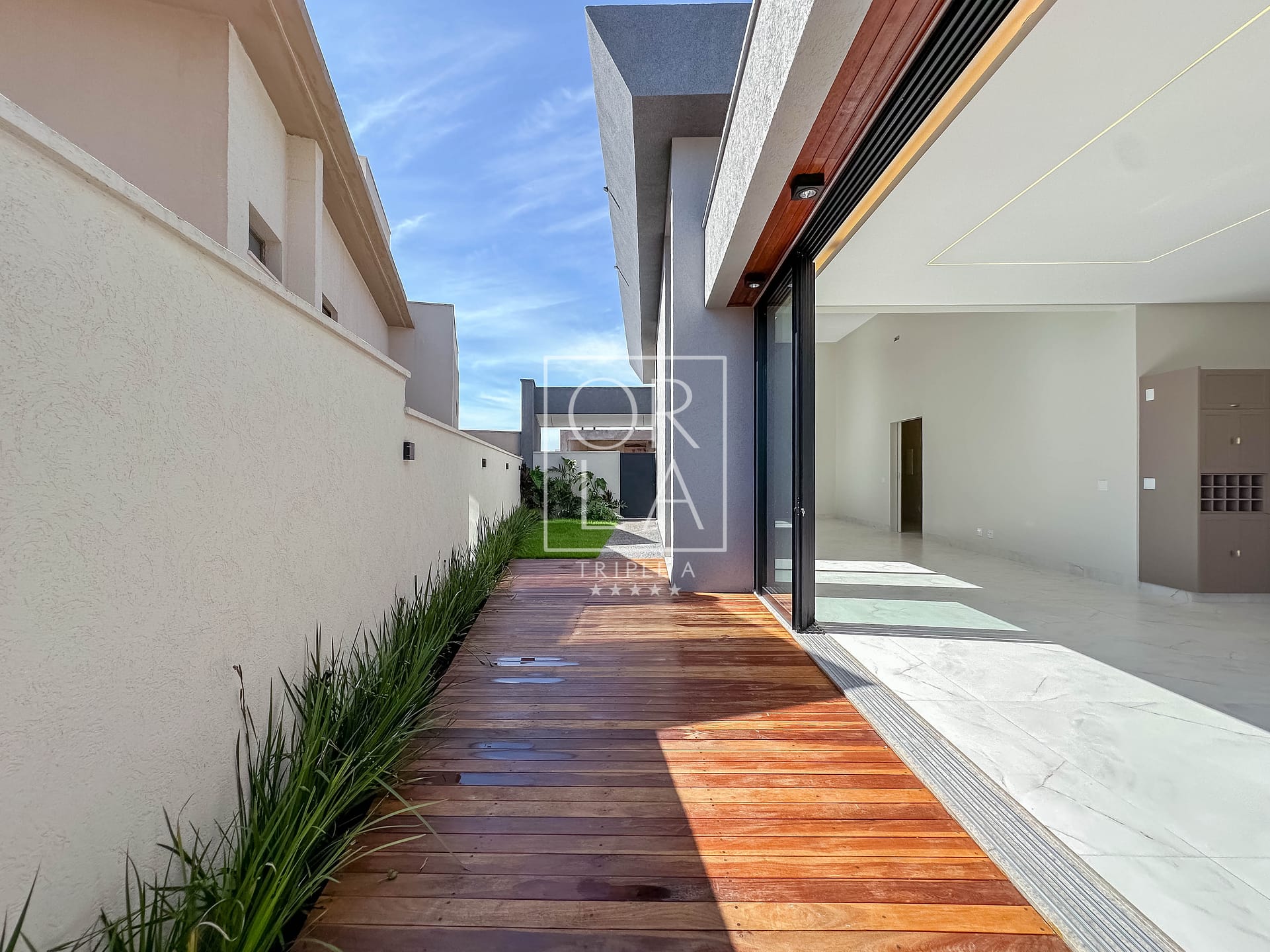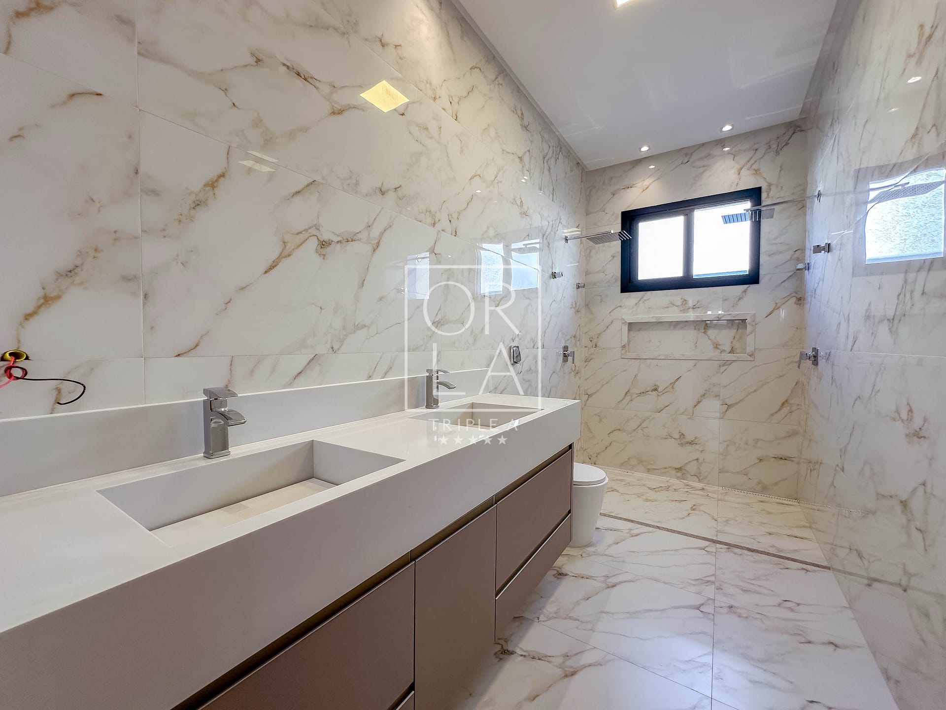 • Esquadrias automatizadas, porcelanato 1,20×1,20, pé direito duplo;