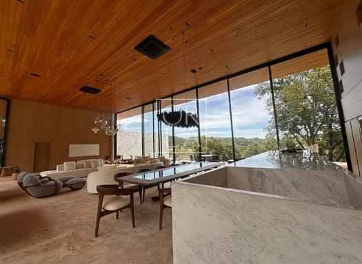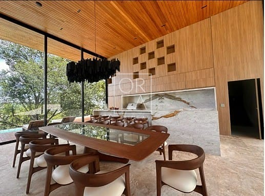 • 4 suítes plenas, incluindo máster com 60 m², closet com acabamento em couro, varanda e sala de banho com banheira de imersão e vista privativa.