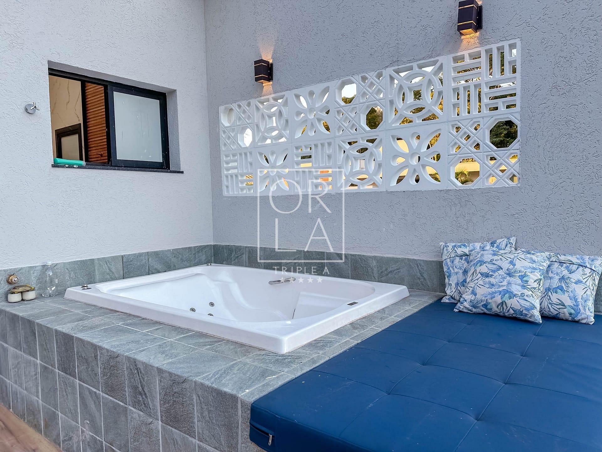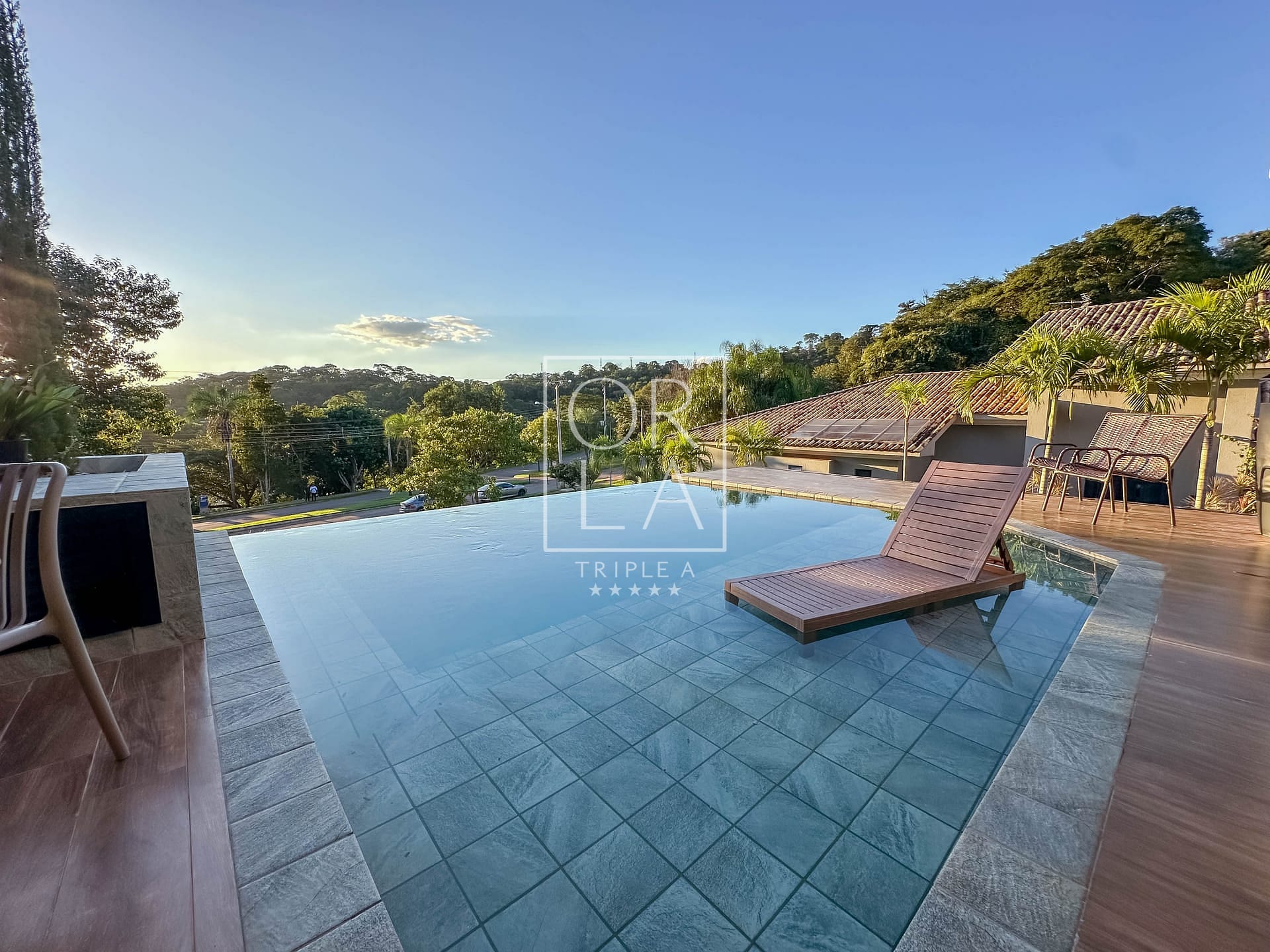 Piscina aquecida com borda infinita, jacuzzi e uma vista deslumbrante para momentos de puro relaxamento;