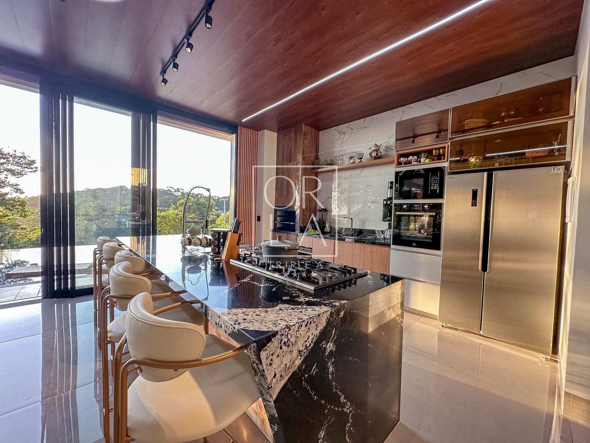 2 cozinhas sofisticadas com ilhas em pedra ônix iluminadas – um verdadeiro espetáculo de design e funcionalidade;