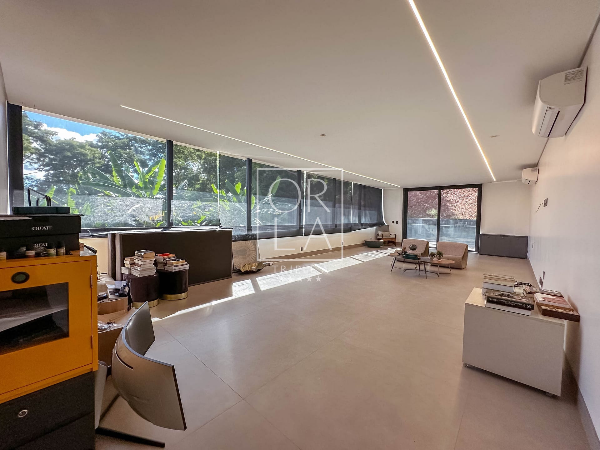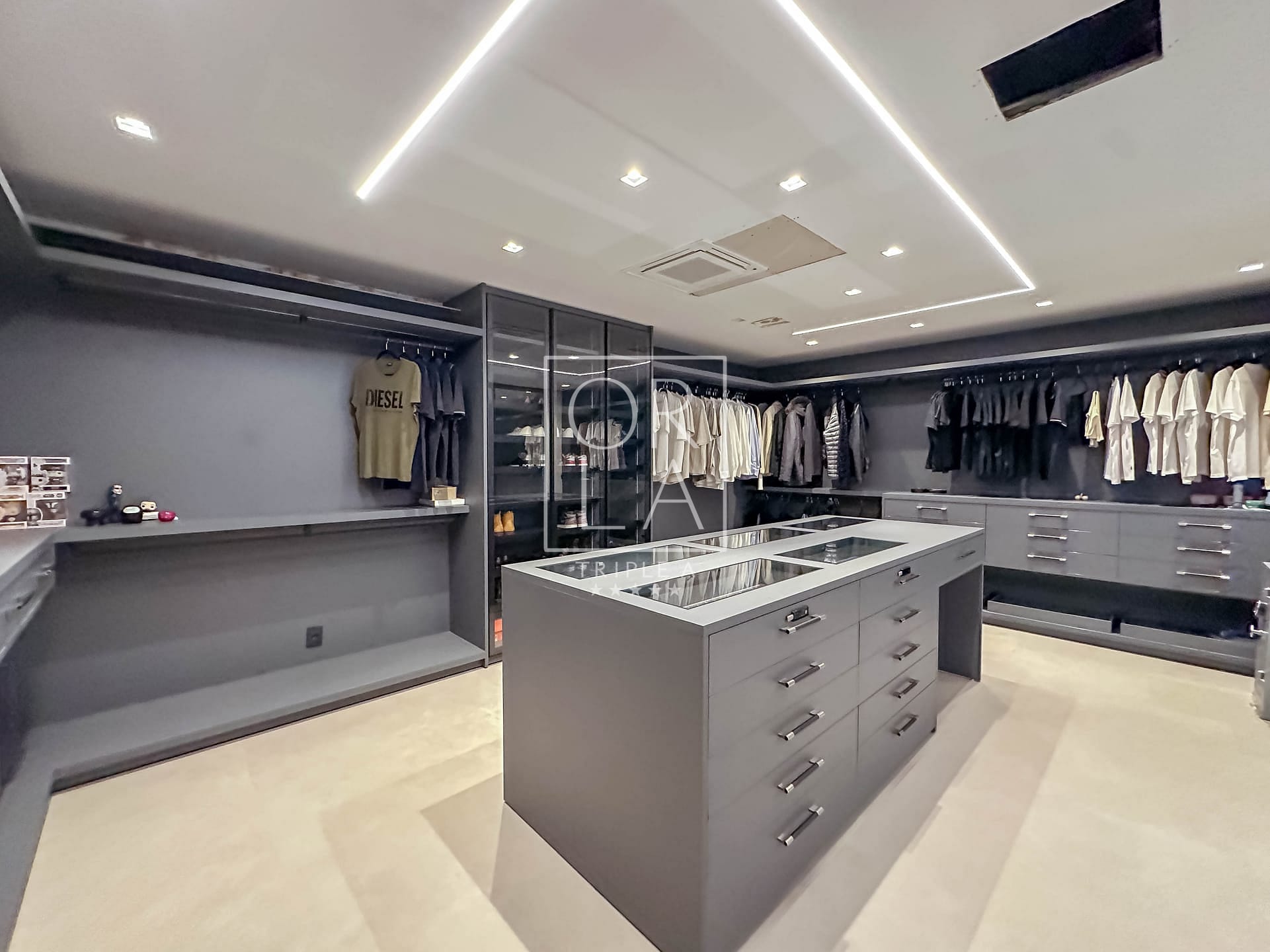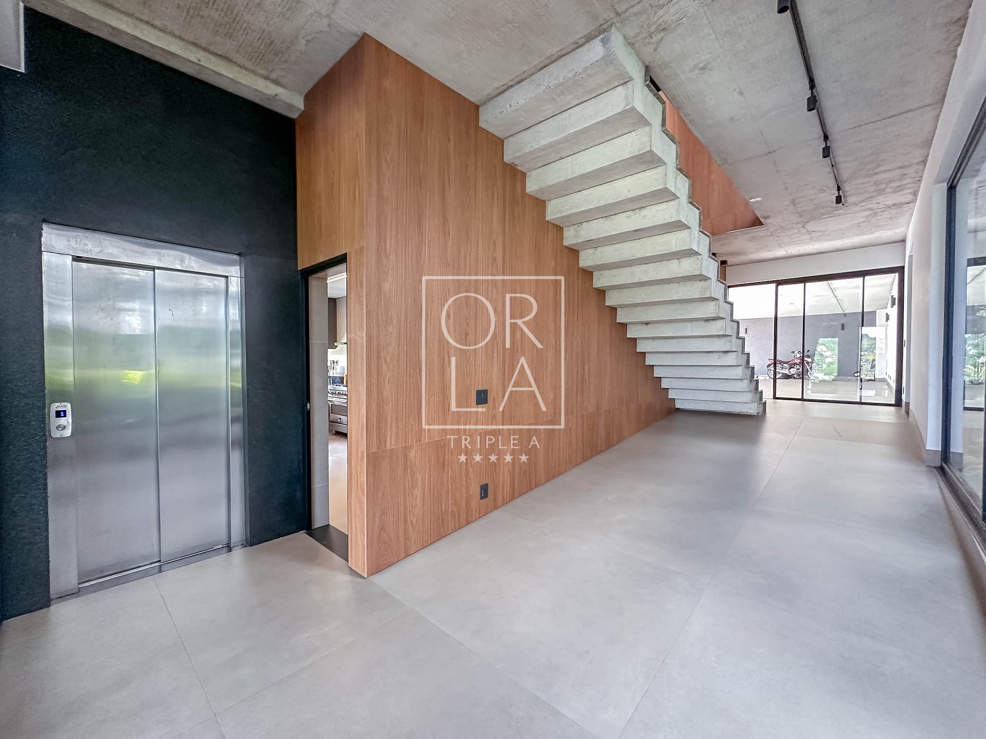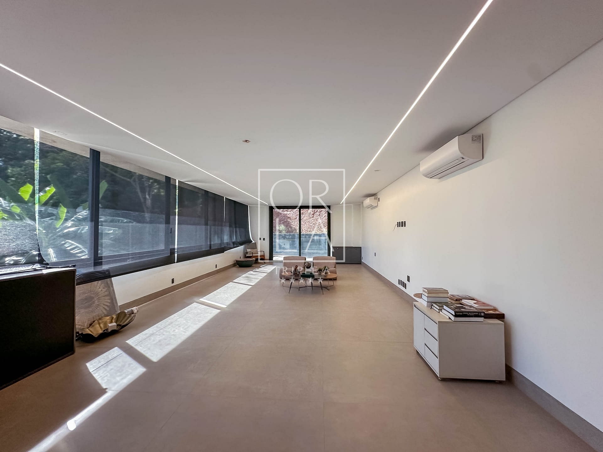 Sala de cinema em arquibancada, adega climatizada com 82 m², escritório com vista panorâmica e academia com esquadrias em todo perímetro.