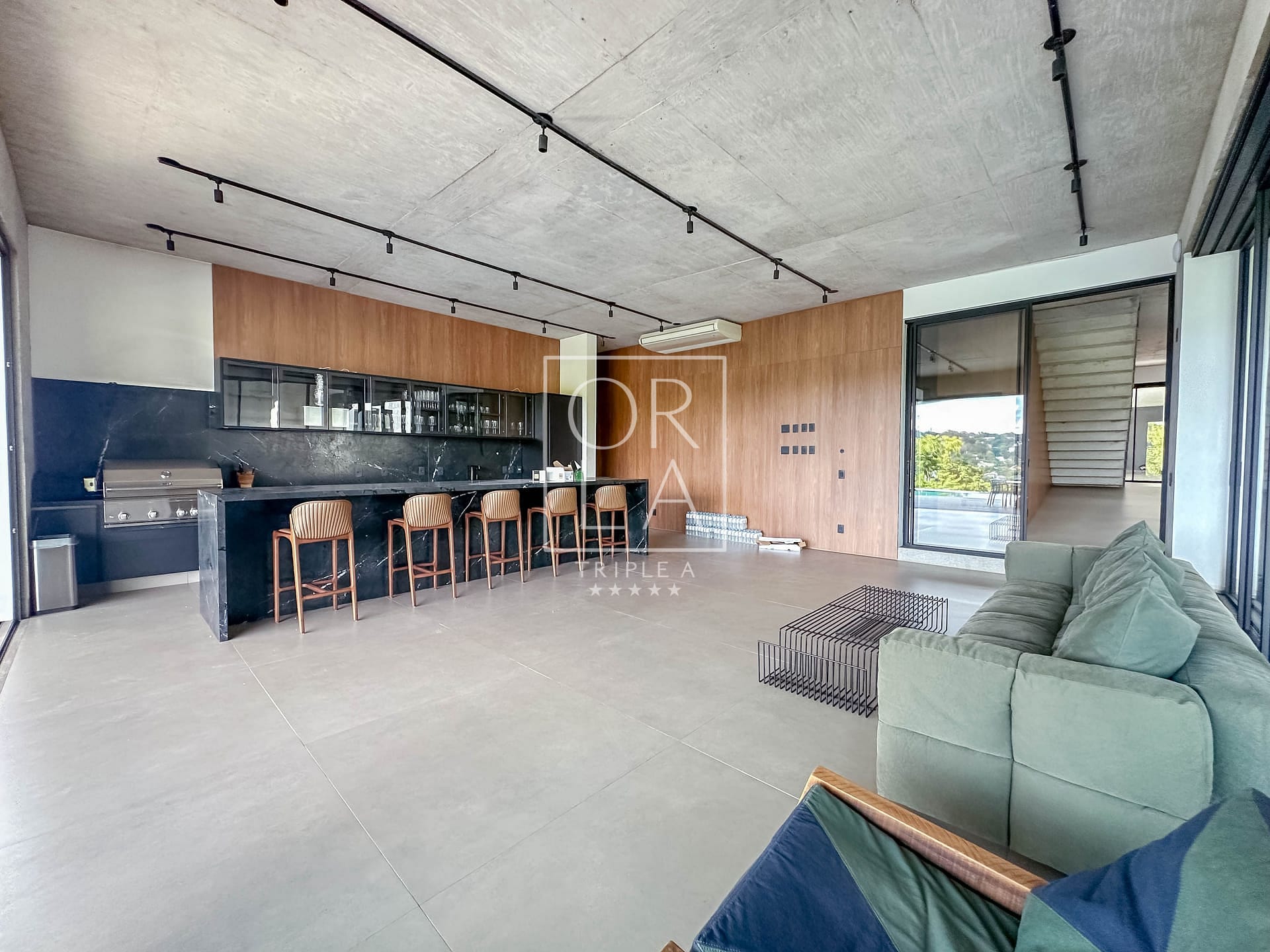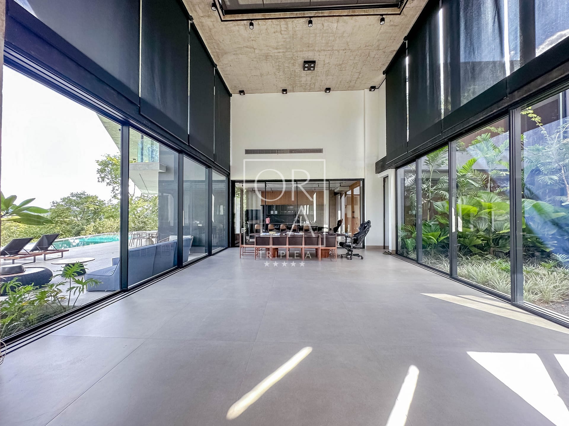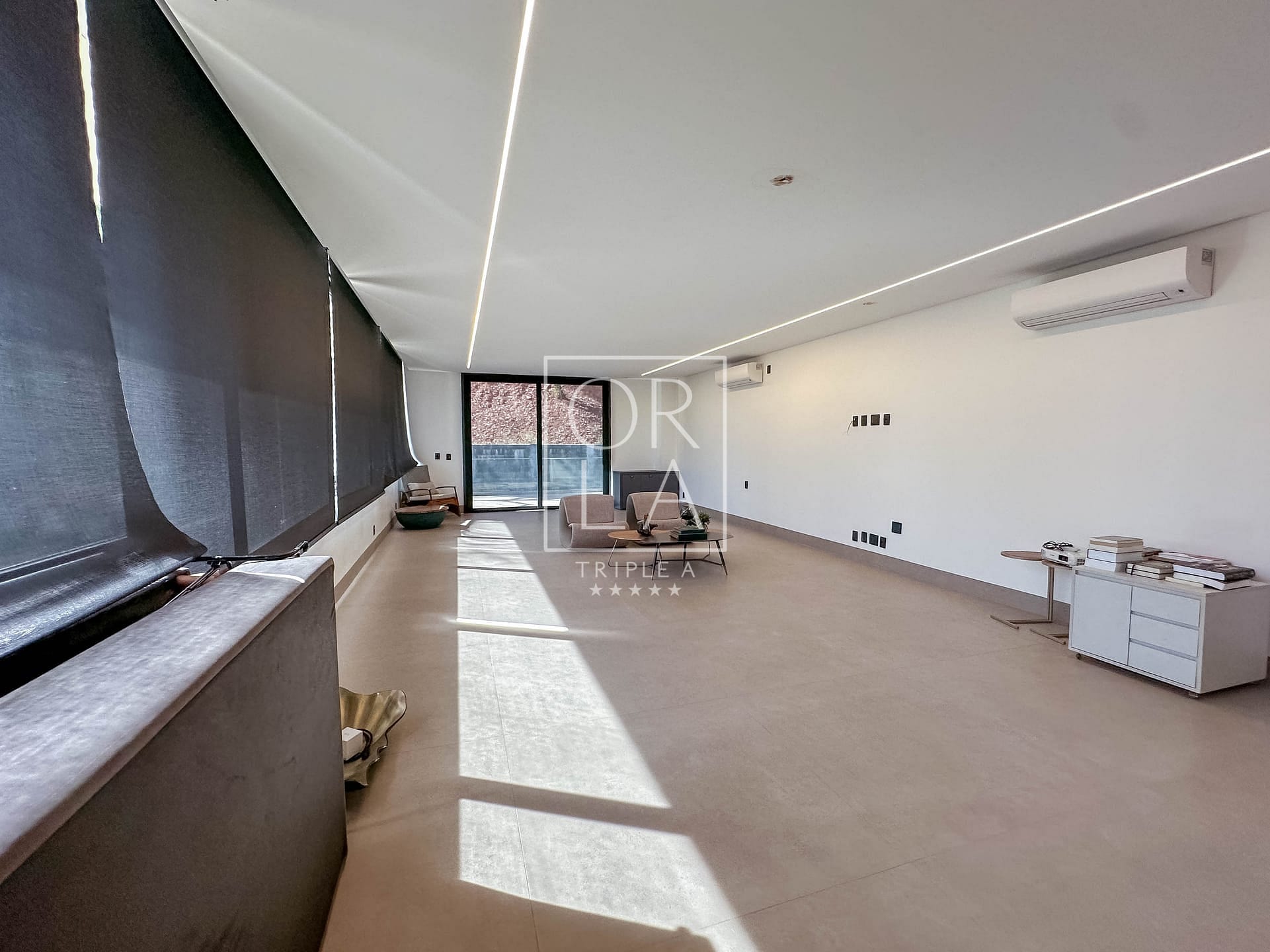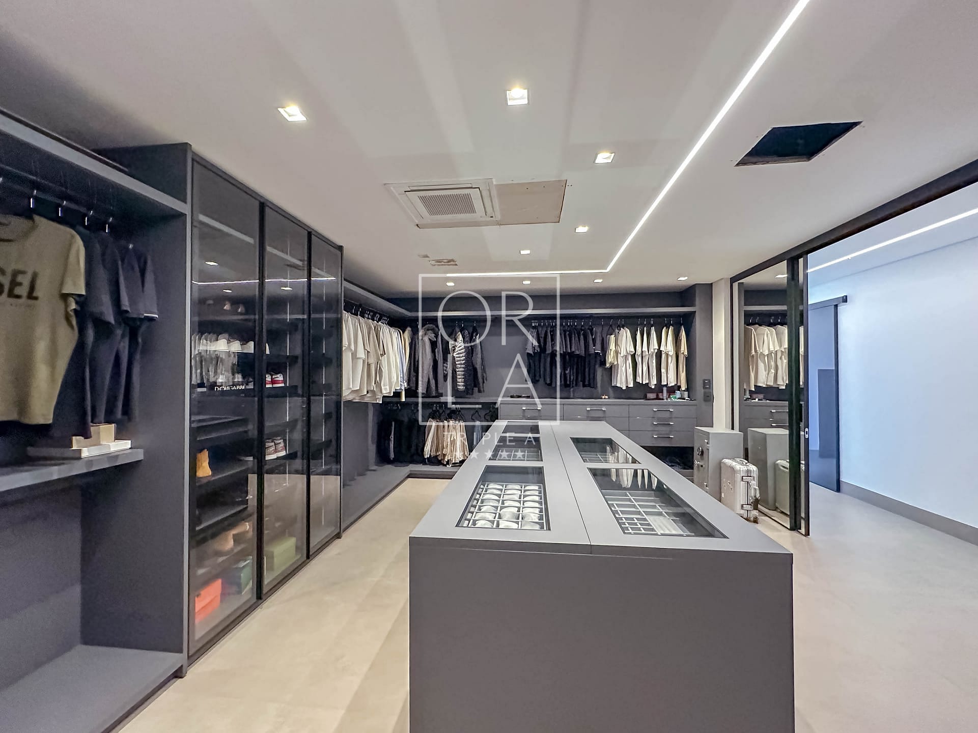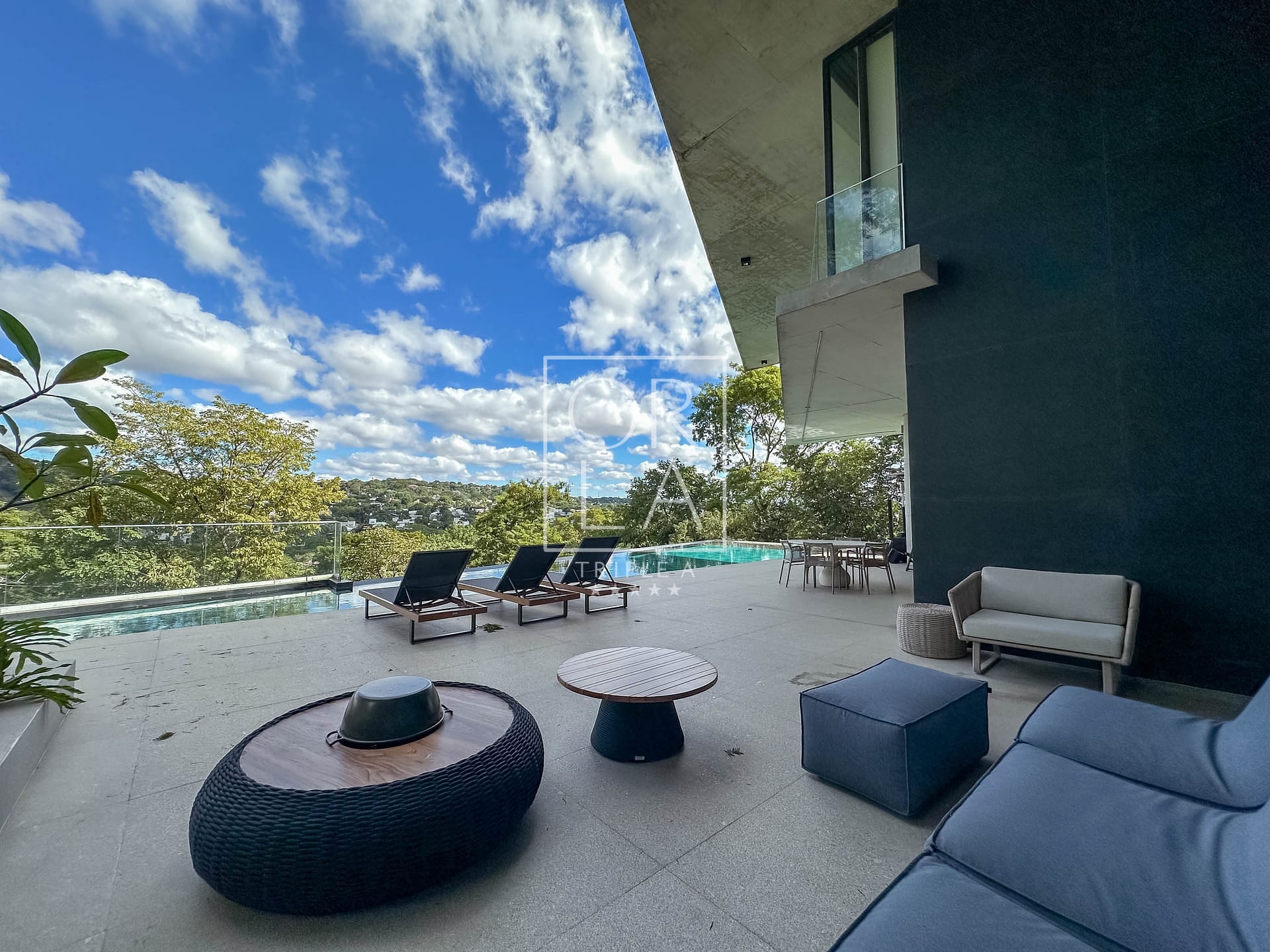 Sala de cinema em arquibancada, adega climatizada com 82 m², escritório com vista panorâmica e academia com esquadrias em todo perímetro.