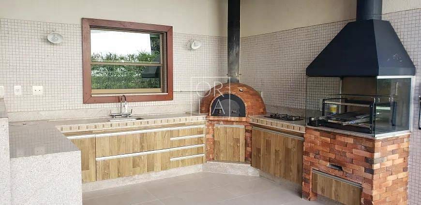 Pavimento térreo; Hall de entrada com porta em madeira, sala para 03 ambientes, suíte para hospede / escritório com armário, cozinha com armários planejados, quarto e banheiro de serviço, área de serviço com armários, varanda gourmet com churrasqueira e forno para pizza, piscina aquecida, garagem coberta para 3 carros, quintal gramado com irrigação automatizada, paisagismo, cerca viva, poço artesiano e sistema elétrico fotovoltaica.