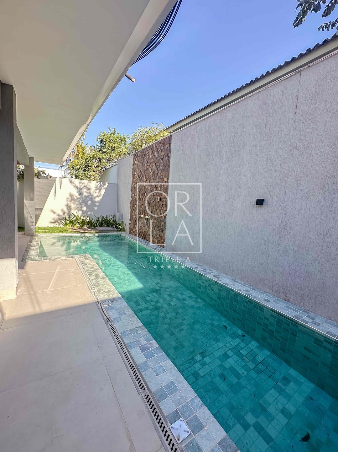 ▪️ Piscina aquecida, iluminada, com cascata e revestida em pastilhas