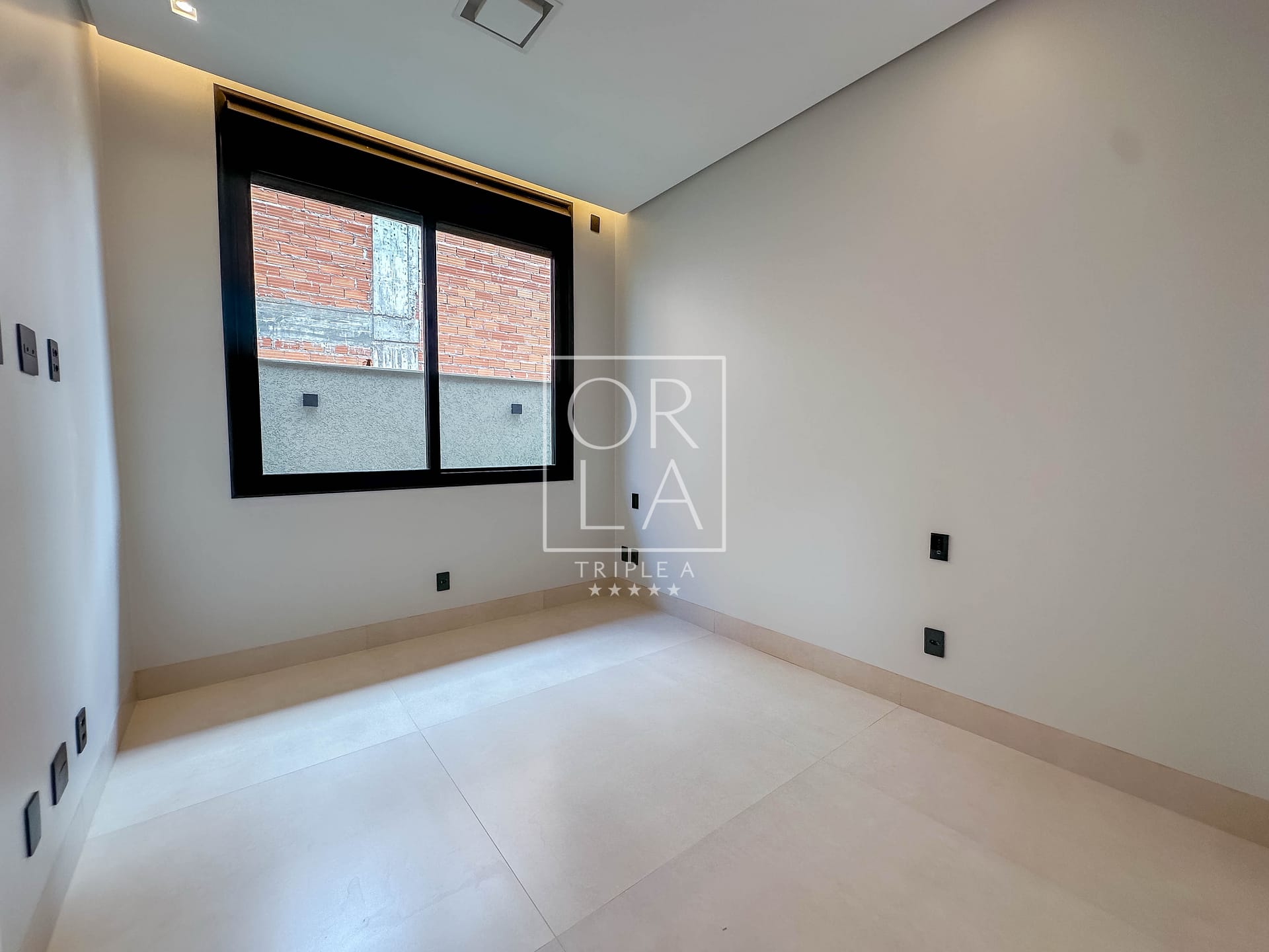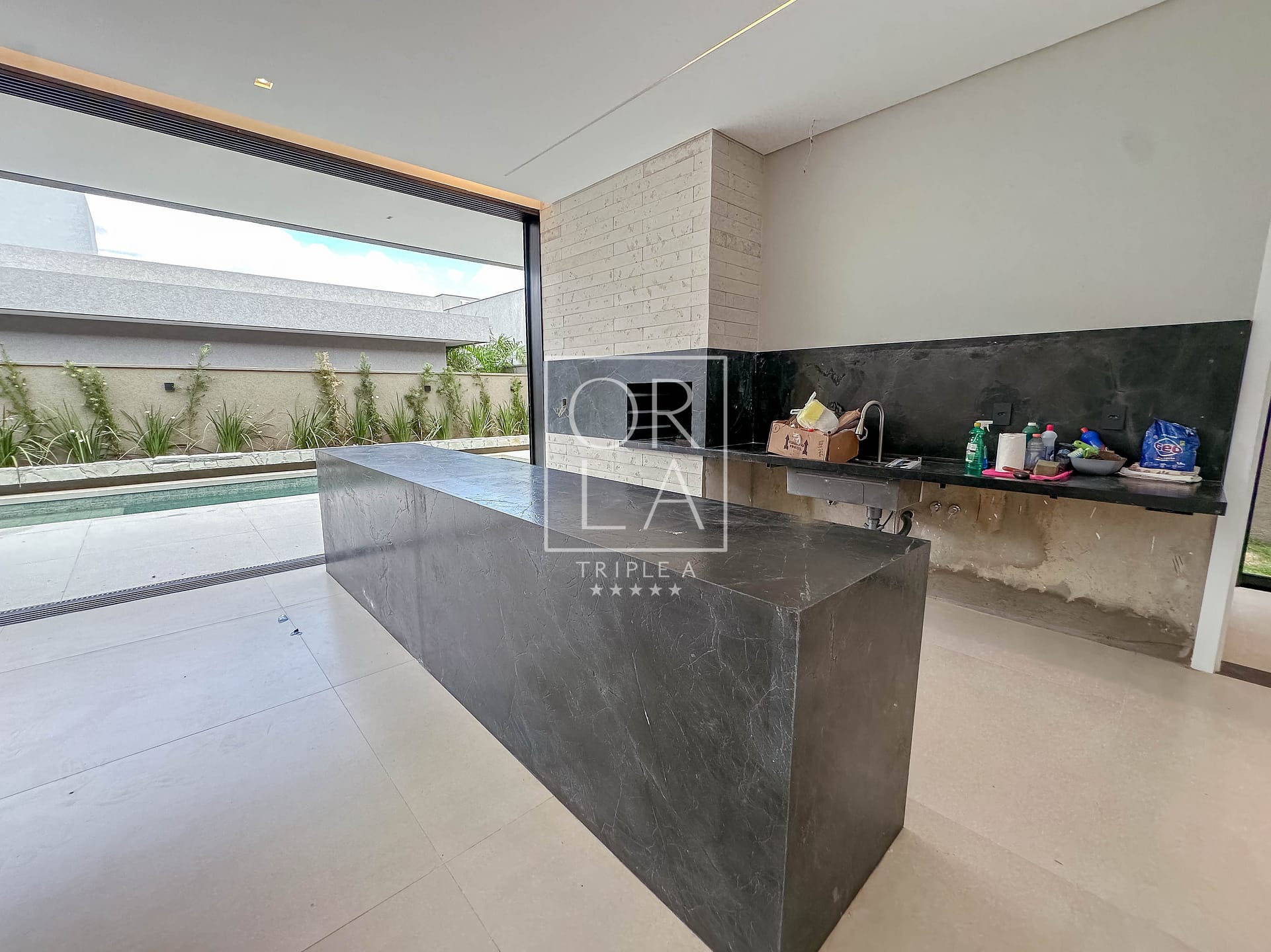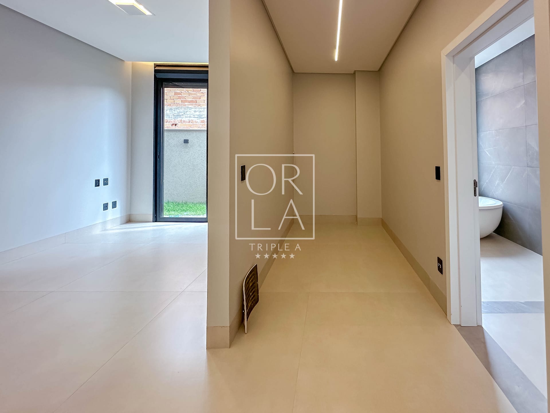 3 suítes plenas (master com closet), office, pé-direito alto e uma integração elegante entre living, jantar e área gourmet com churrasqueira.