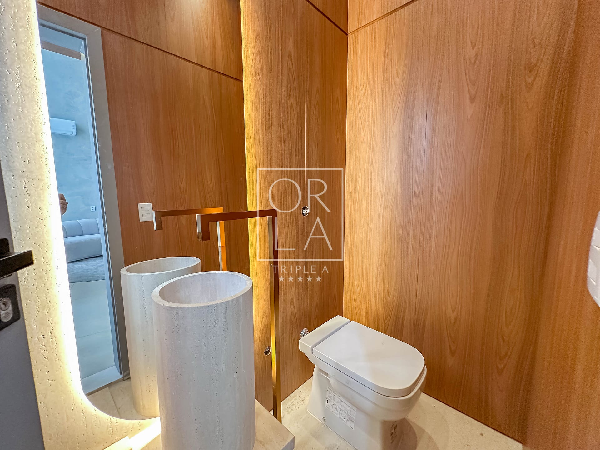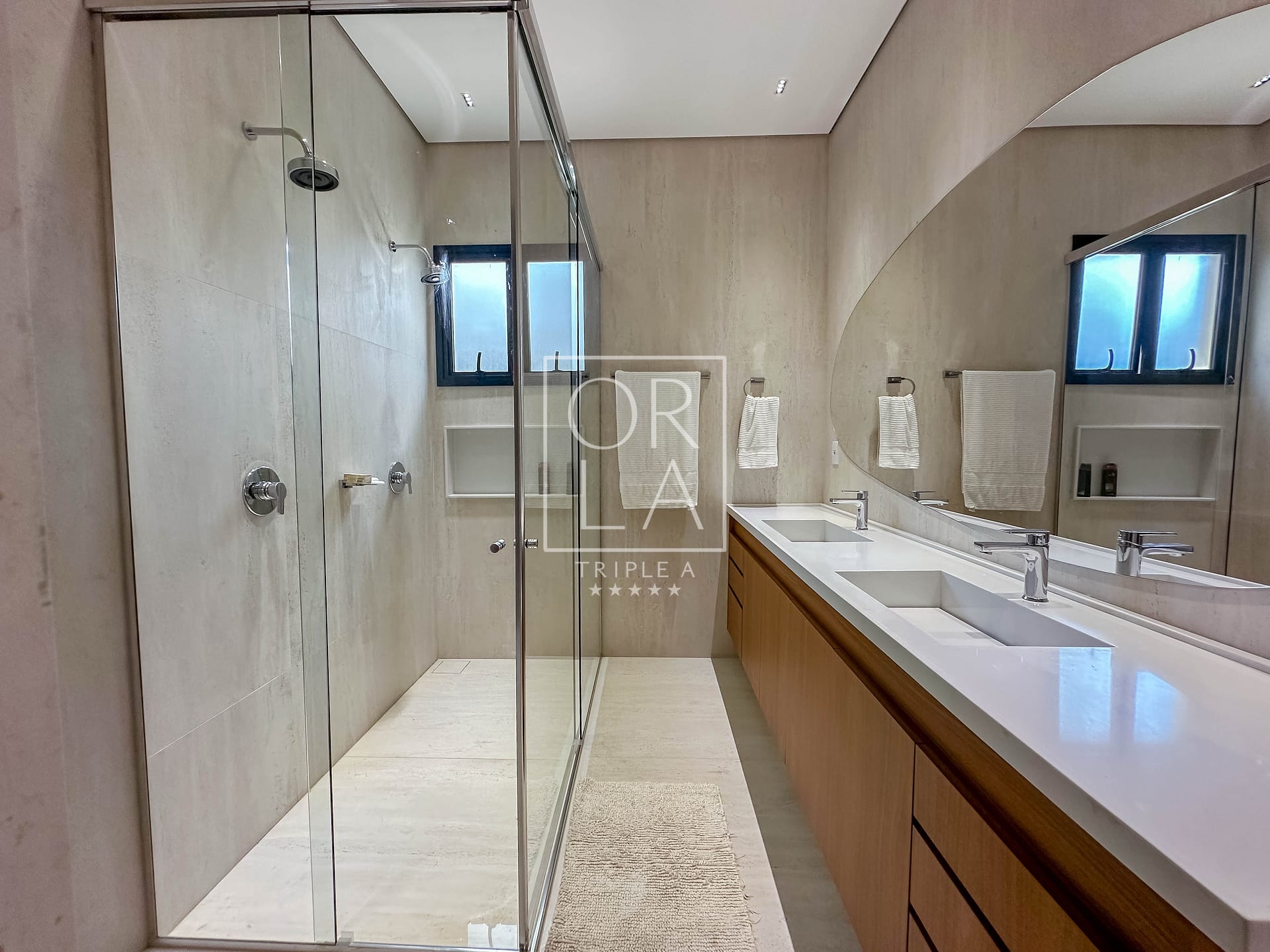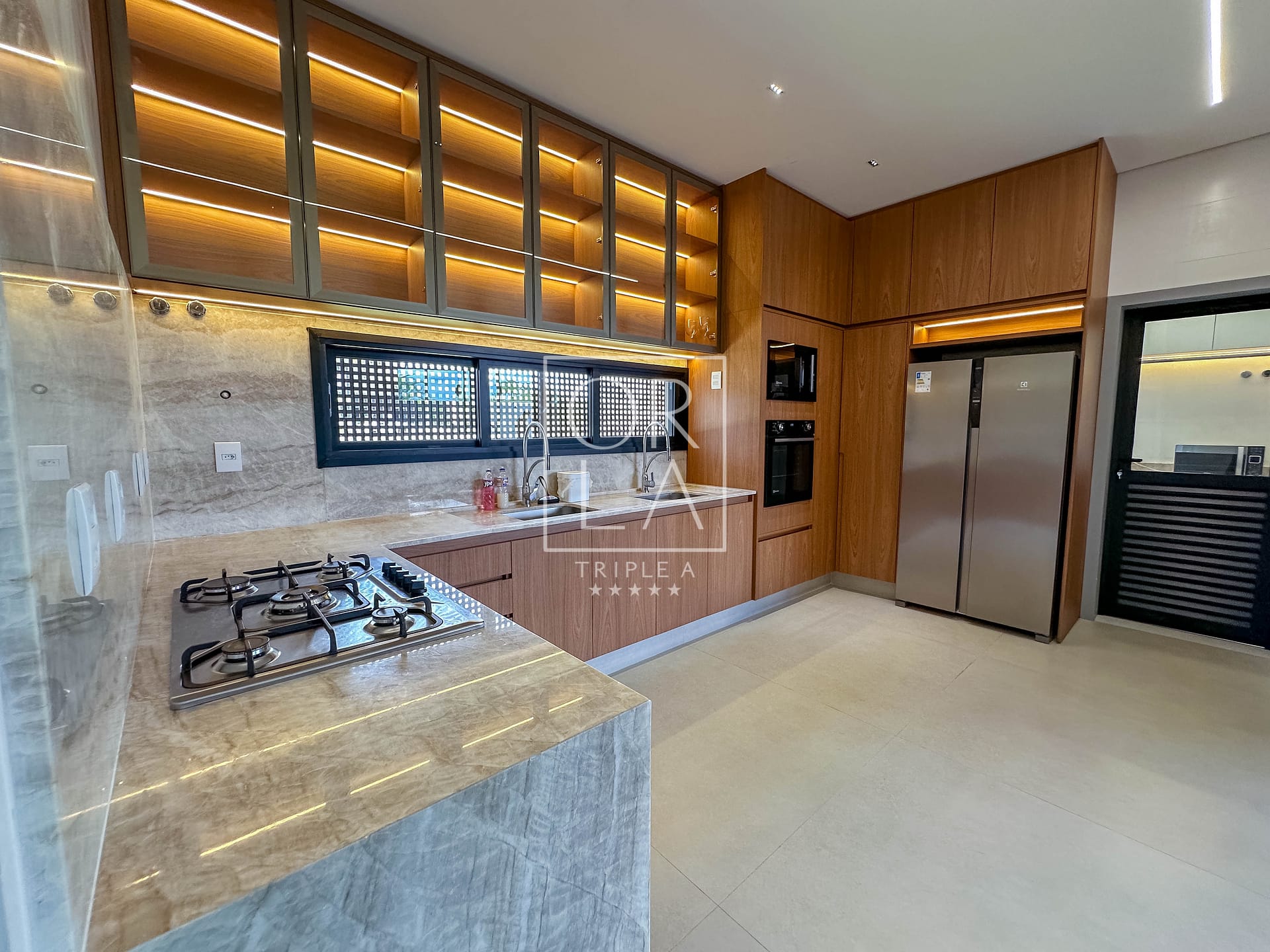 A marcenaria é de alto padrão, com mobiliário de muito bom gosto, reforçando a personalidade moderna e elegante da casa. Possui aquecimento nas torneiras e chuveiros, climatização completa e um projeto luminotécnico impecável.