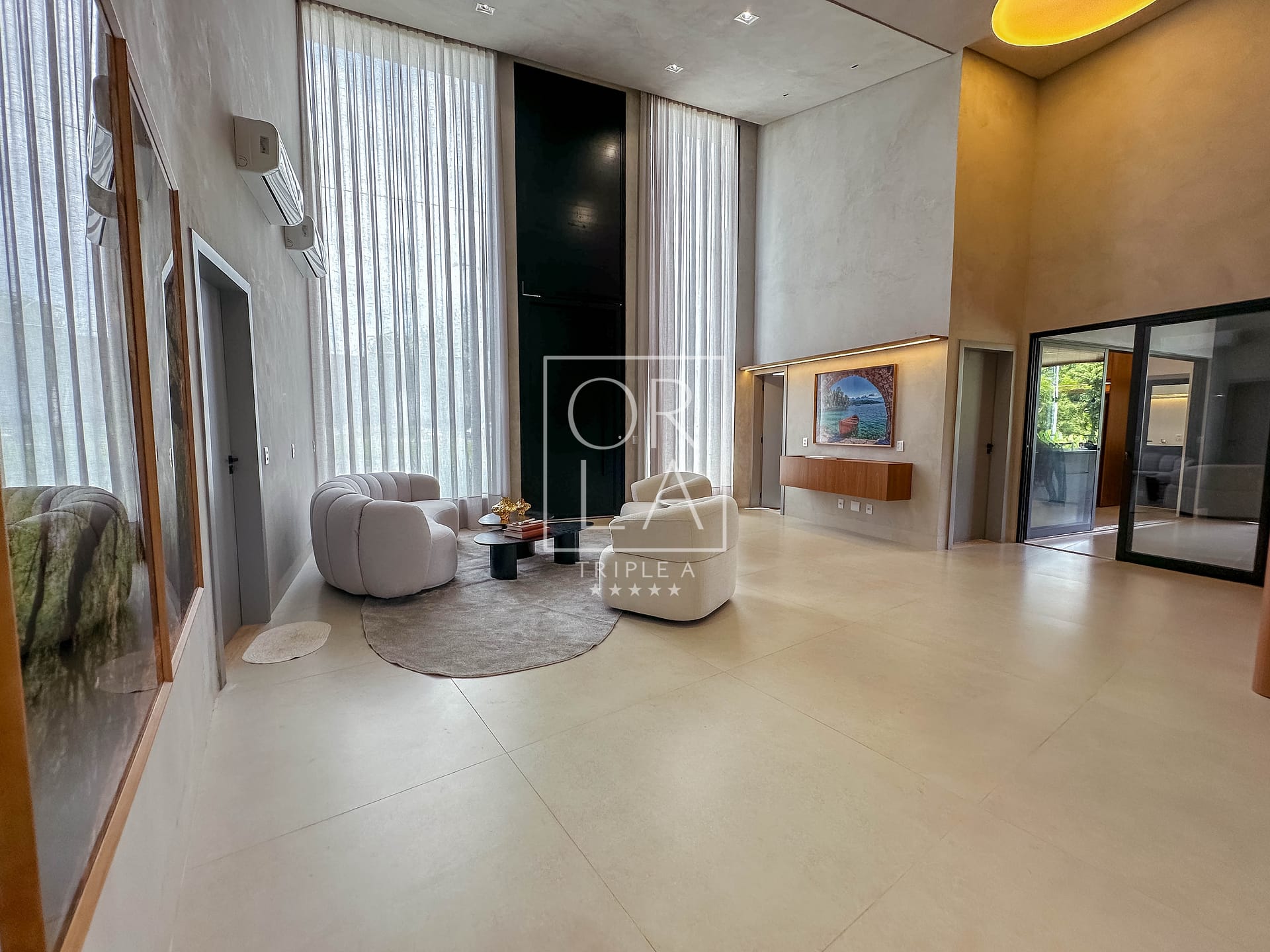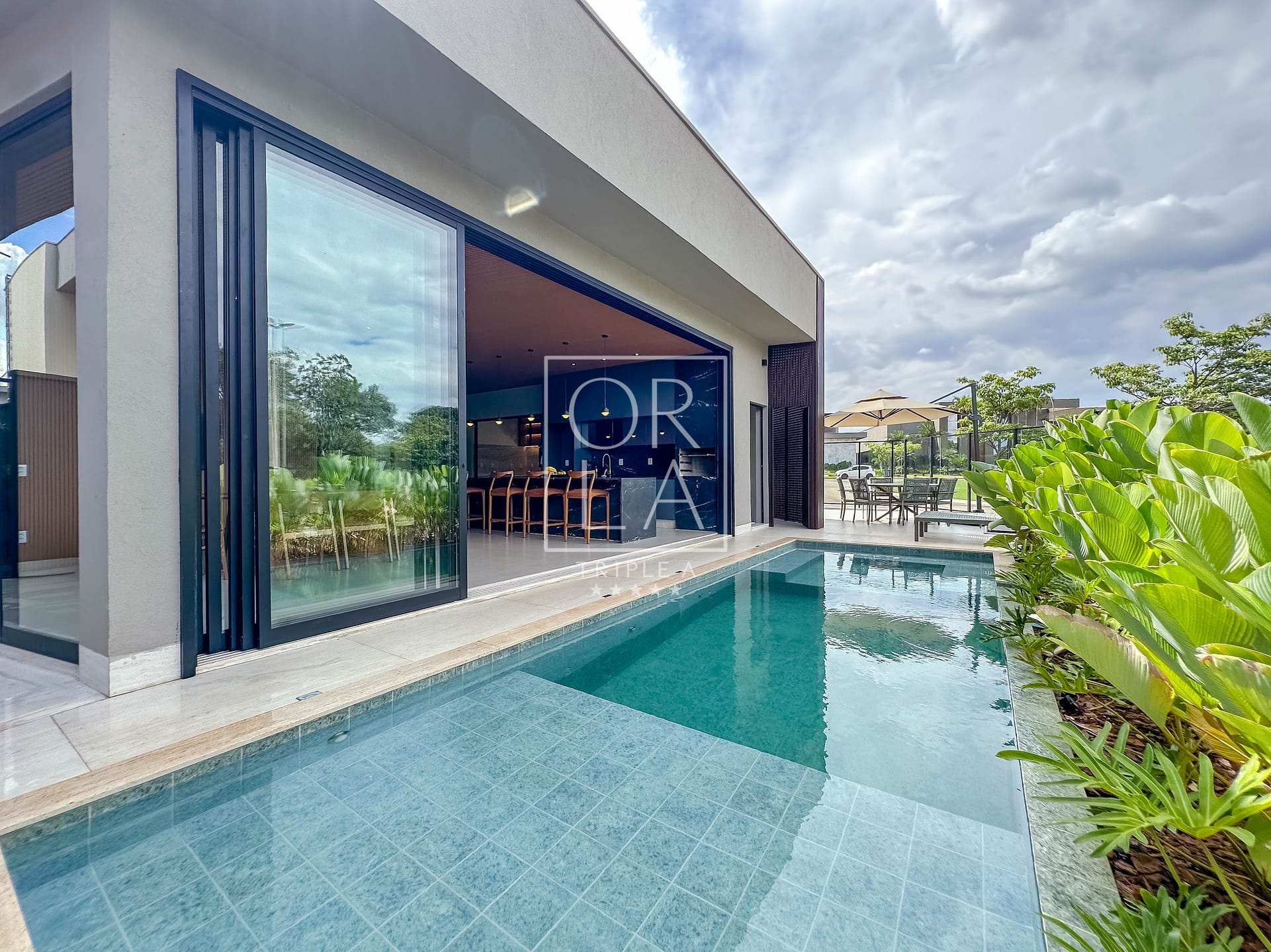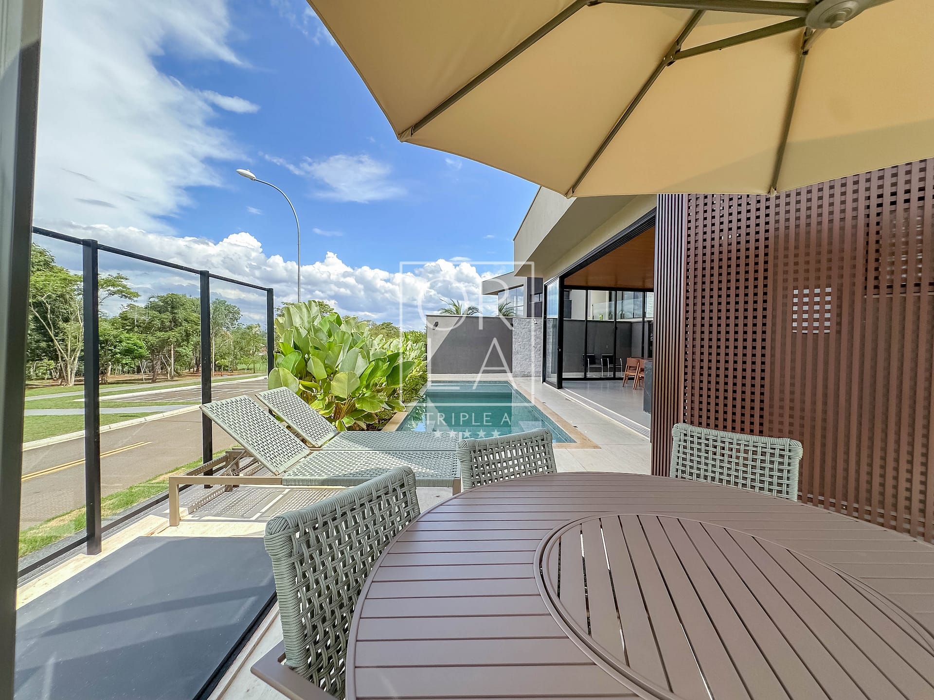 Uma residência mobiliada, térrea e recém-construída, que combina imponência, privacidade e uma integração perfeita com a natureza.