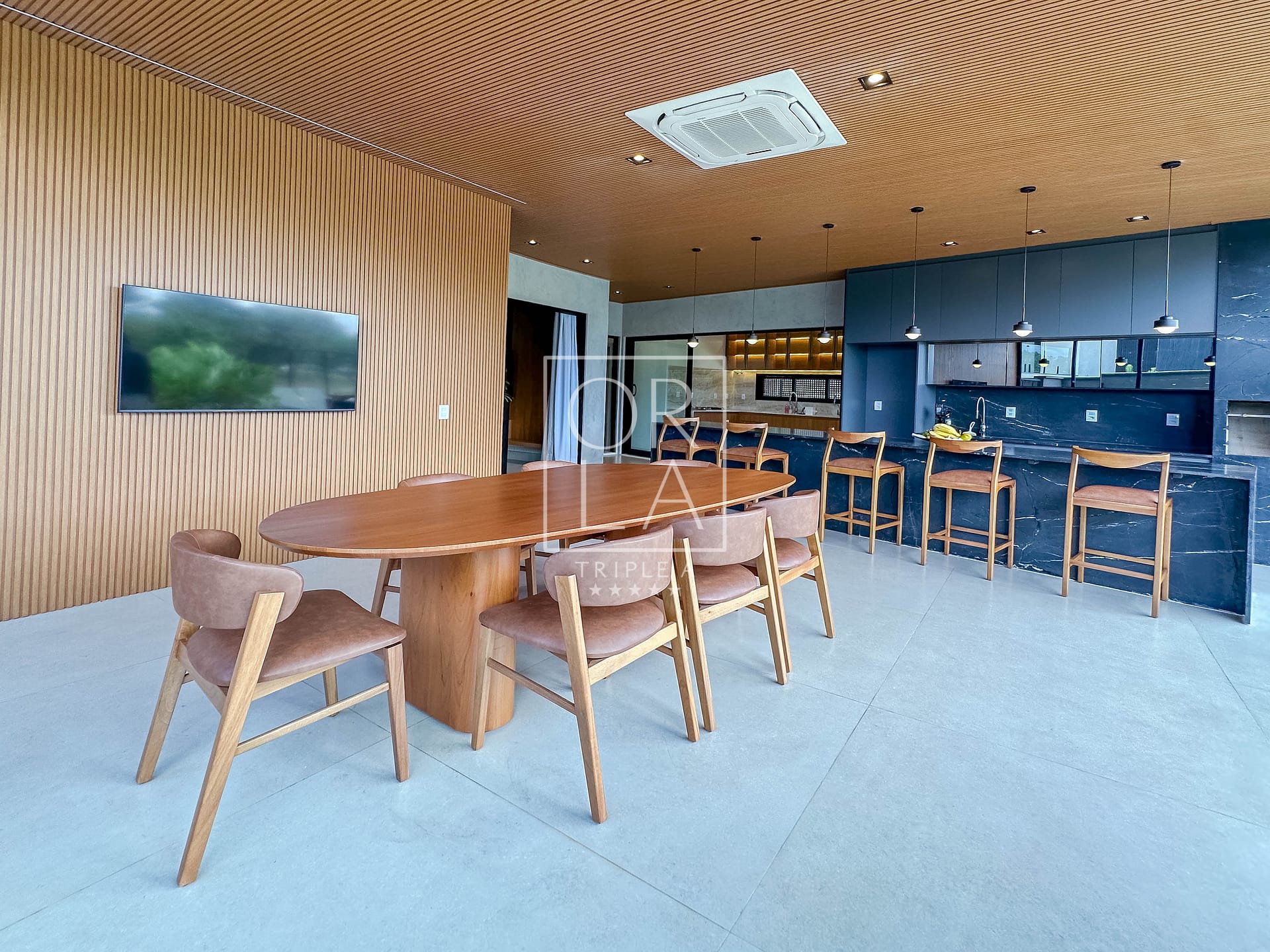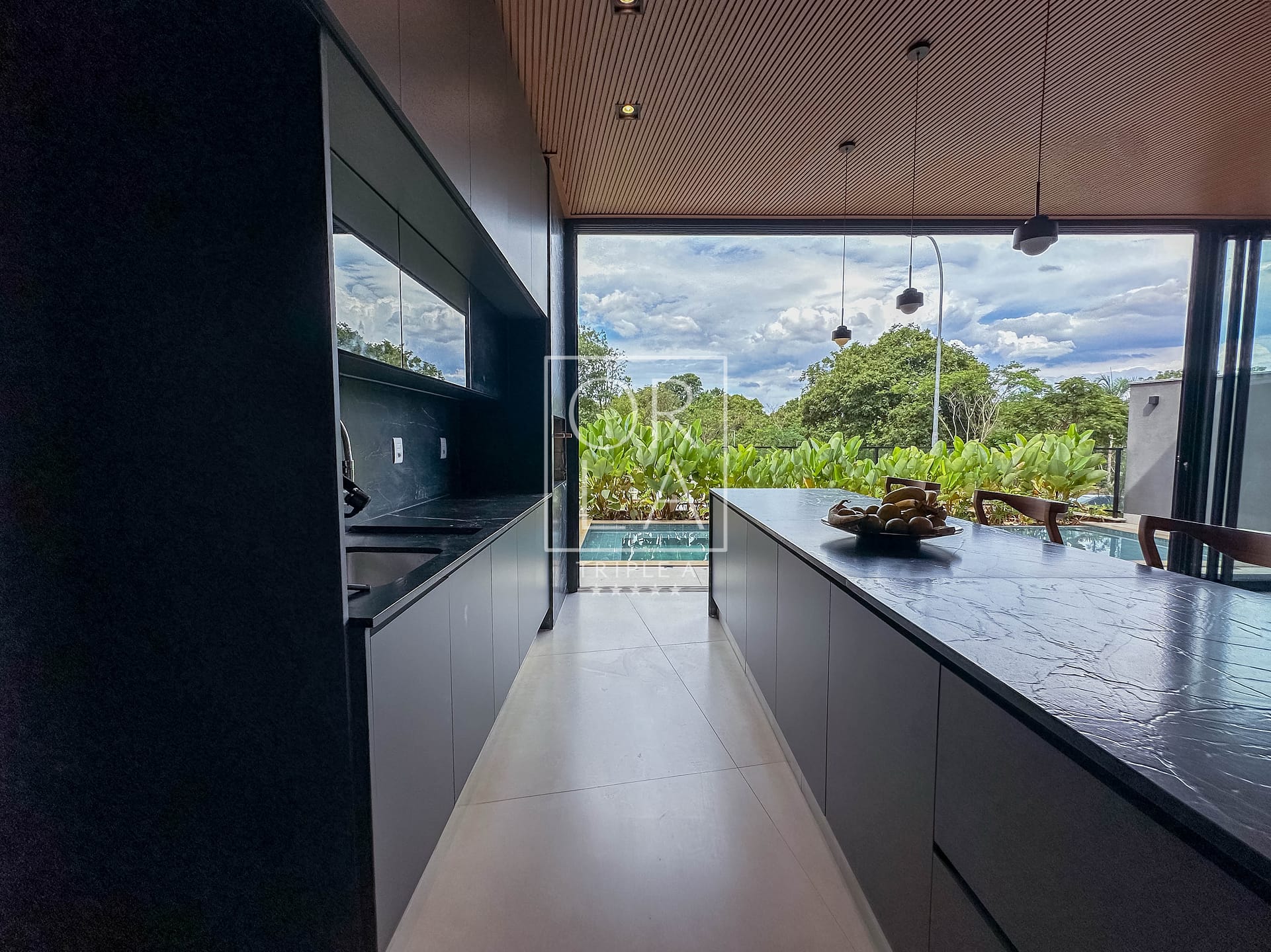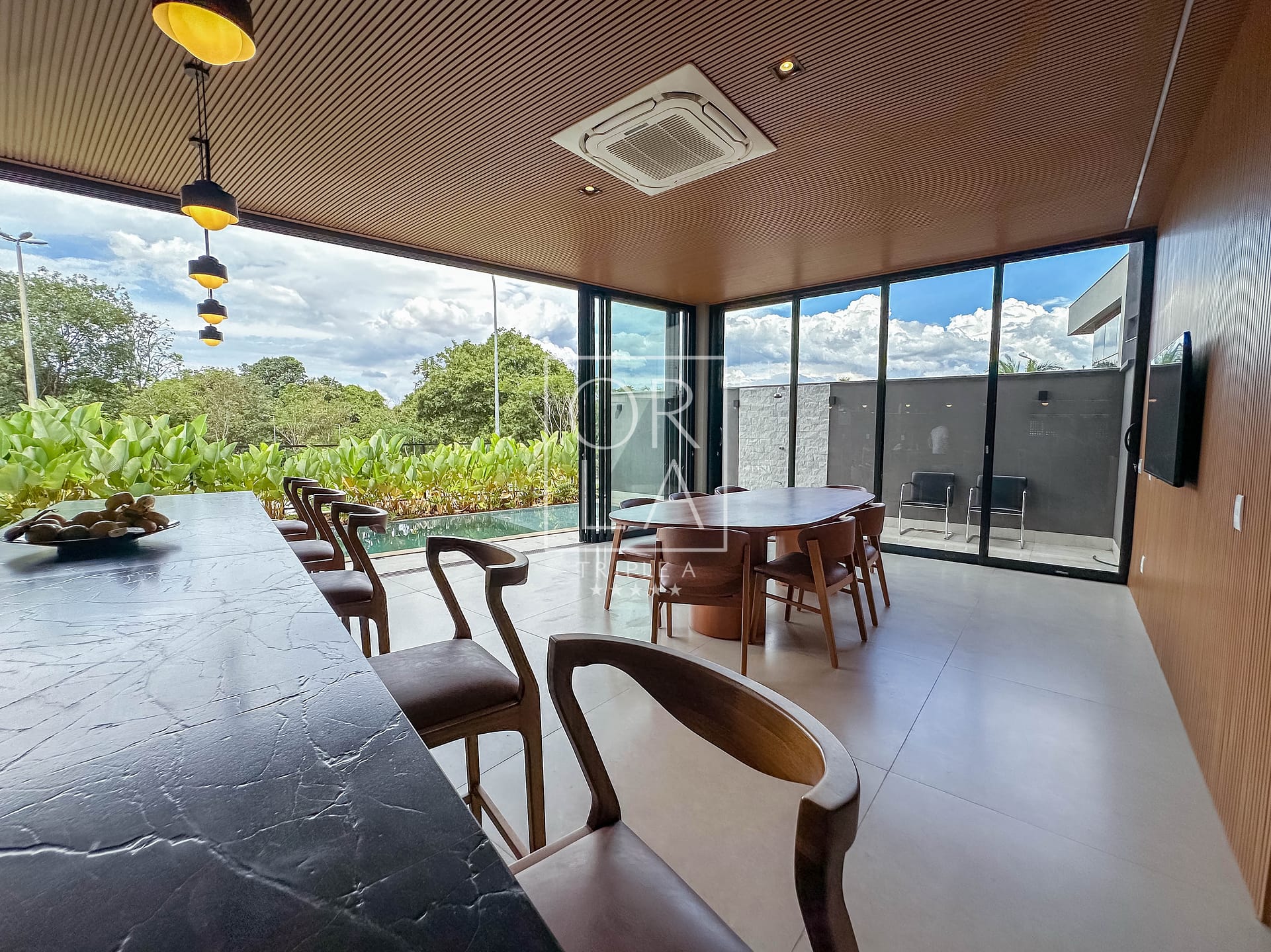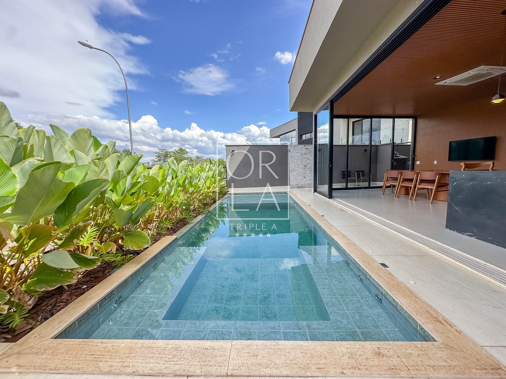Uma residência mobiliada, térrea e recém-construída, que combina imponência, privacidade e uma integração perfeita com a natureza.