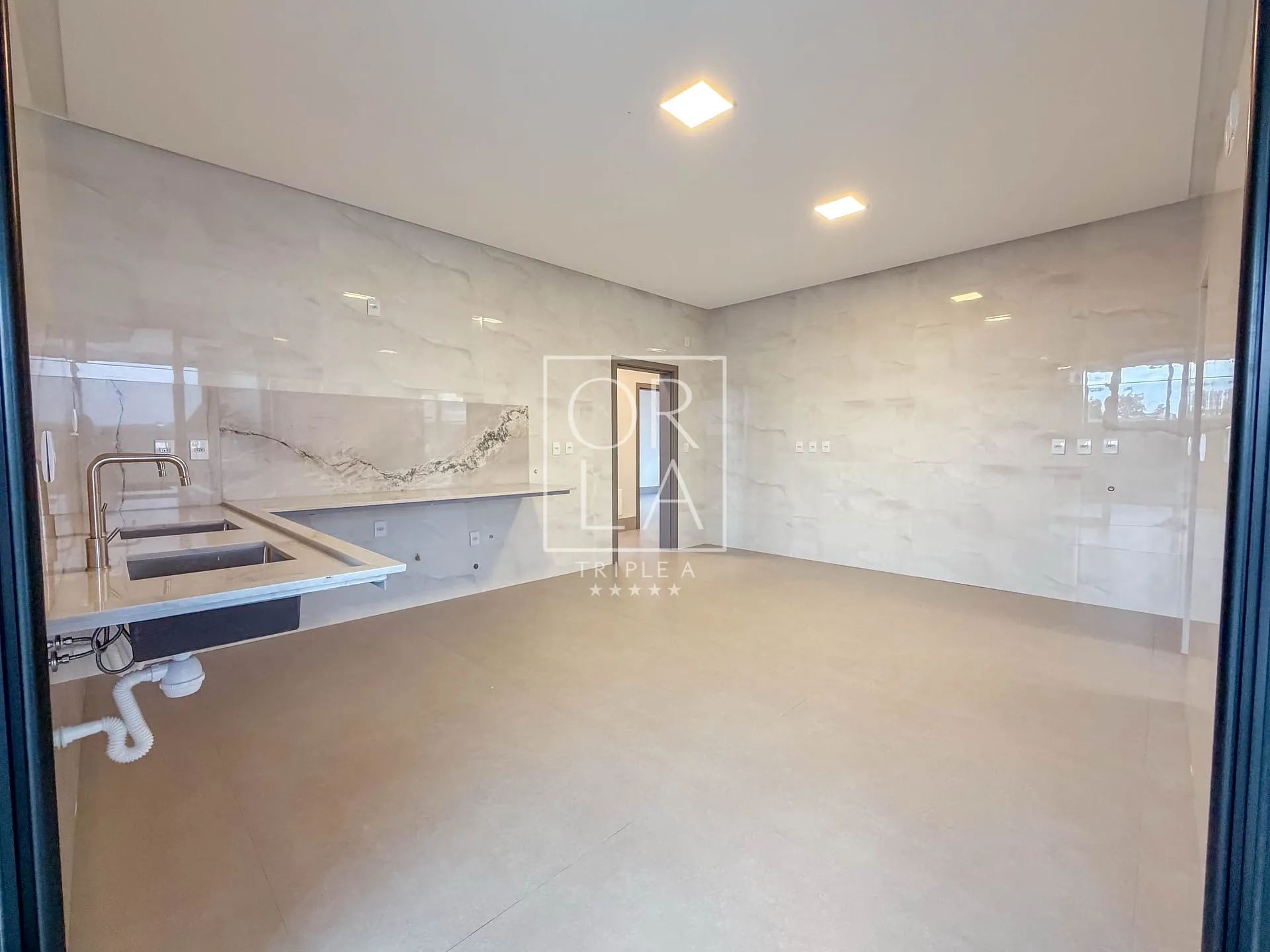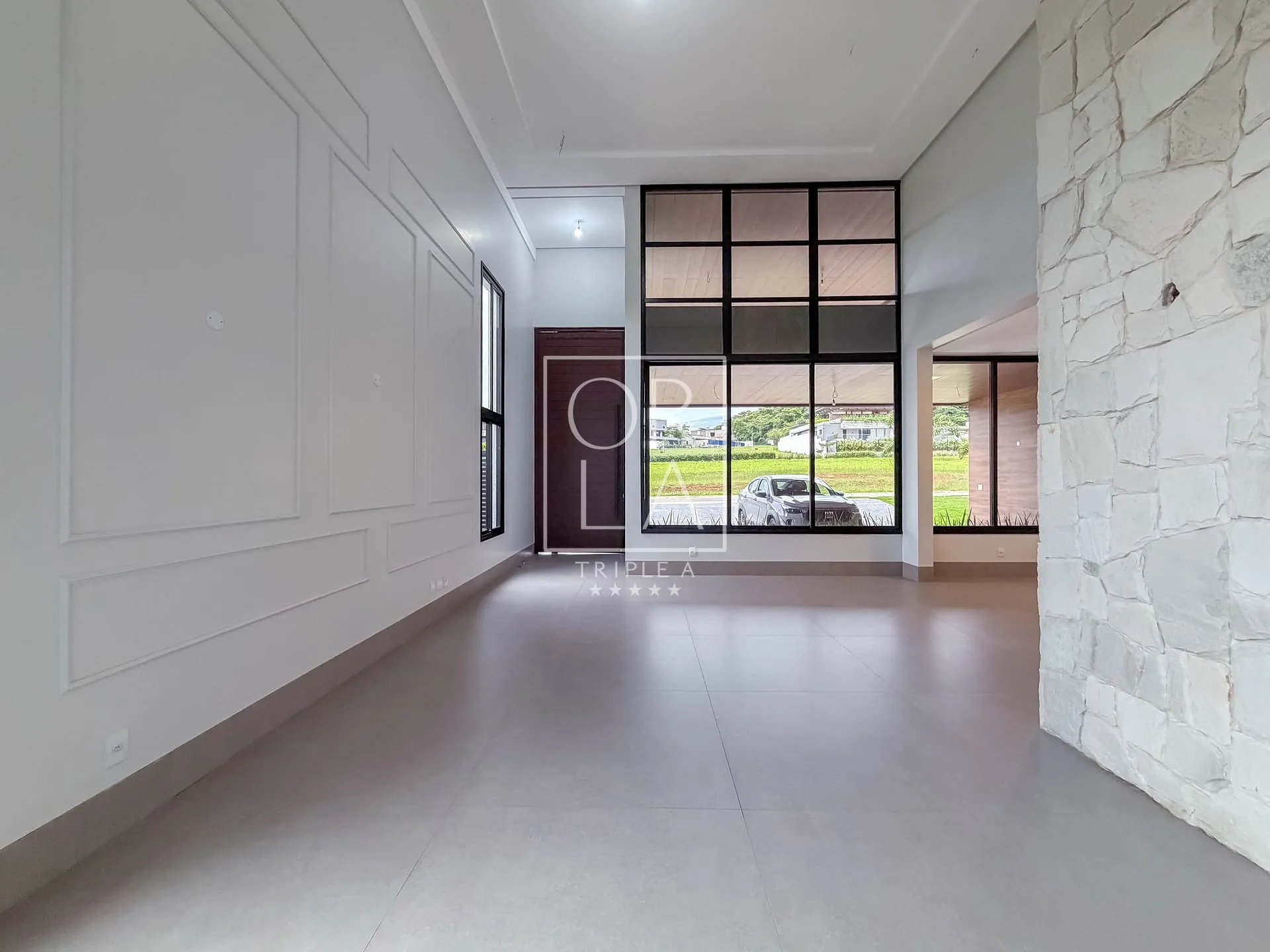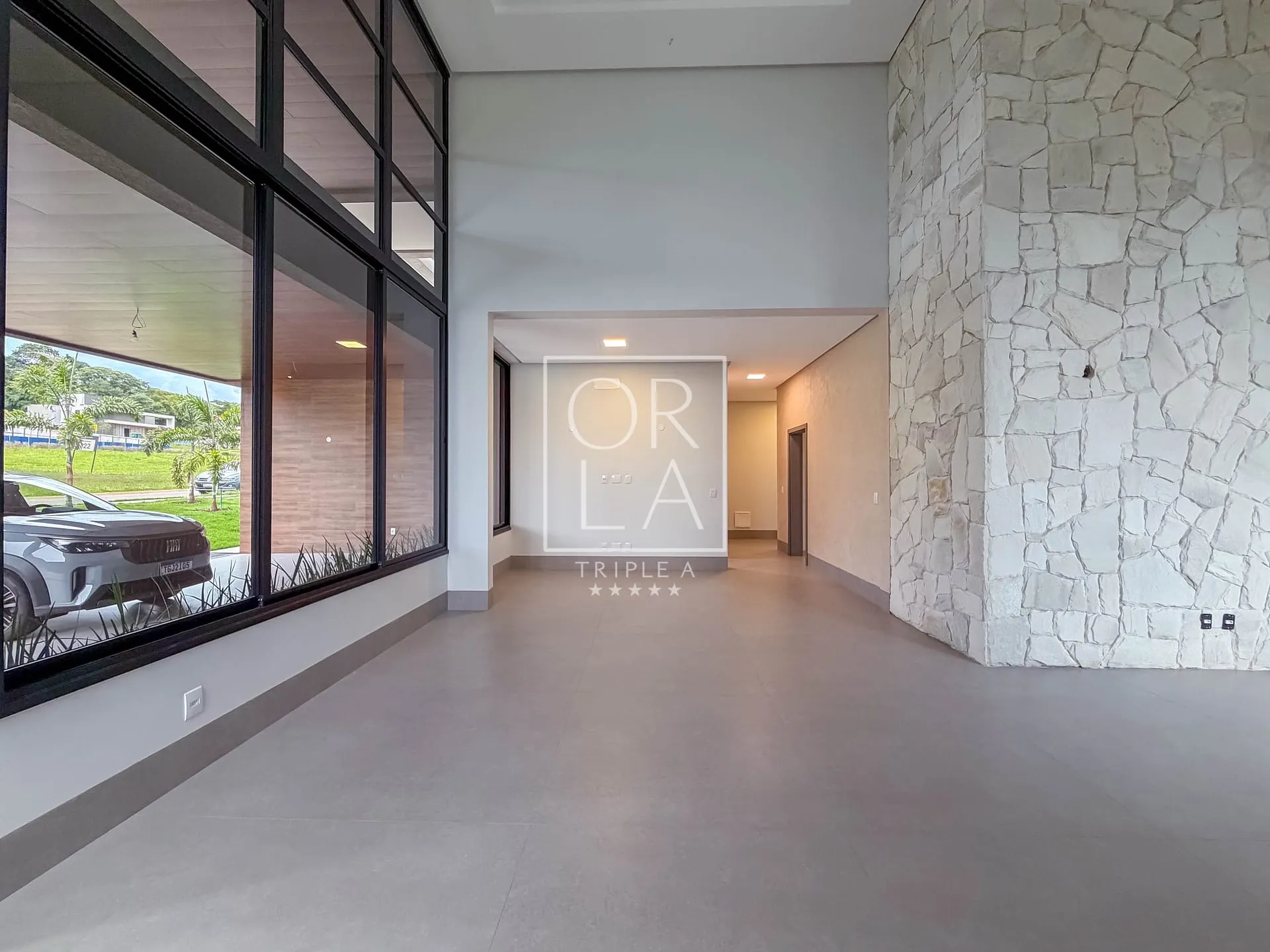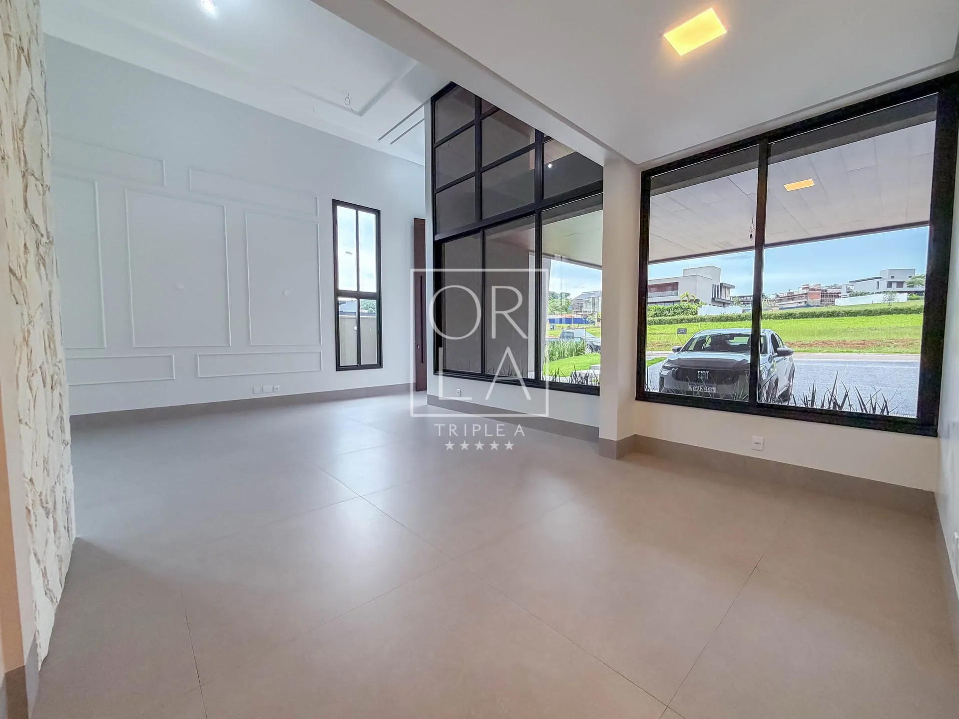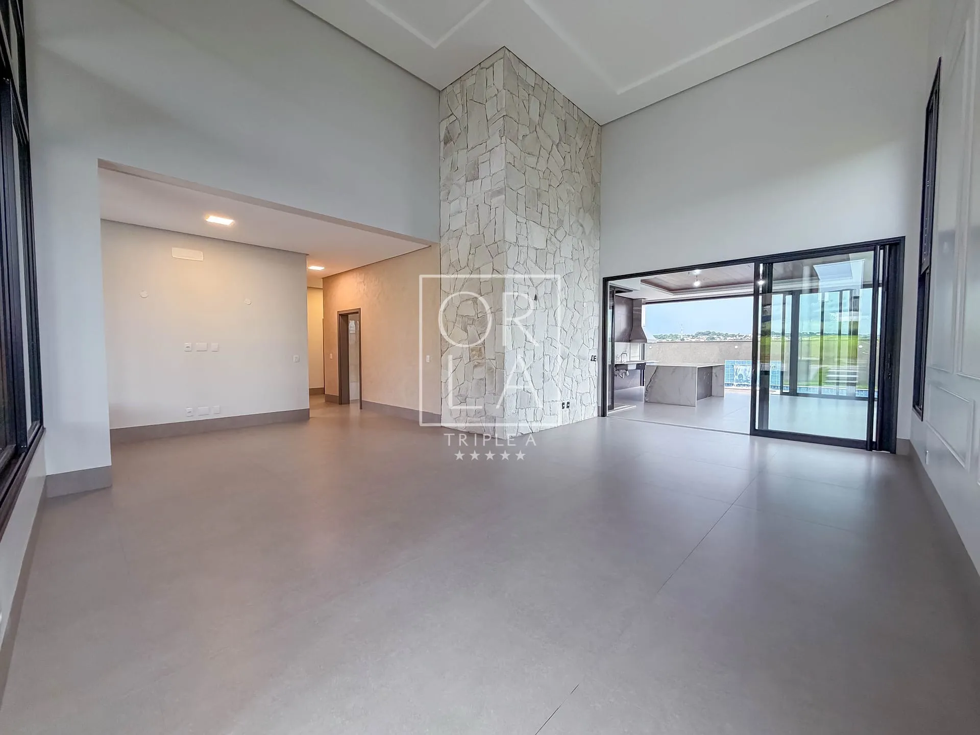O projeto valoriza amplitude e luz natural, com living imponente de pé-direito duplo, grandes aberturas que proporcionam excelente ventilação, além de home cinema reservado e uma cozinha generosa, pensada para quem aprecia espaço, organização e integração.