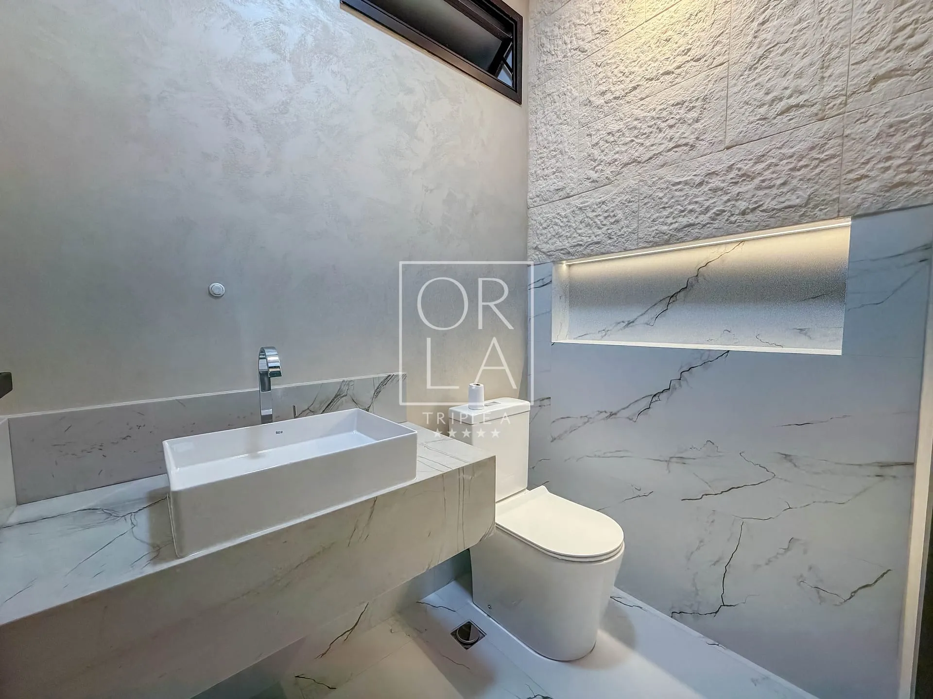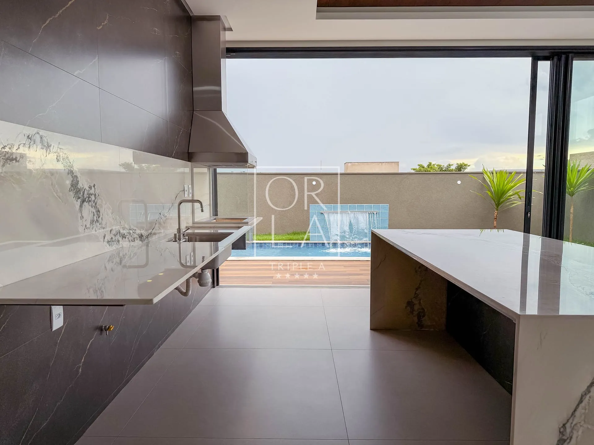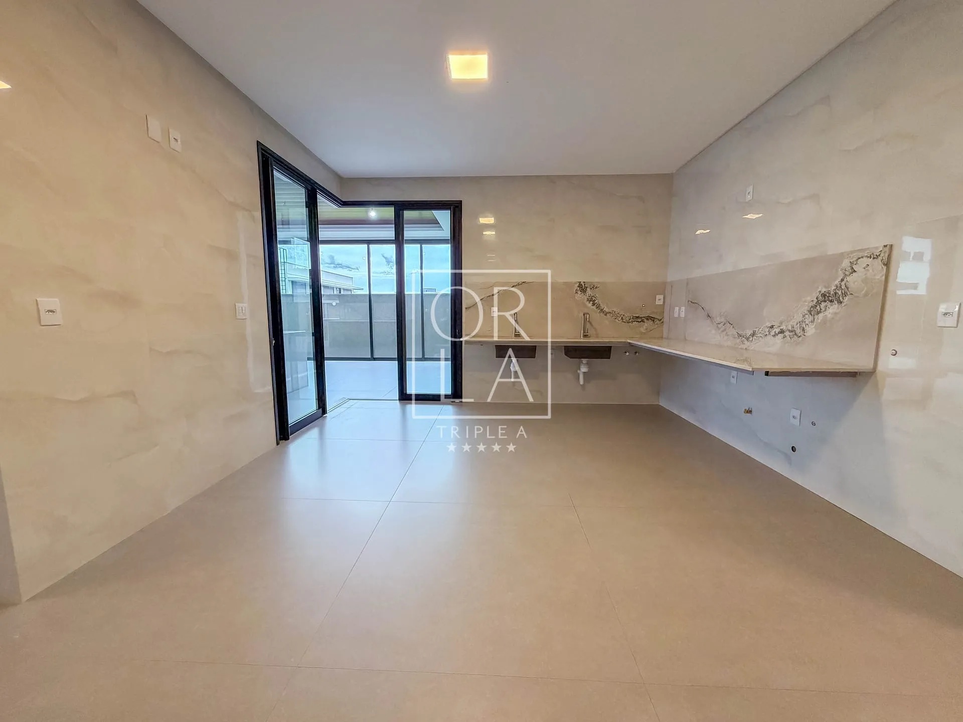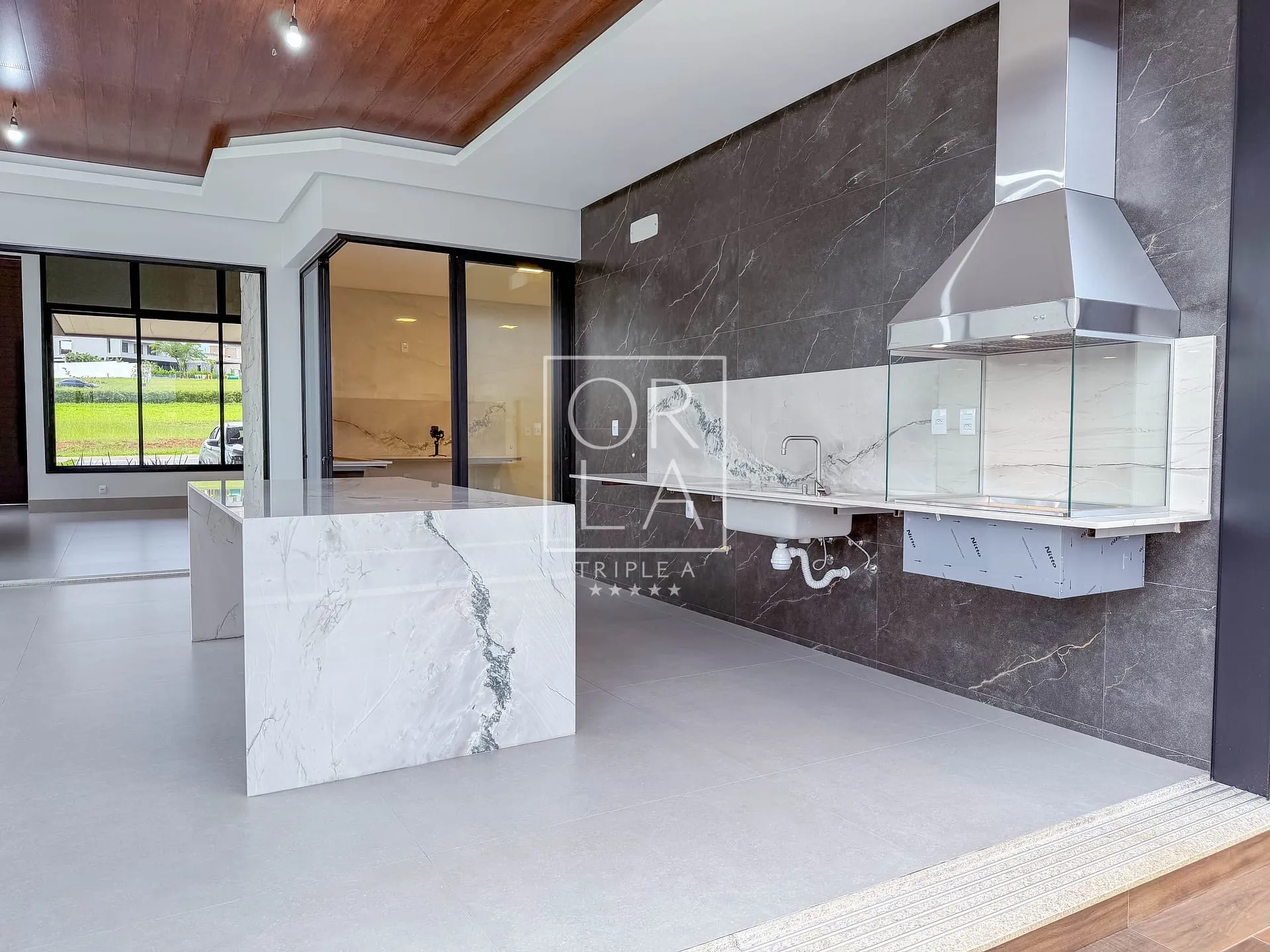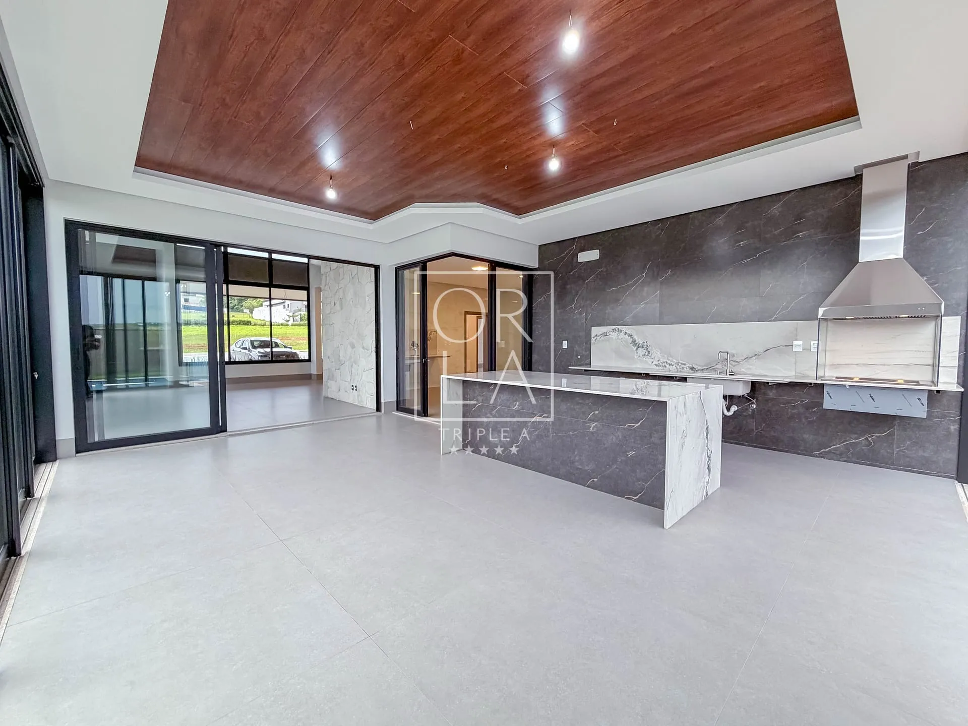 O projeto valoriza amplitude e luz natural, com living imponente de pé-direito duplo, grandes aberturas que proporcionam excelente ventilação, além de home cinema reservado e uma cozinha generosa, pensada para quem aprecia espaço, organização e integração.