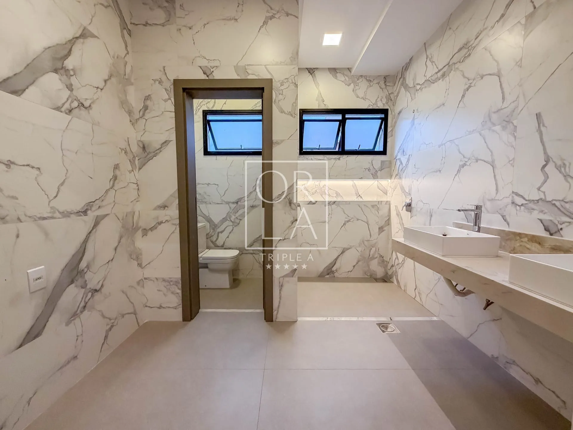 Na área íntima, são 4 suítes, com destaque para a suíte máster, que conta com closet iluminado naturalmente e banheiro com duas cubas e dois chuveiros, oferecendo conforto e privacidade no dia a dia.