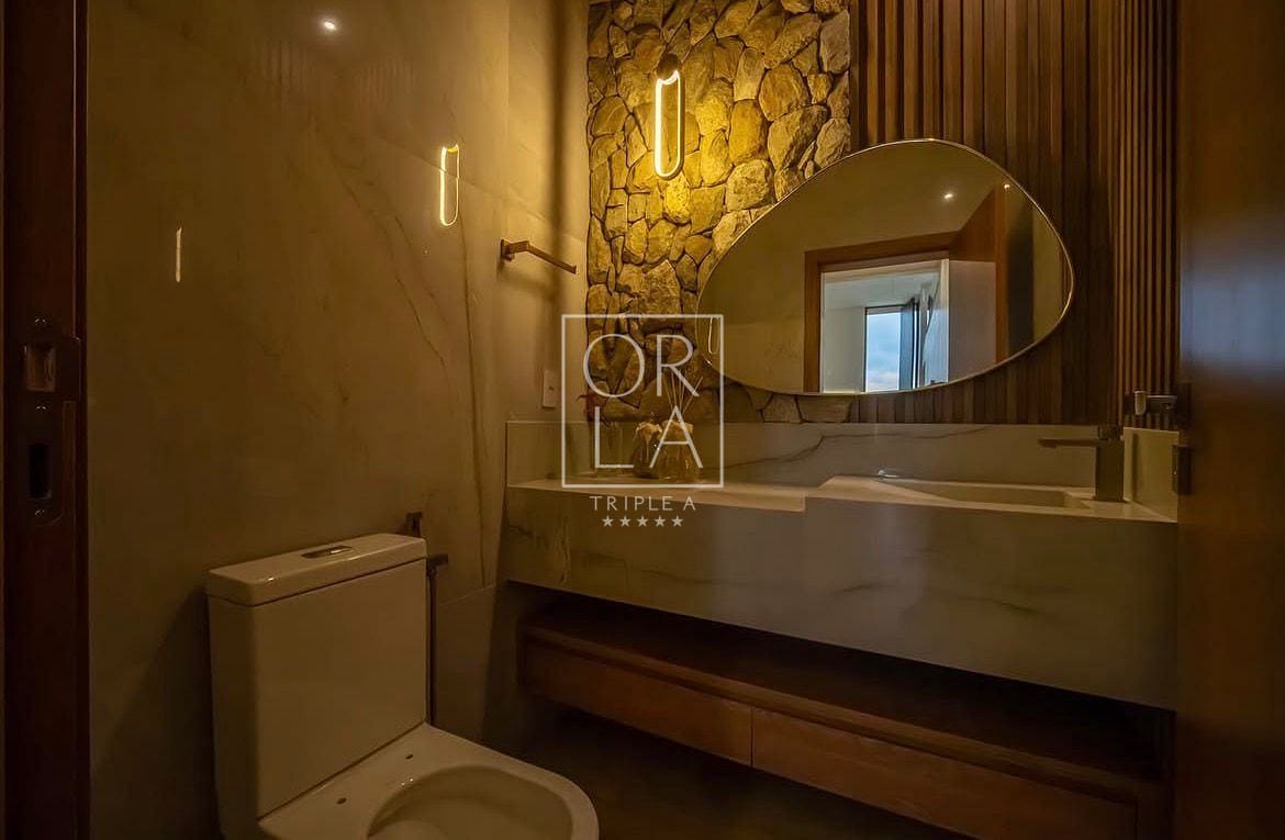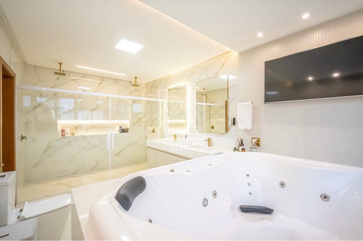 4 suítes plenas Porcelanato 84x84 acetinado Pedras no preto são gabriel polido e escovado Pedras de banheiros no quartzo Piscina com aquecimento, 07 jatos de hidromassagem, iluminação e cascata Aq...