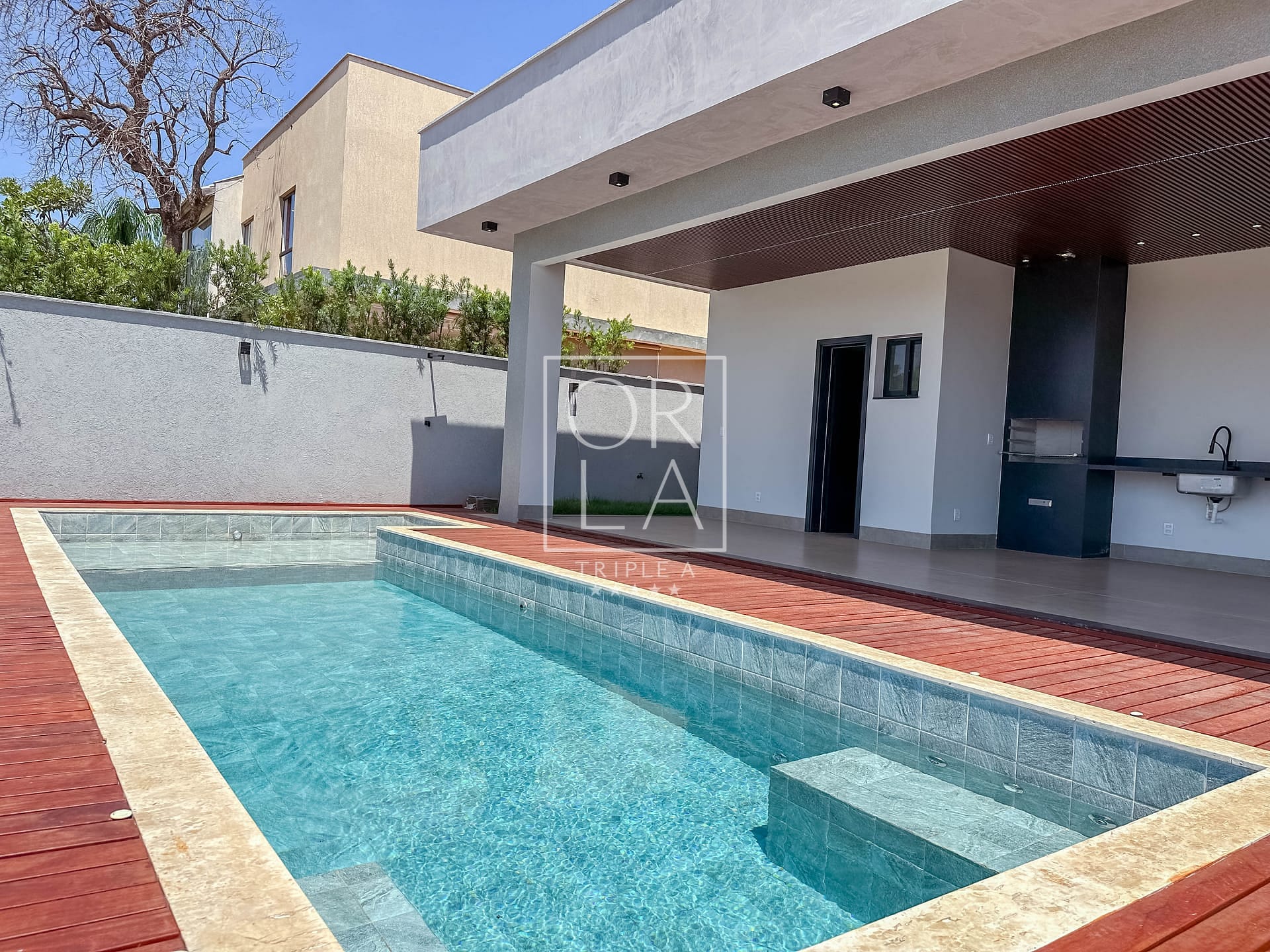 O espaço de lazer é um convite ao relaxamento, com uma linda piscina que transforma o exterior em um refúgio particular. A área gourmet, equipada com churrasqueira a carvão, promete momentos memoráveis de convívio.