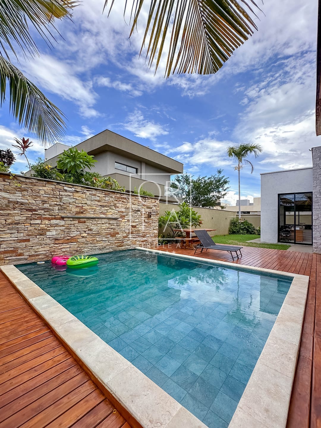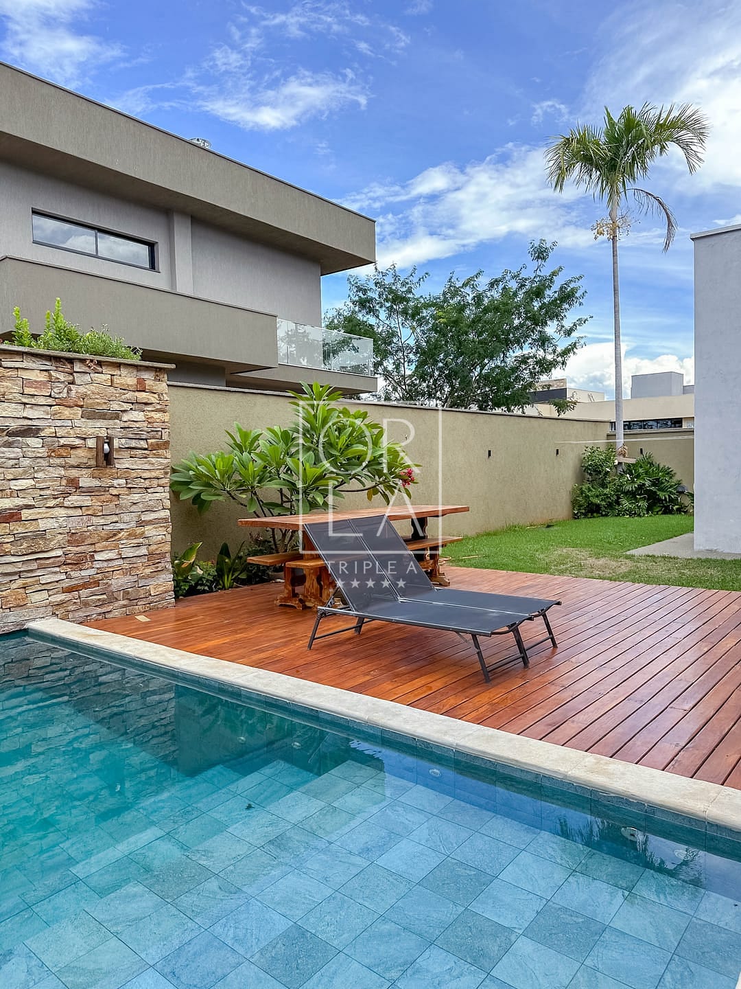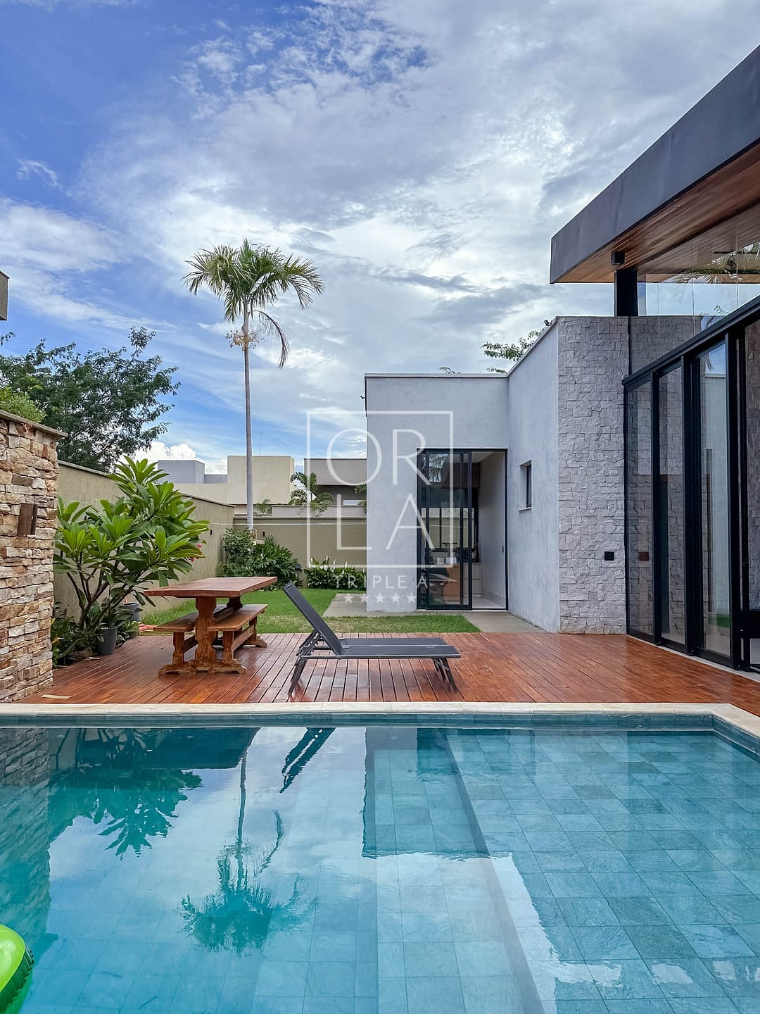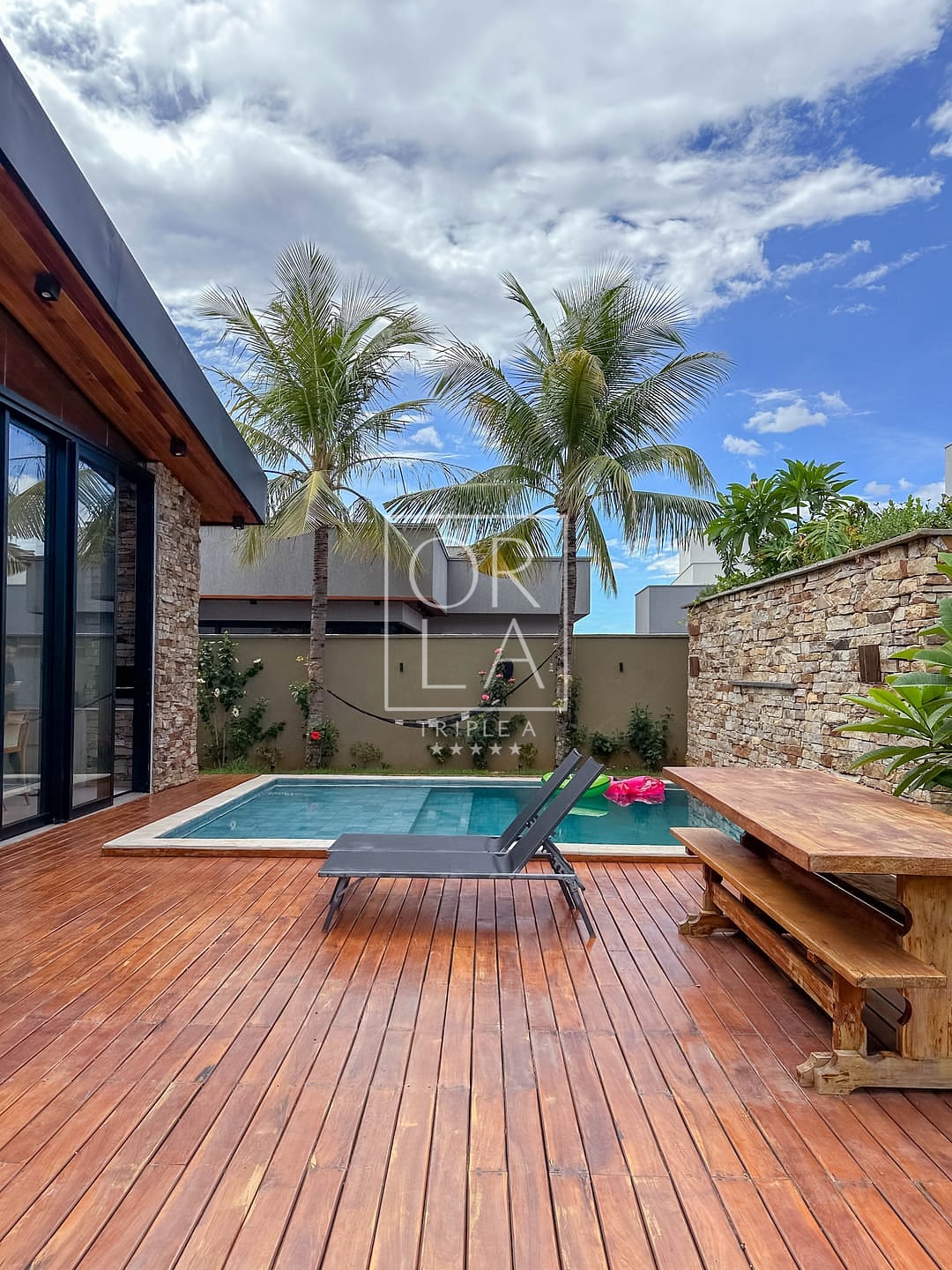 🚪todos os portais e Deck de madeira em ipê original , toda montada em som na área gourmet ,