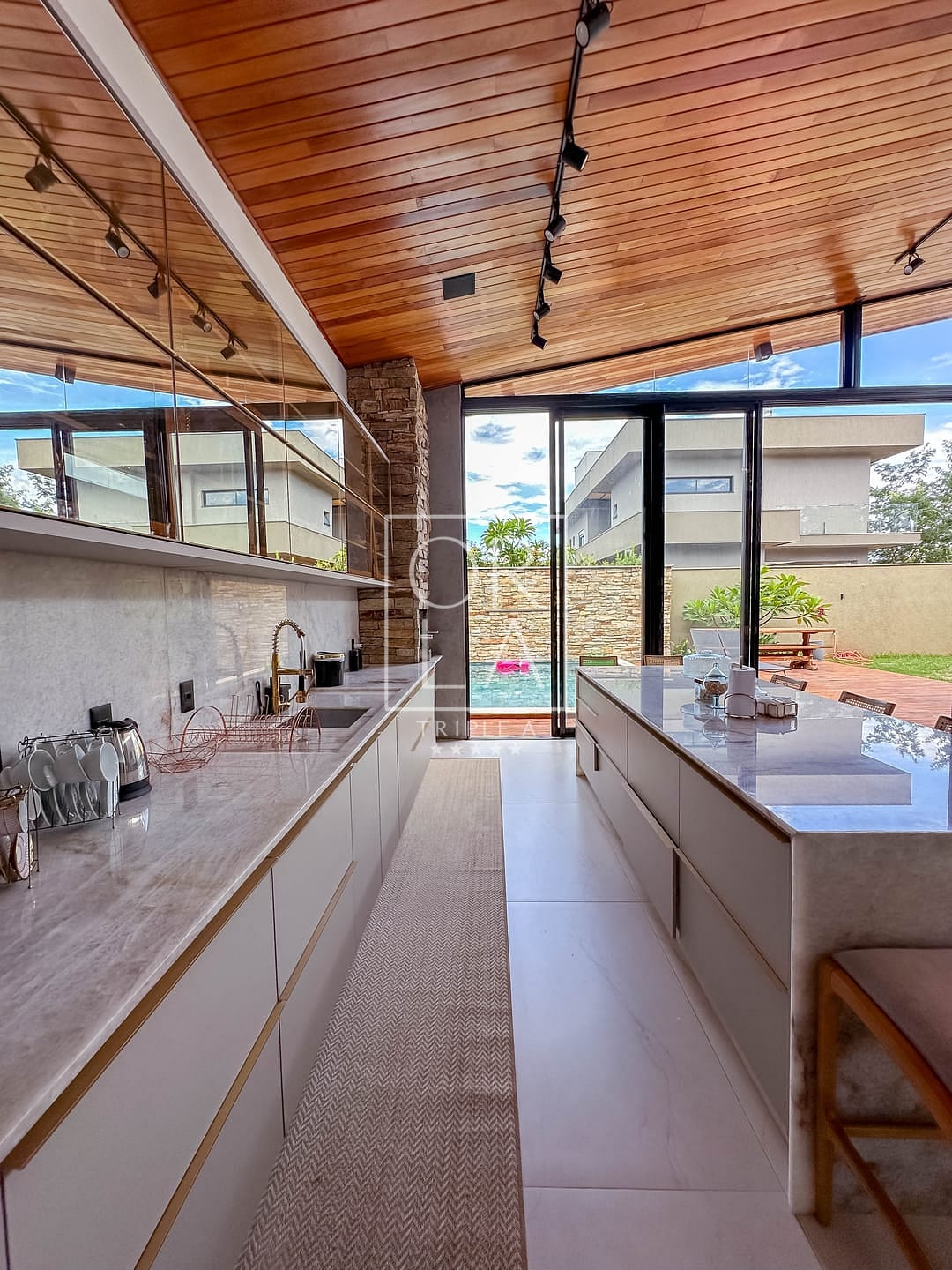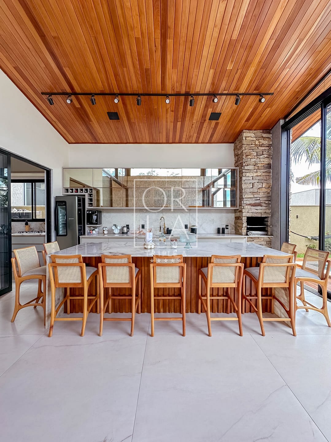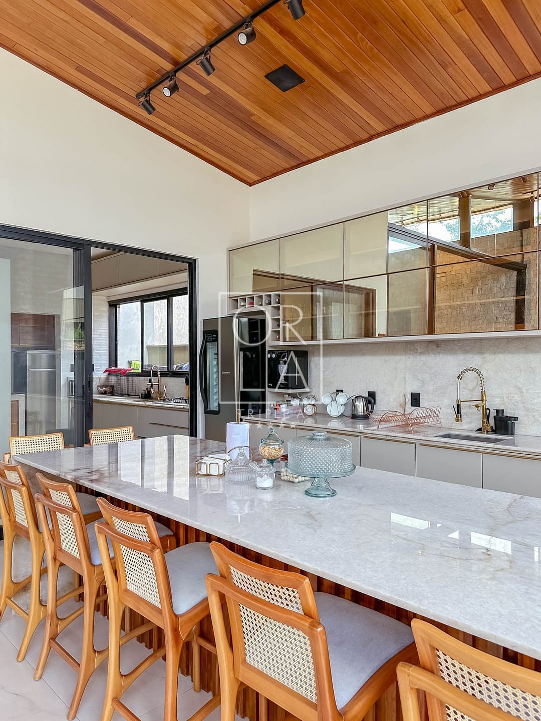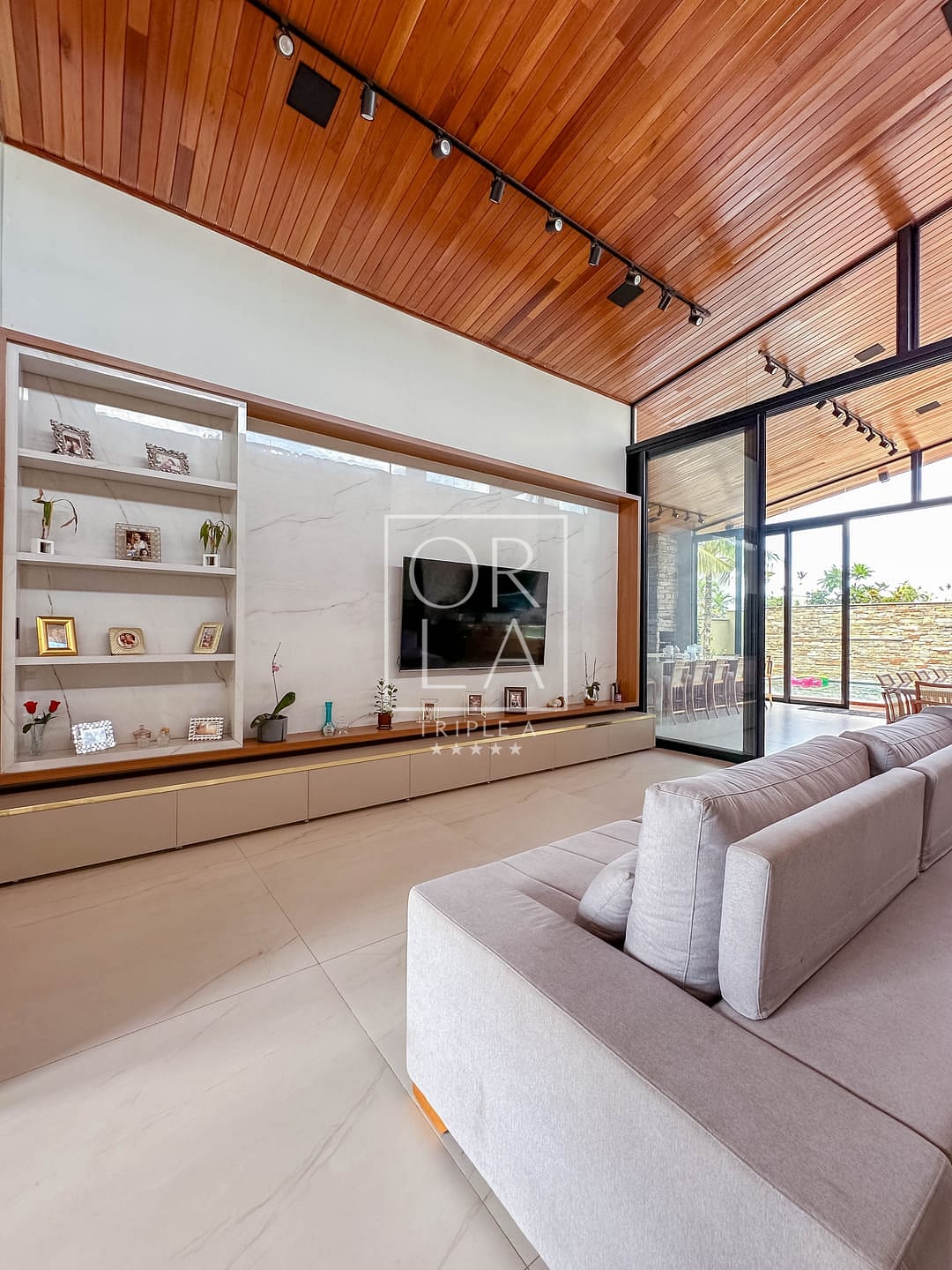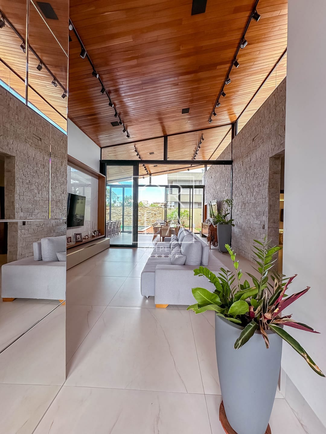 📺 sala e área gourmet com pé direito duplo