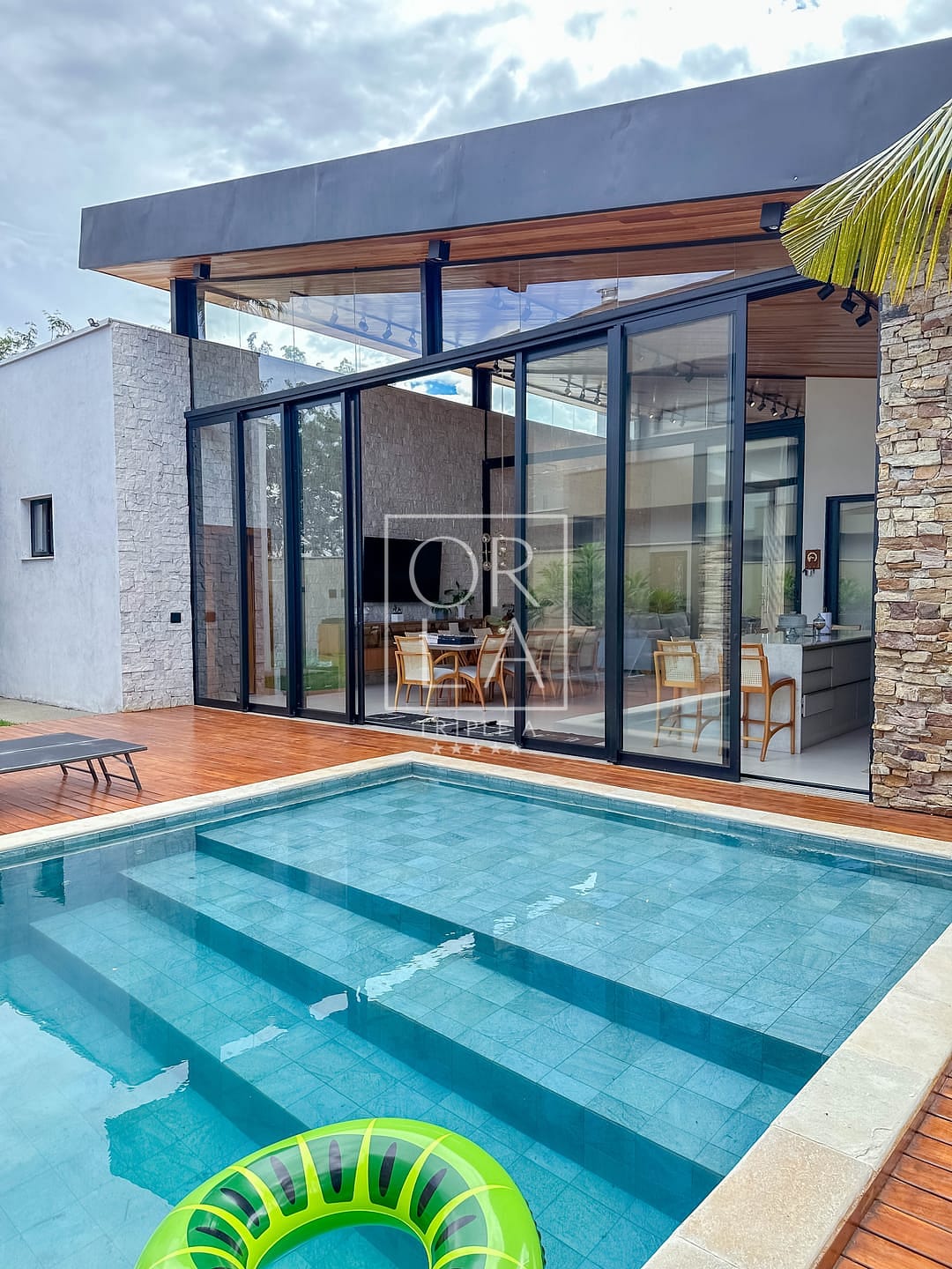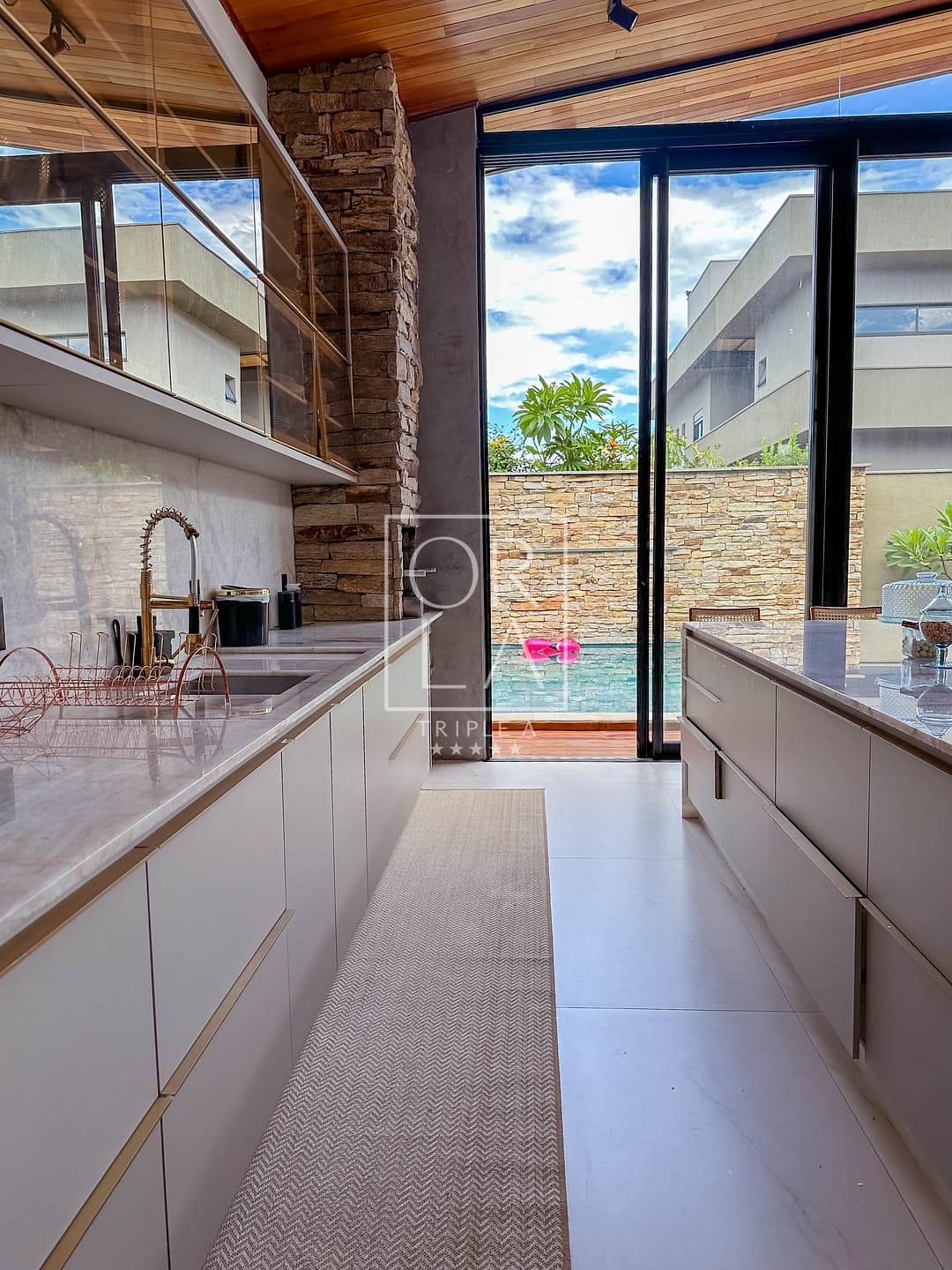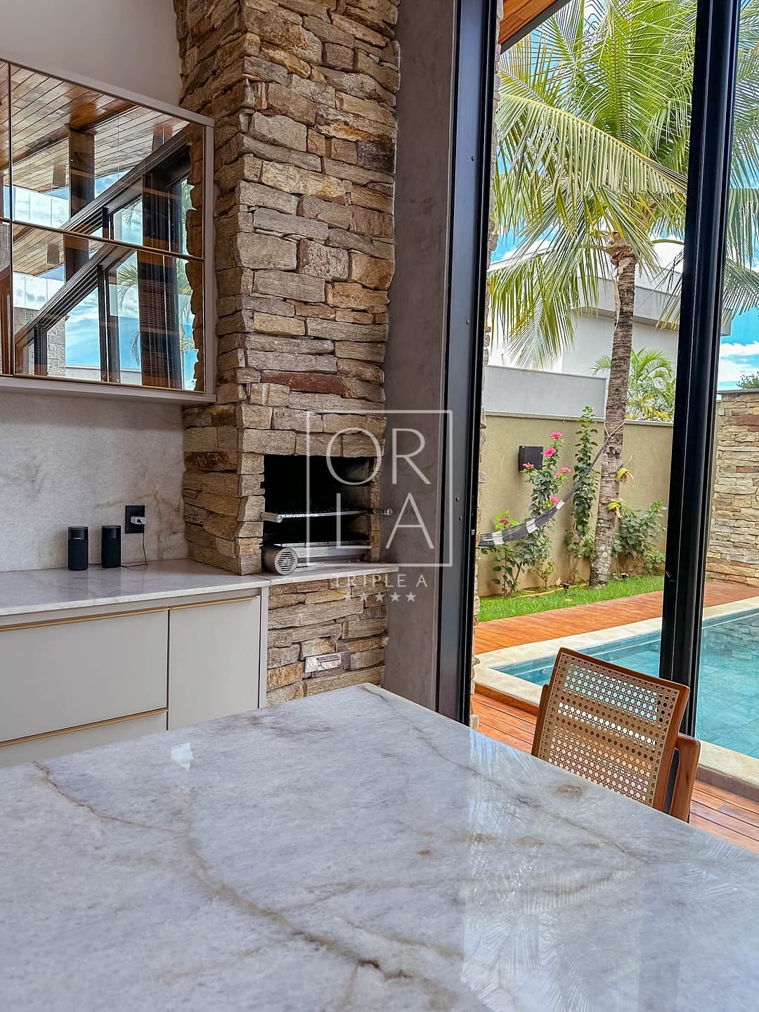 ✔️sala e área de lazer com caixas JBL , pedras da área gourmet e cozinha toda no Marmore importado , fachada em balanço com viga Protendida