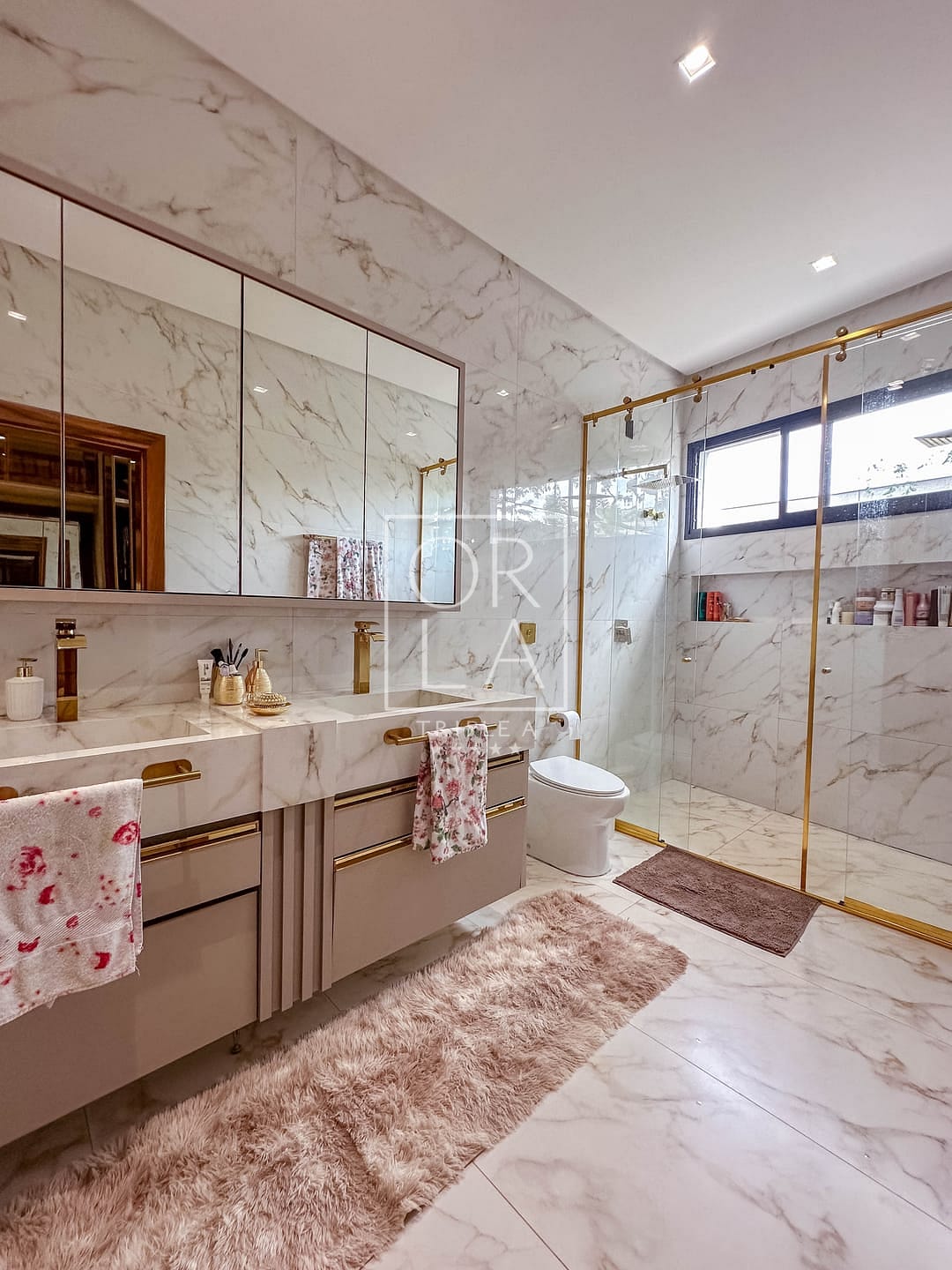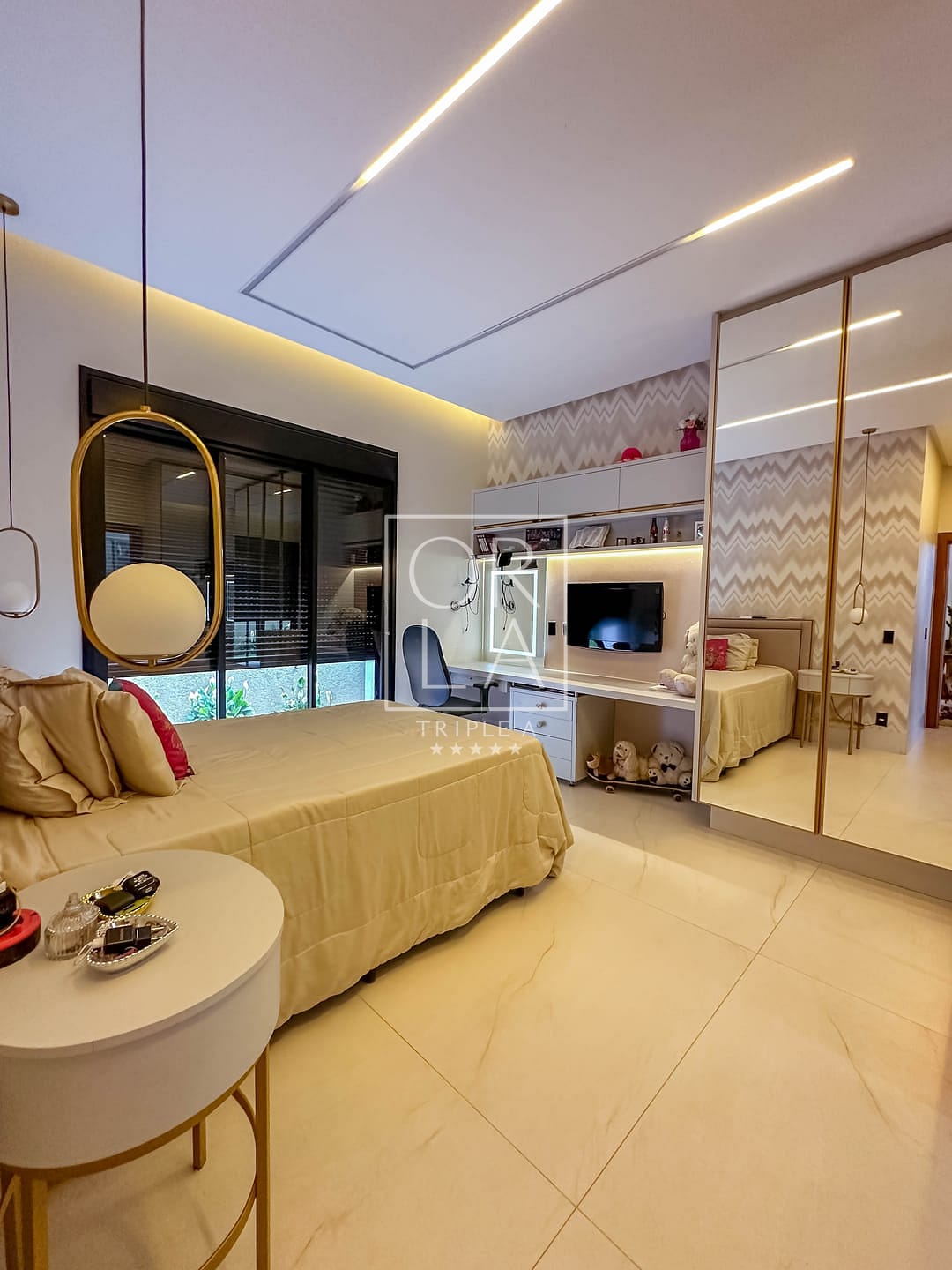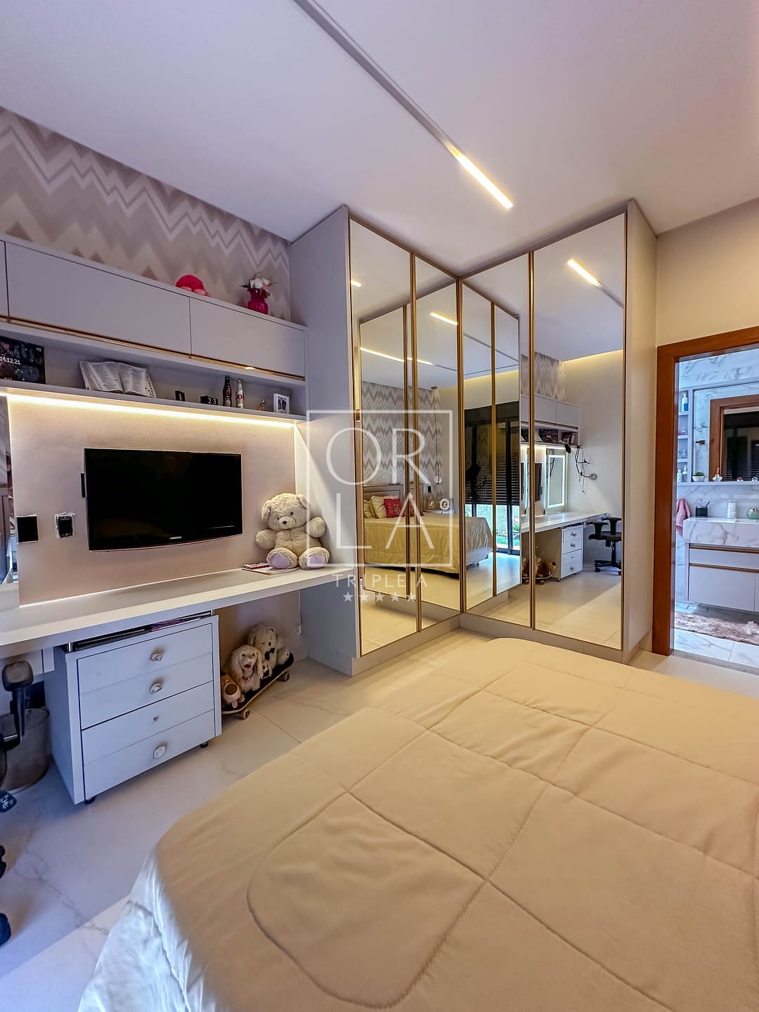 🛏️Sendo 3 suítes plenas + escritório individual , completa em armários em todos os cômodos , closet , banheiro com duas duchas e 2 pias esculpidas na suíte master , box com com a linha elegance em dourado ,