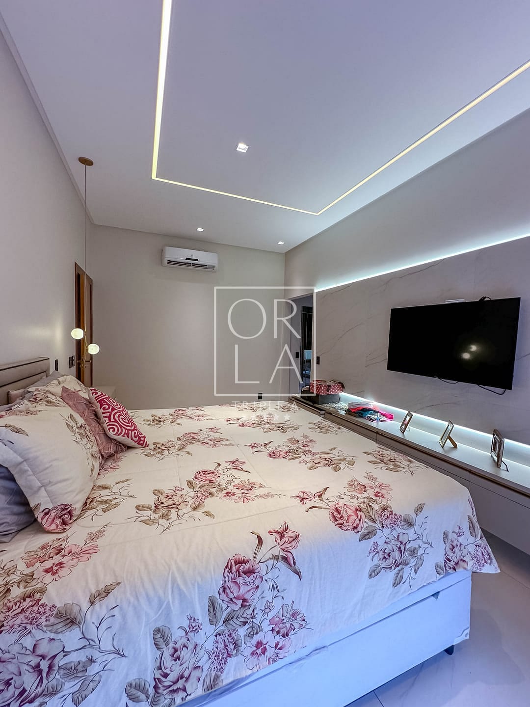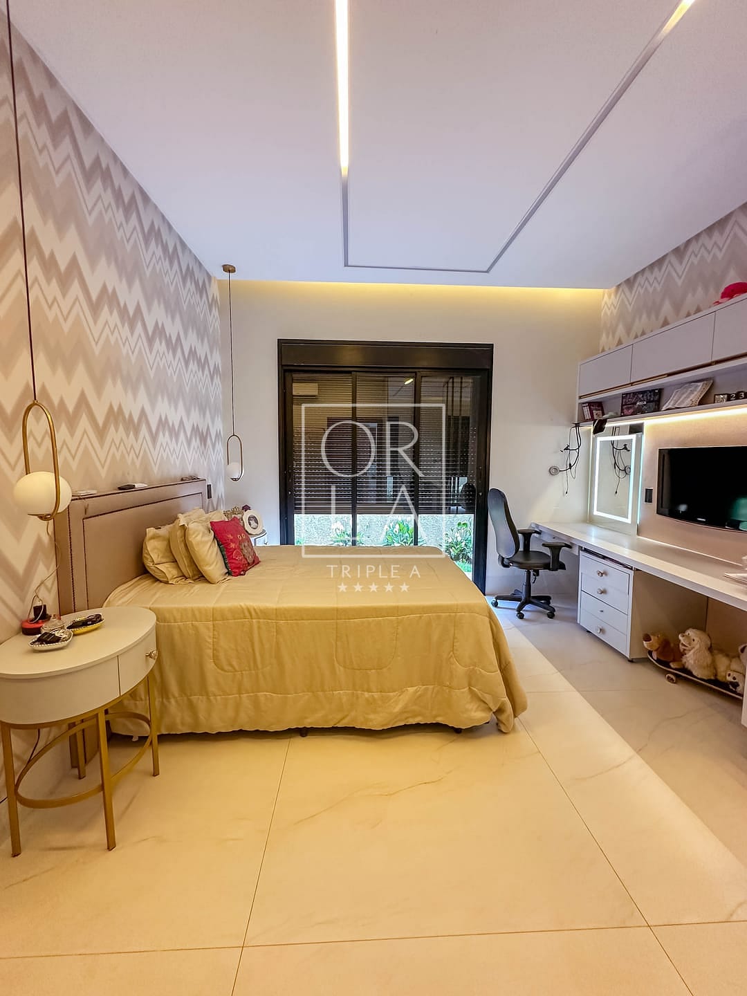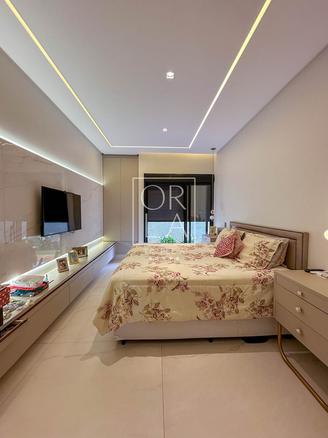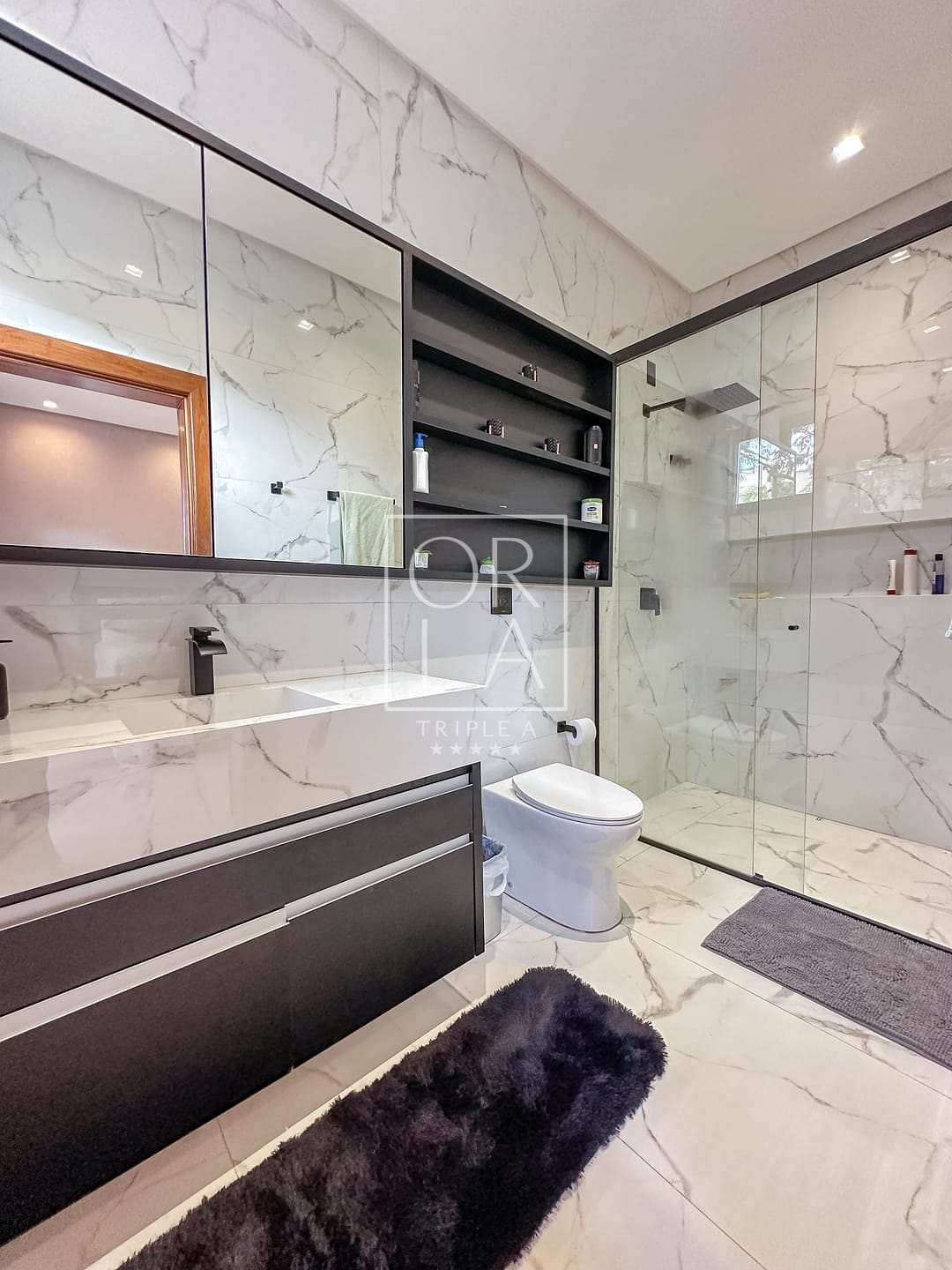 🛏️Sendo 3 suítes plenas + escritório individual , completa em armários em todos os cômodos , closet , banheiro com duas duchas e 2 pias esculpidas na suíte master , box com com a linha elegance em dourado ,